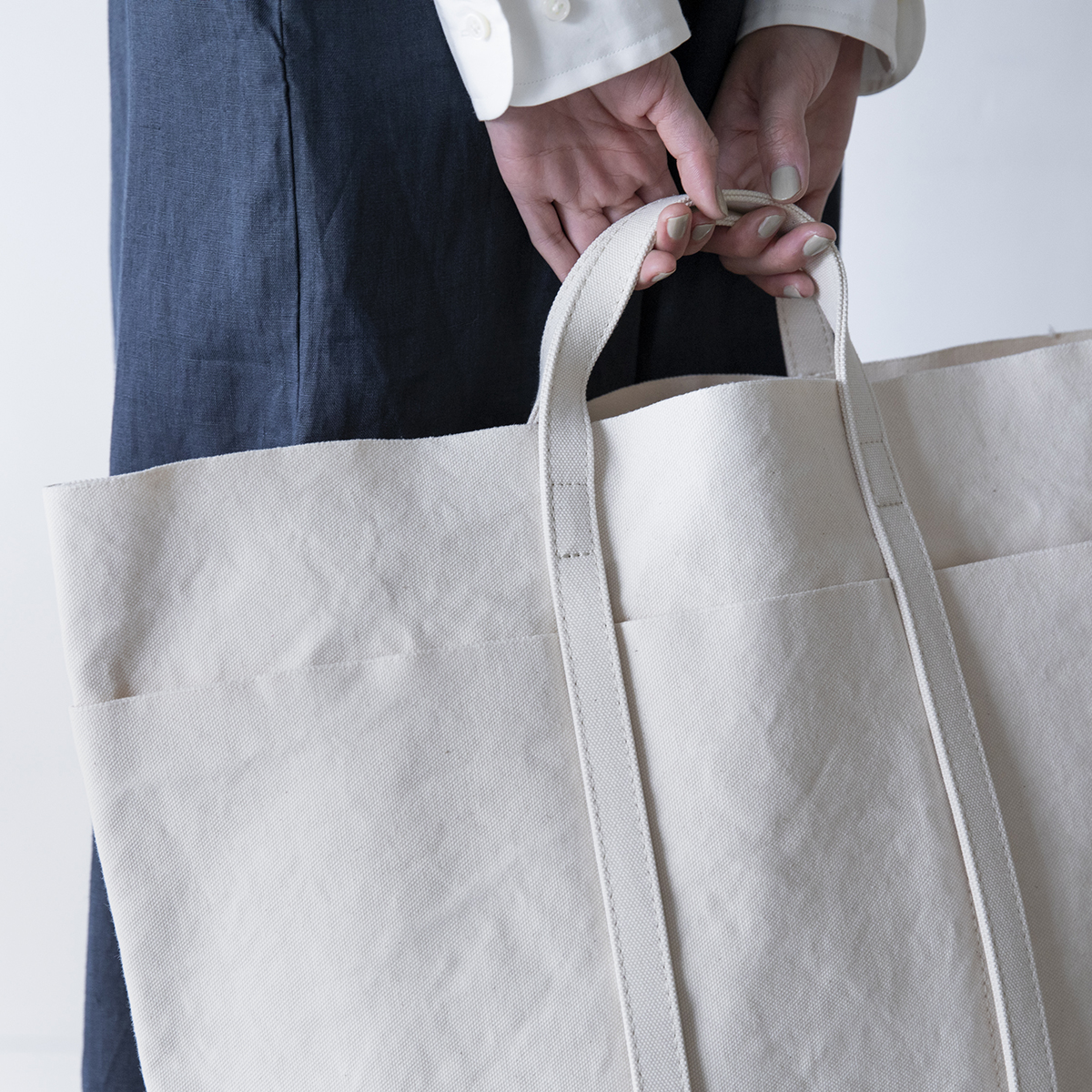 ゆっくりと織り上げた国産の帆布を使用。