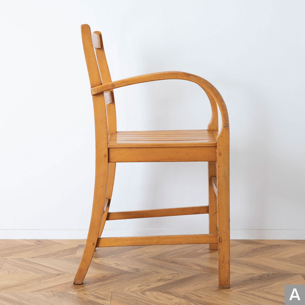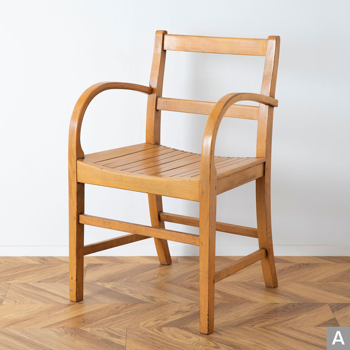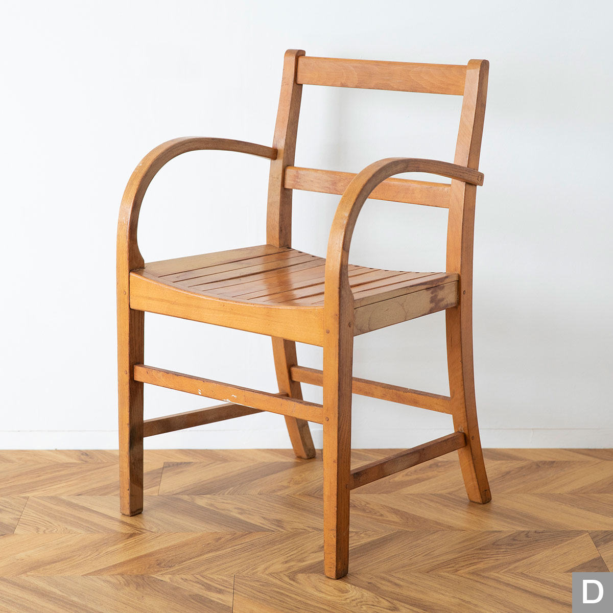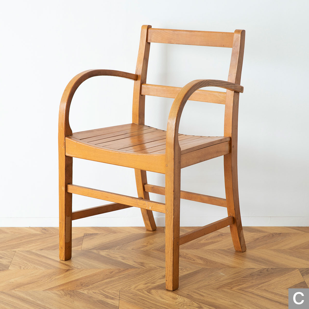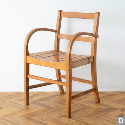 曲木のアームが特徴的なチェアです。