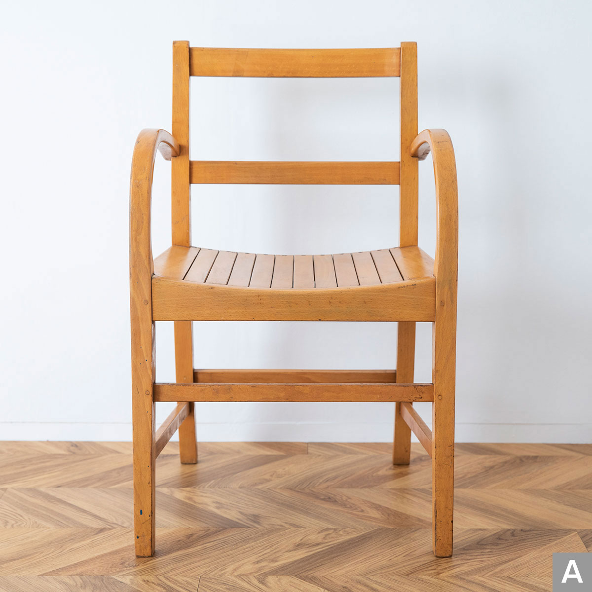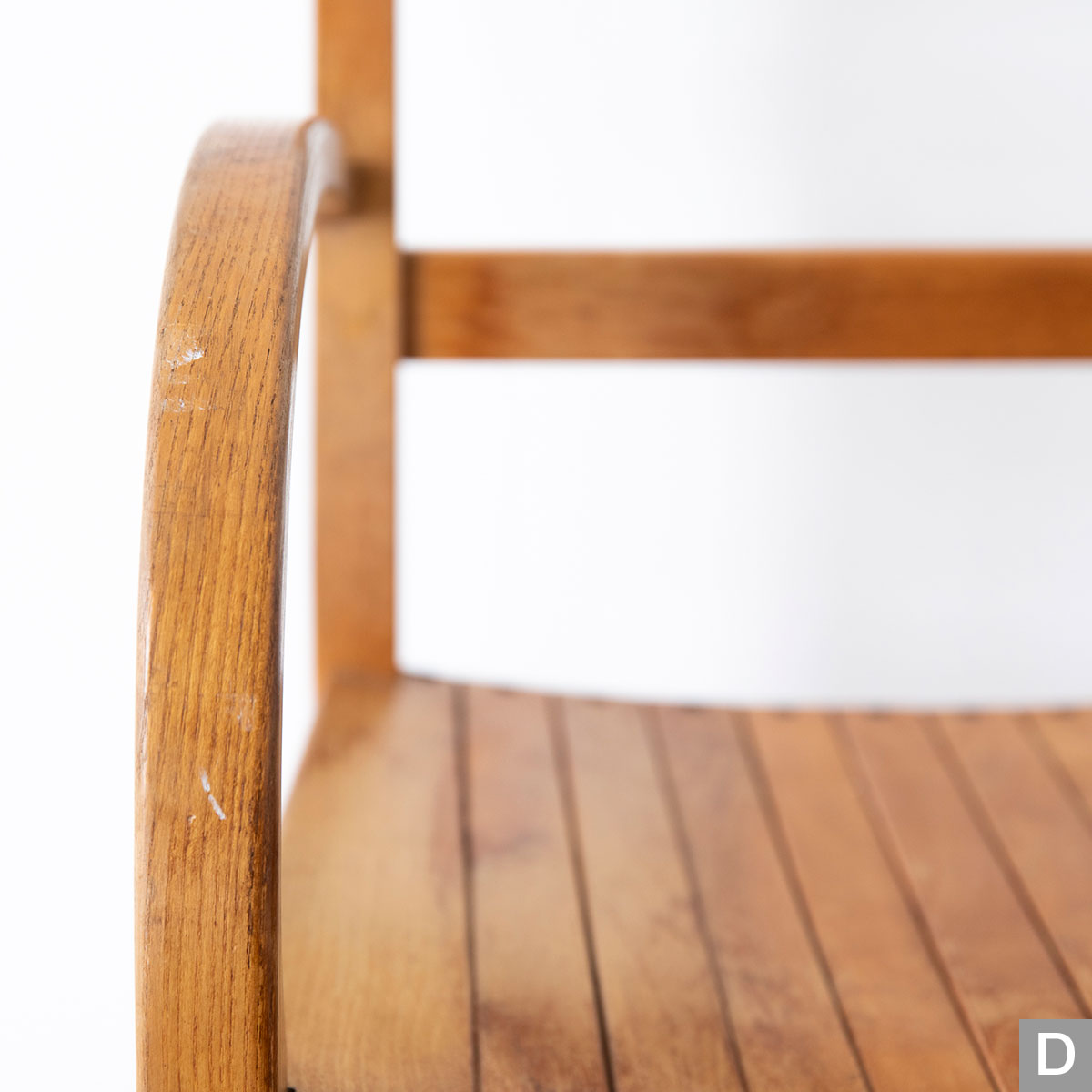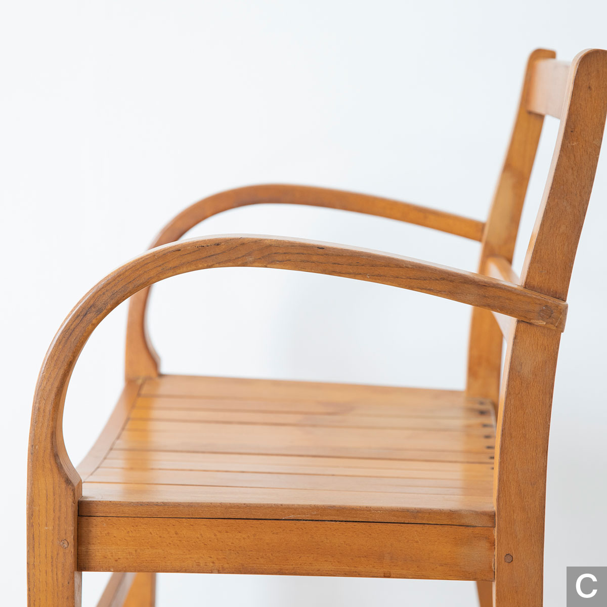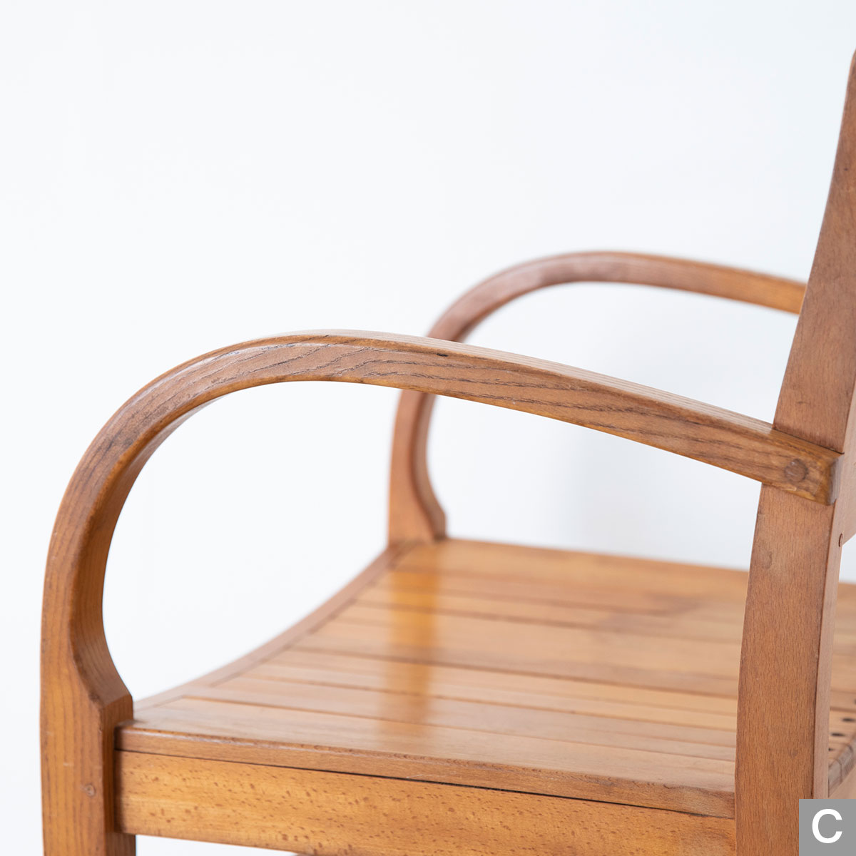 曲木のアームが特徴的なチェアです。