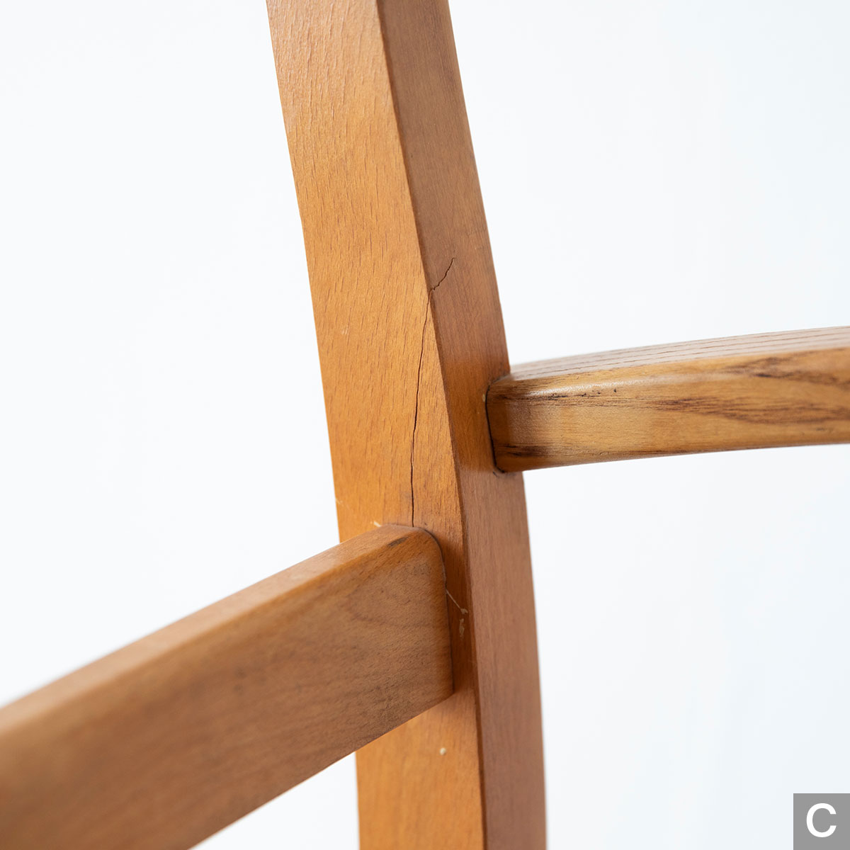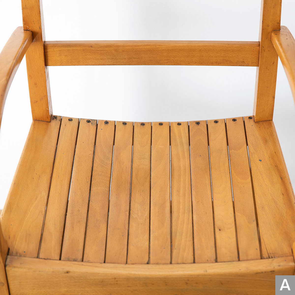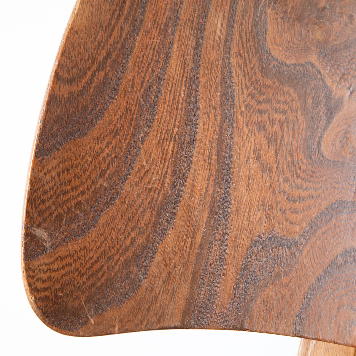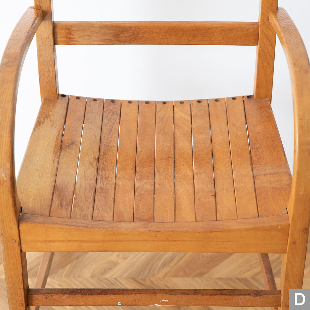 曲木のアームが特徴的なチェアです。