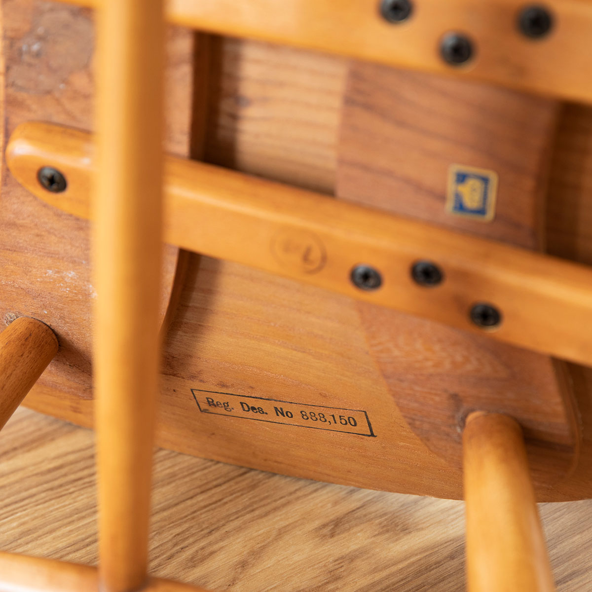 座面裏にアーコール社のラベルが残っており、