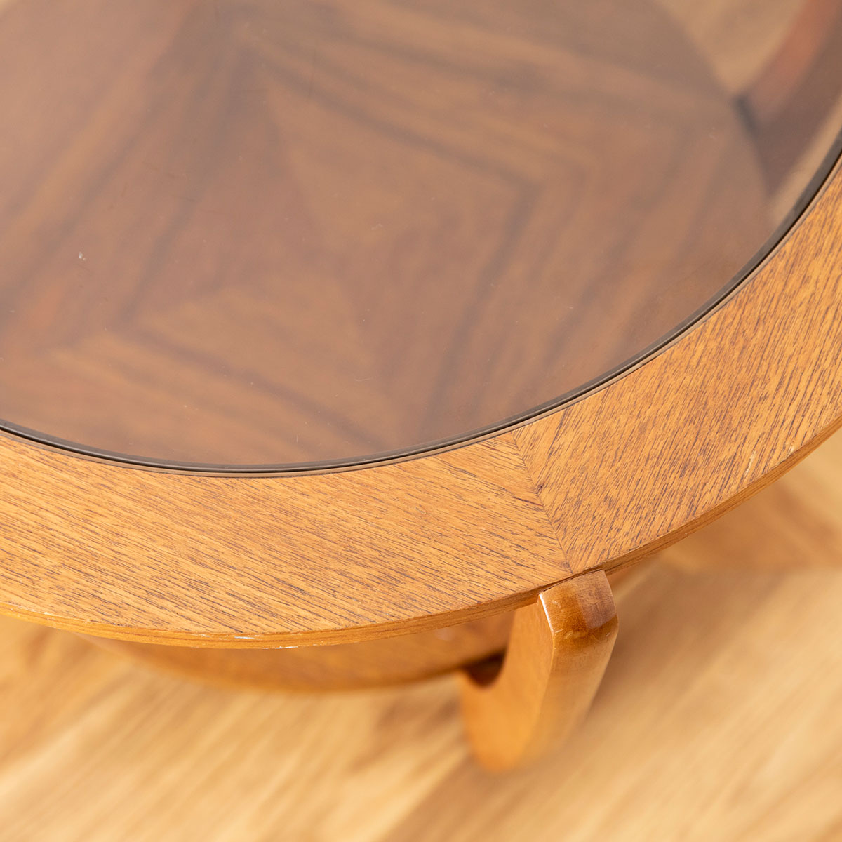 ガラス天板は取り外し可能です。表面には経年的な傷みが見られます。