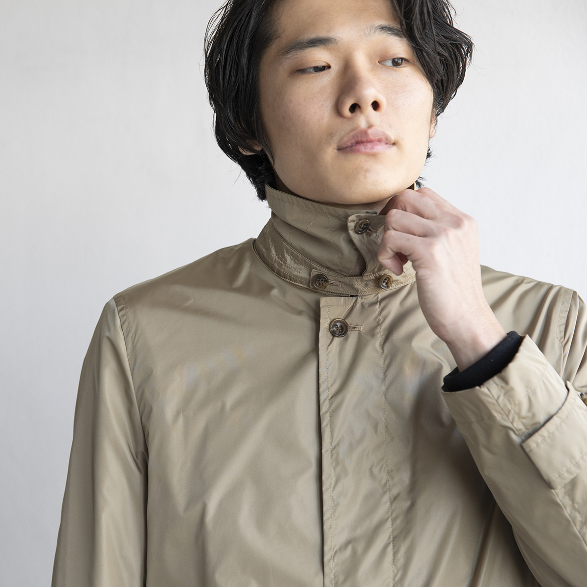 襟先の釦を留めるとタートルネックのようなディテールになり、