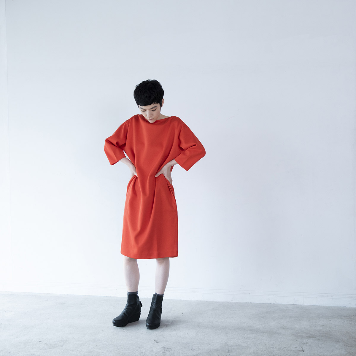 ・シルキーダブルフェイス ワンピース(トマト)