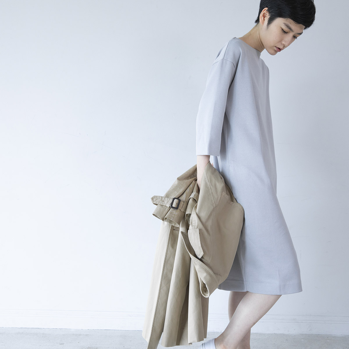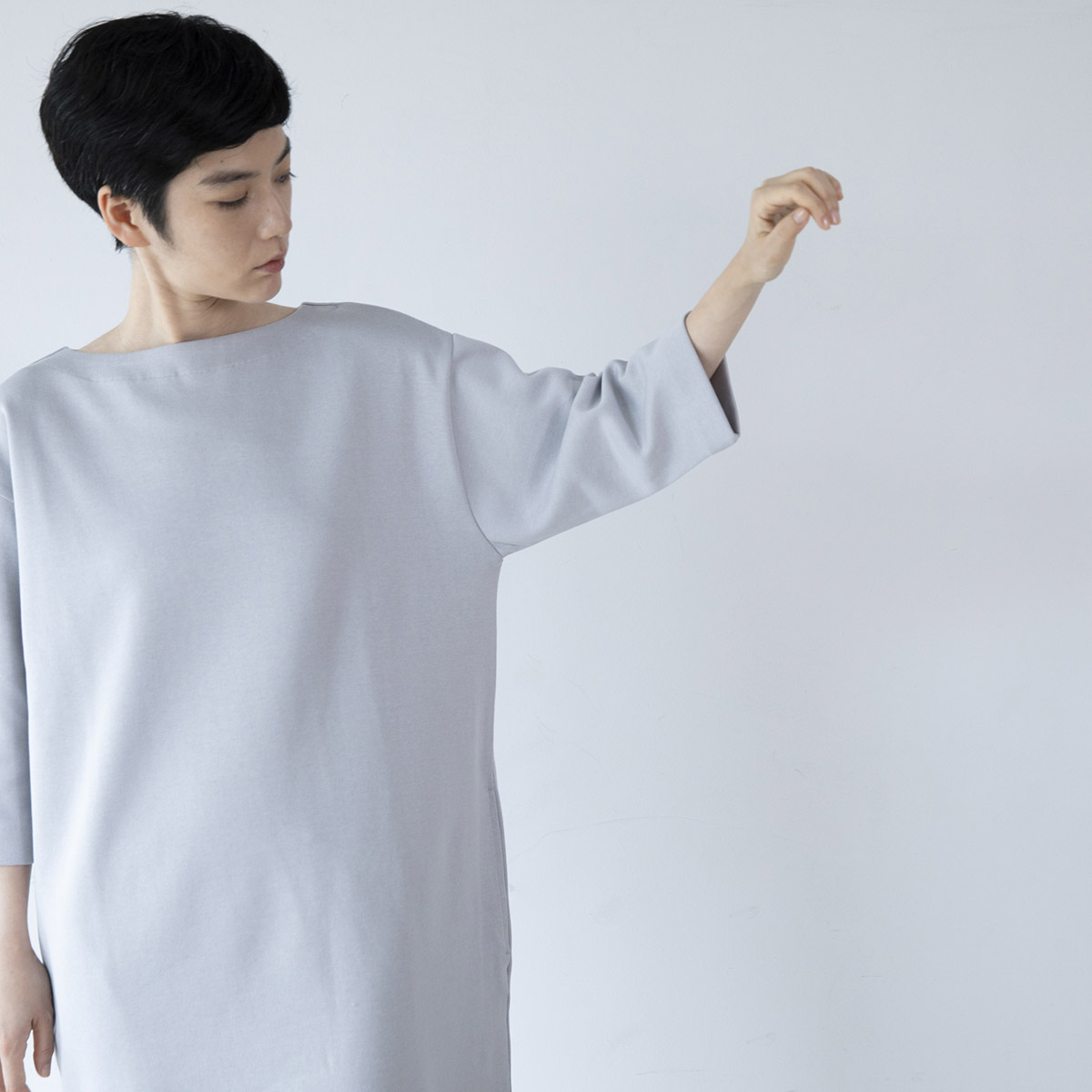 ・シルキーダブルフェイス ワンピース(グレー)