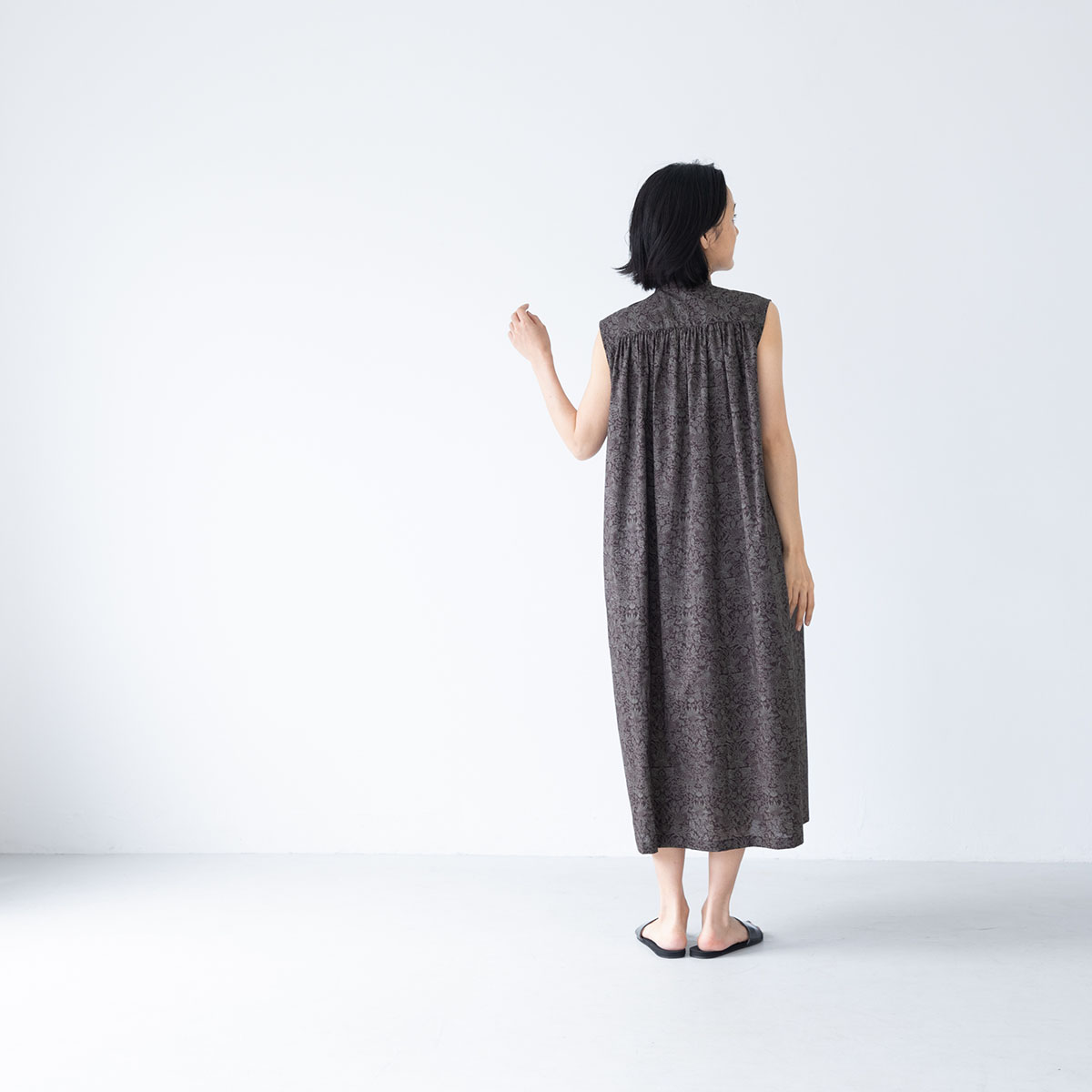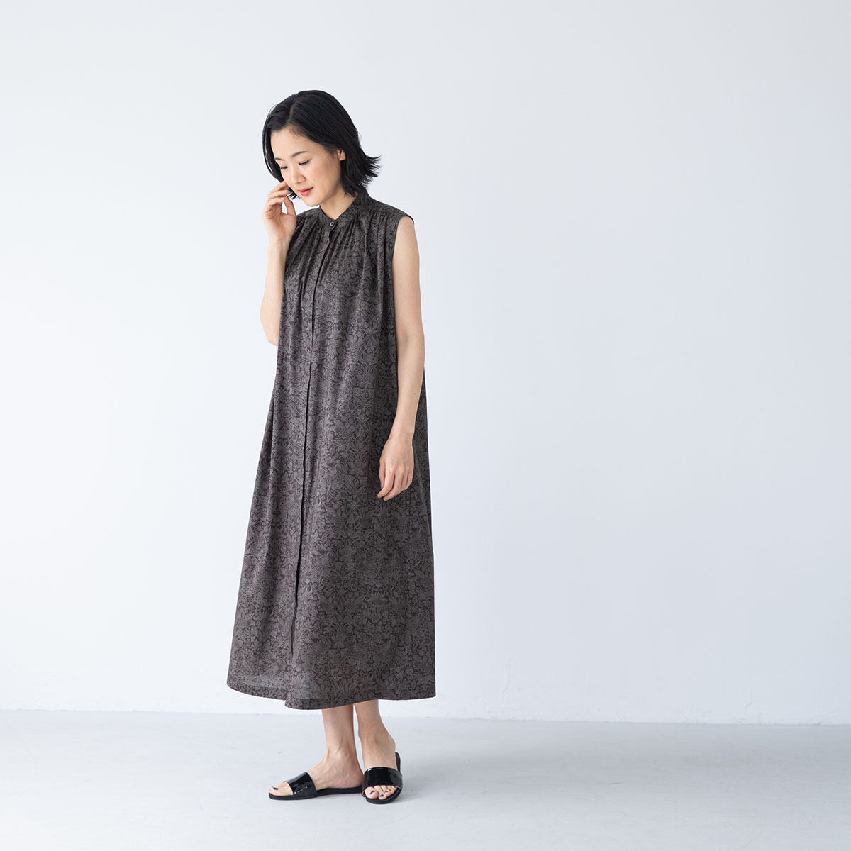 袖のないロングマキシワンピースは