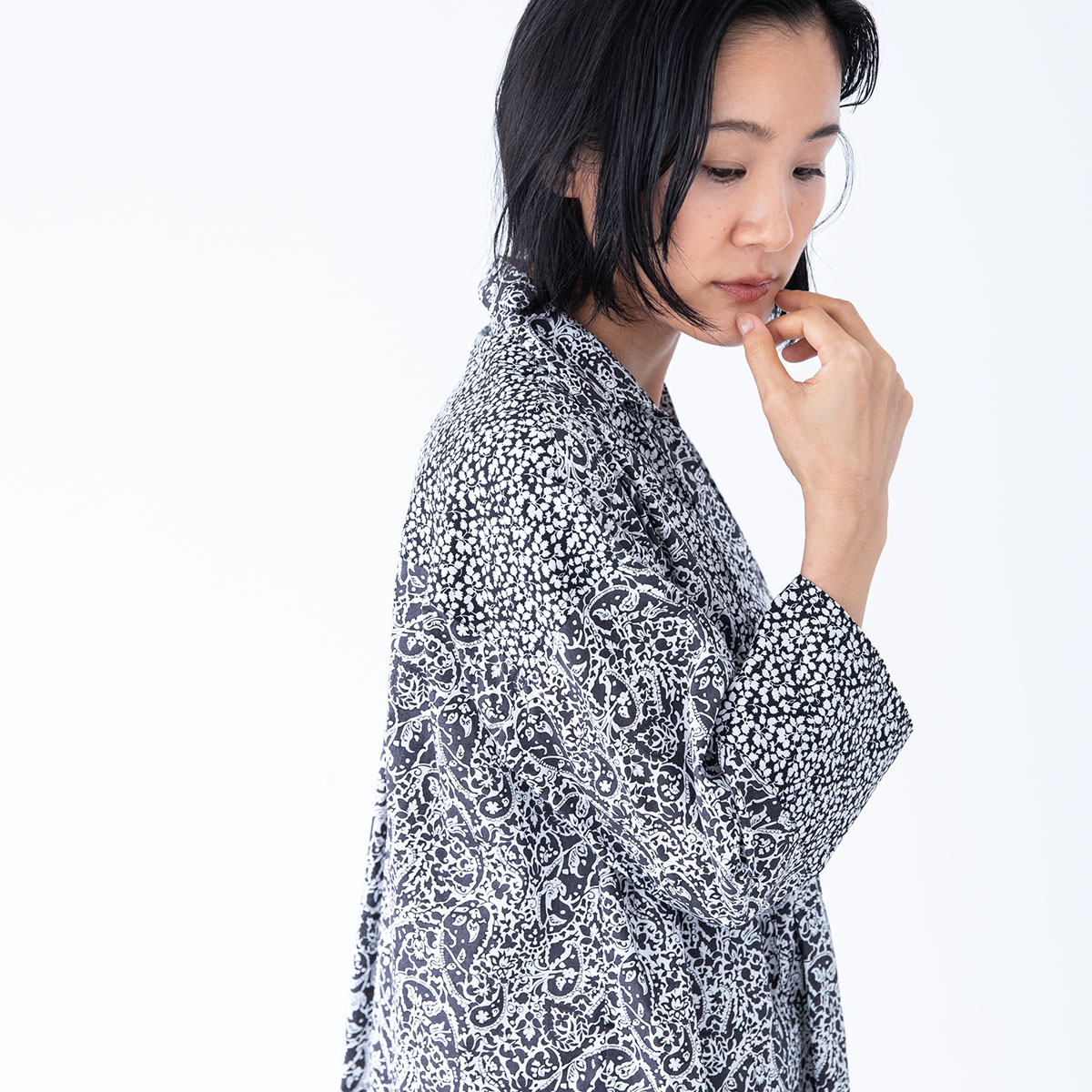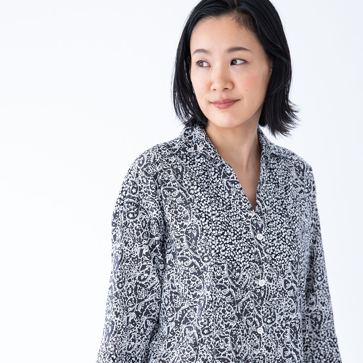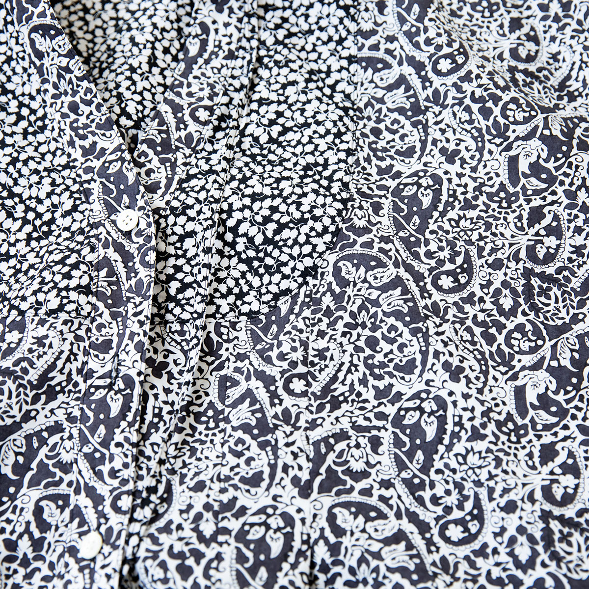 シックな黒×白の花柄のリバティを2種類使った、