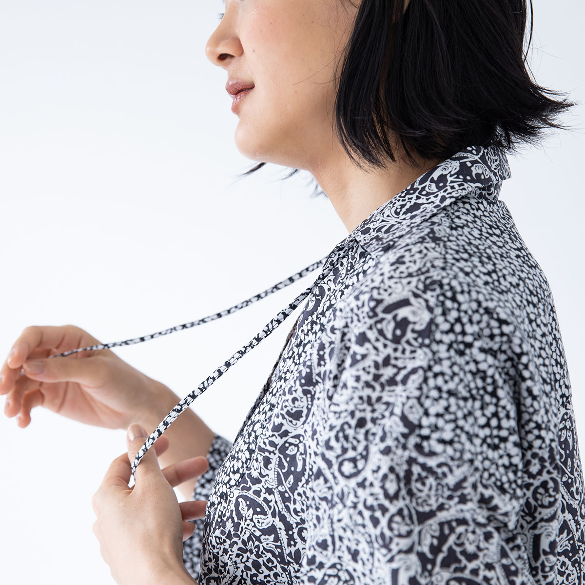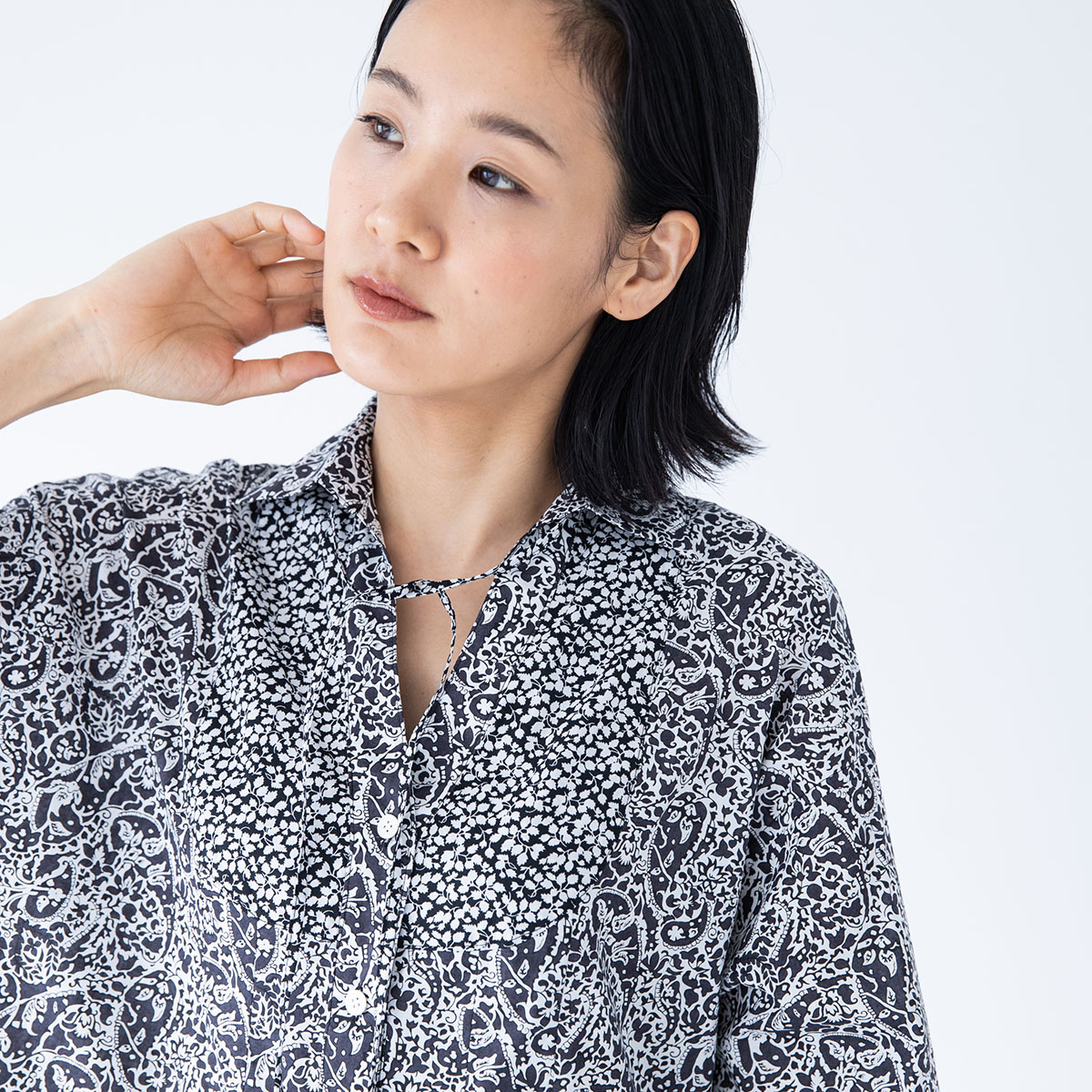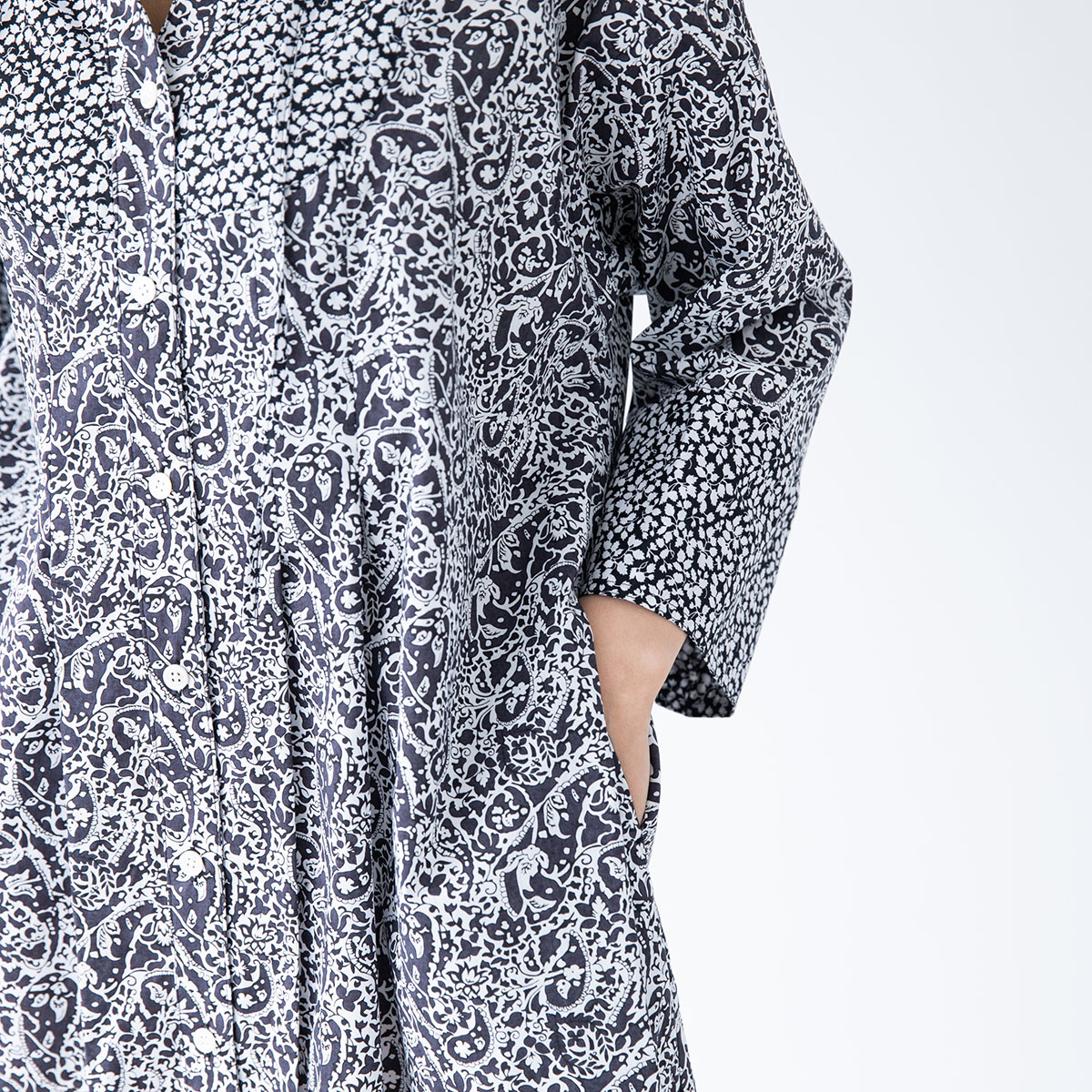 シックな黒×白の花柄のリバティを2種類使った、