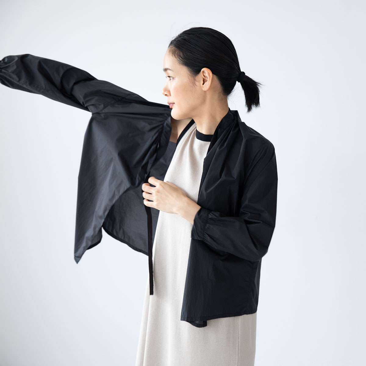 さらりと羽織ったり、ボウタイを結んだり、