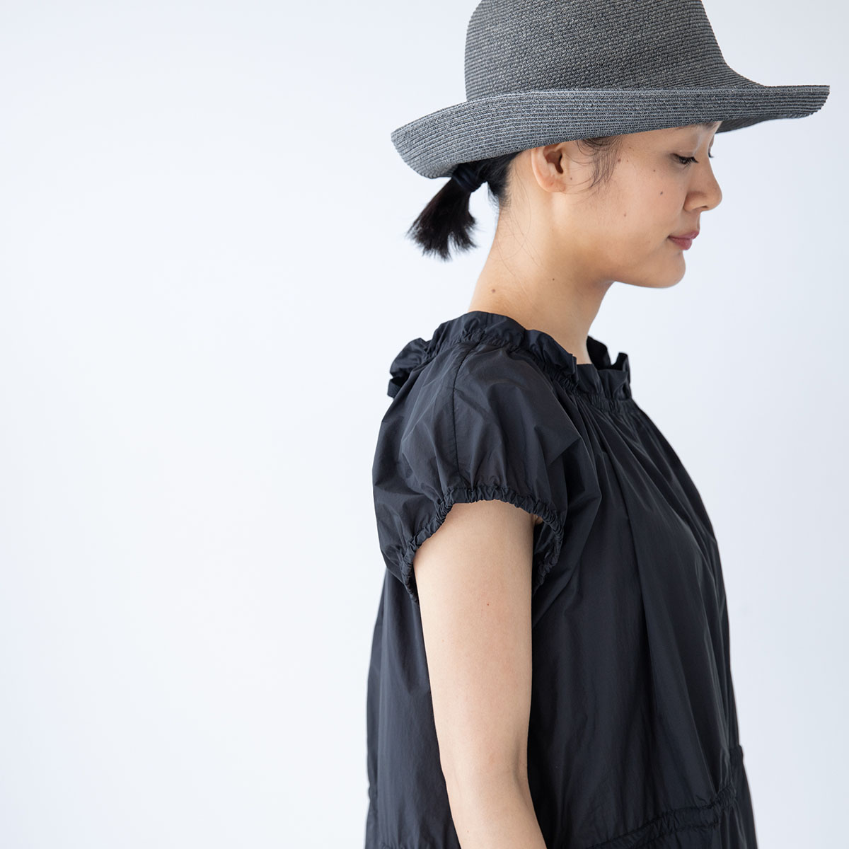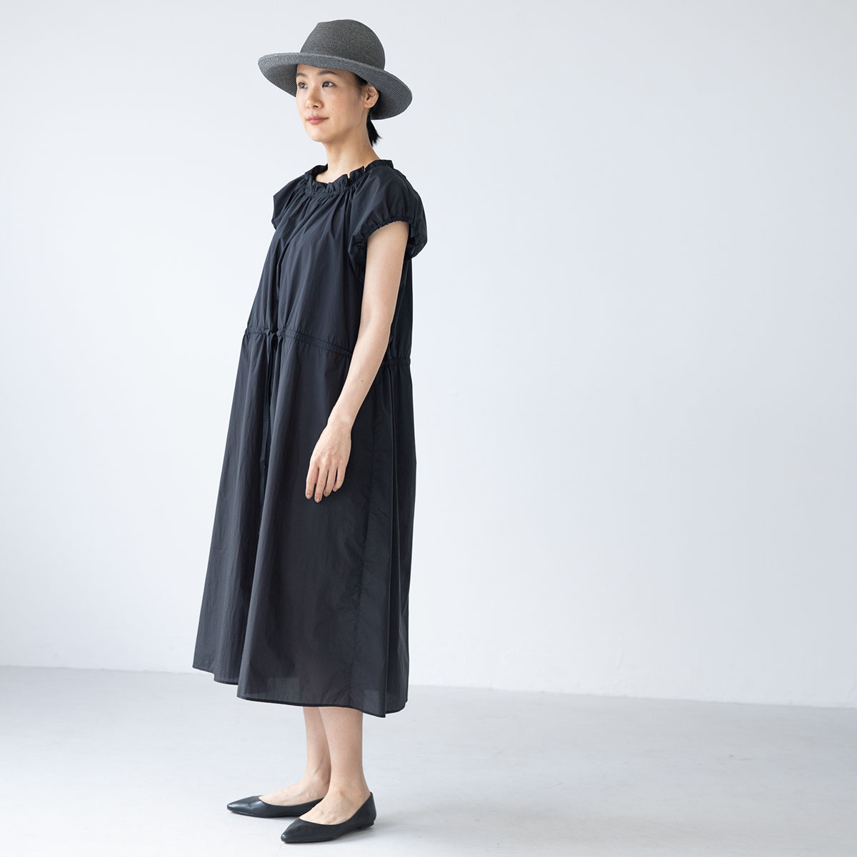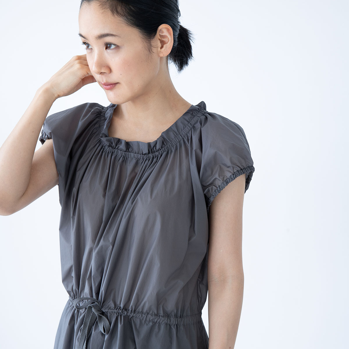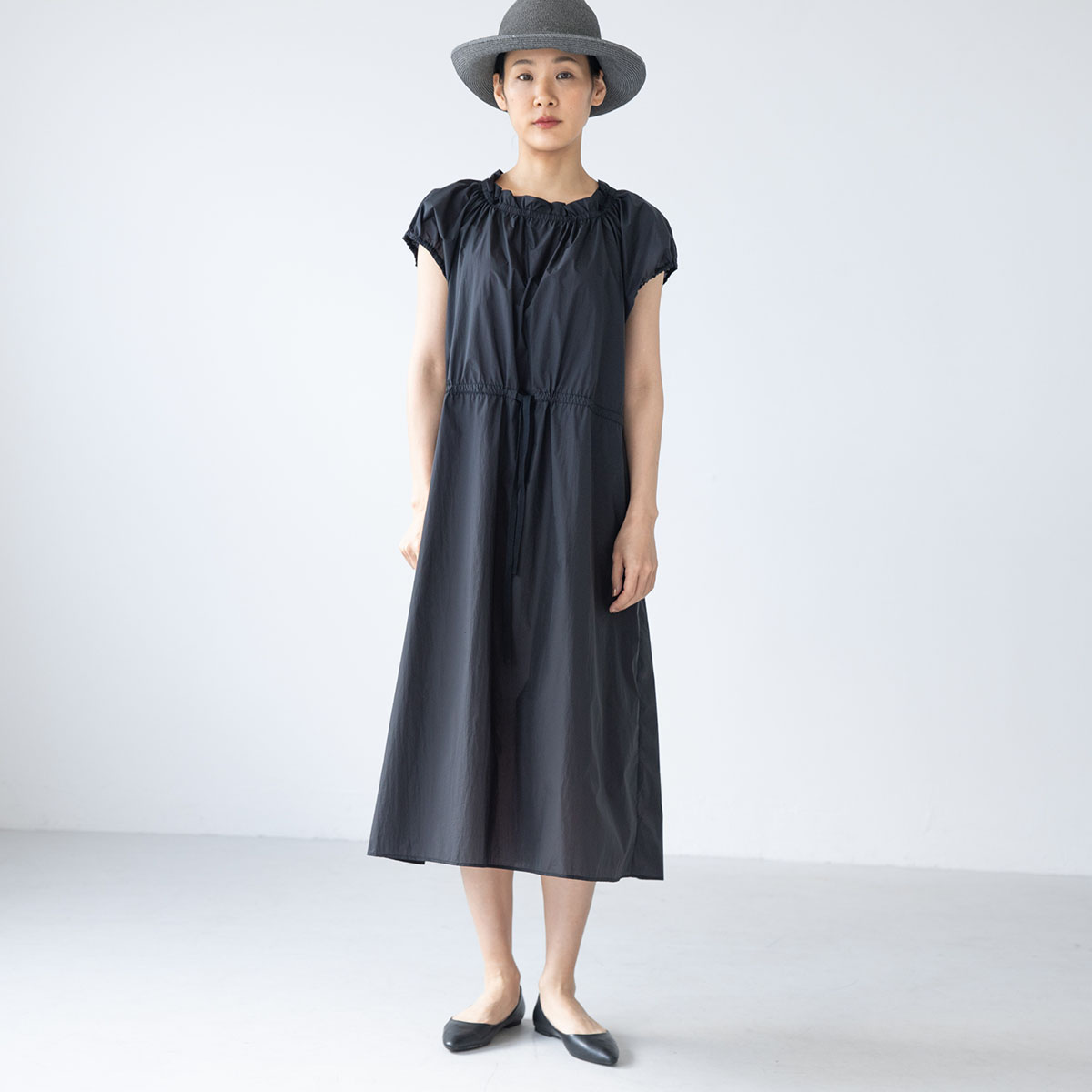 ウェストはギャザー‥‥と、