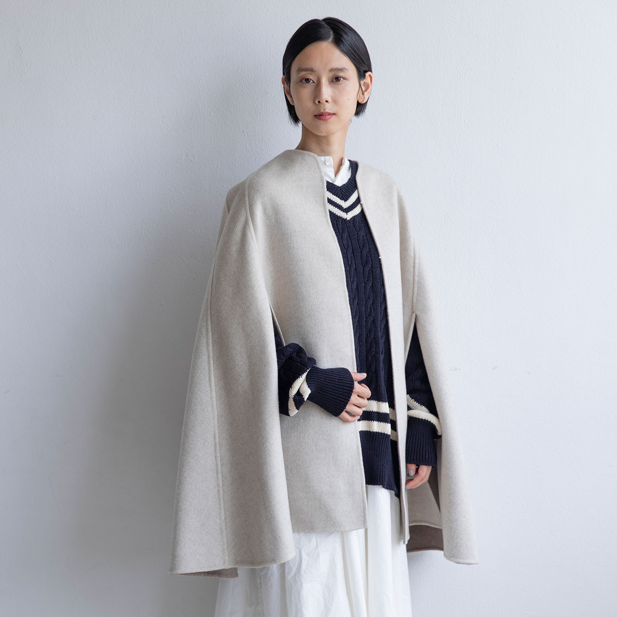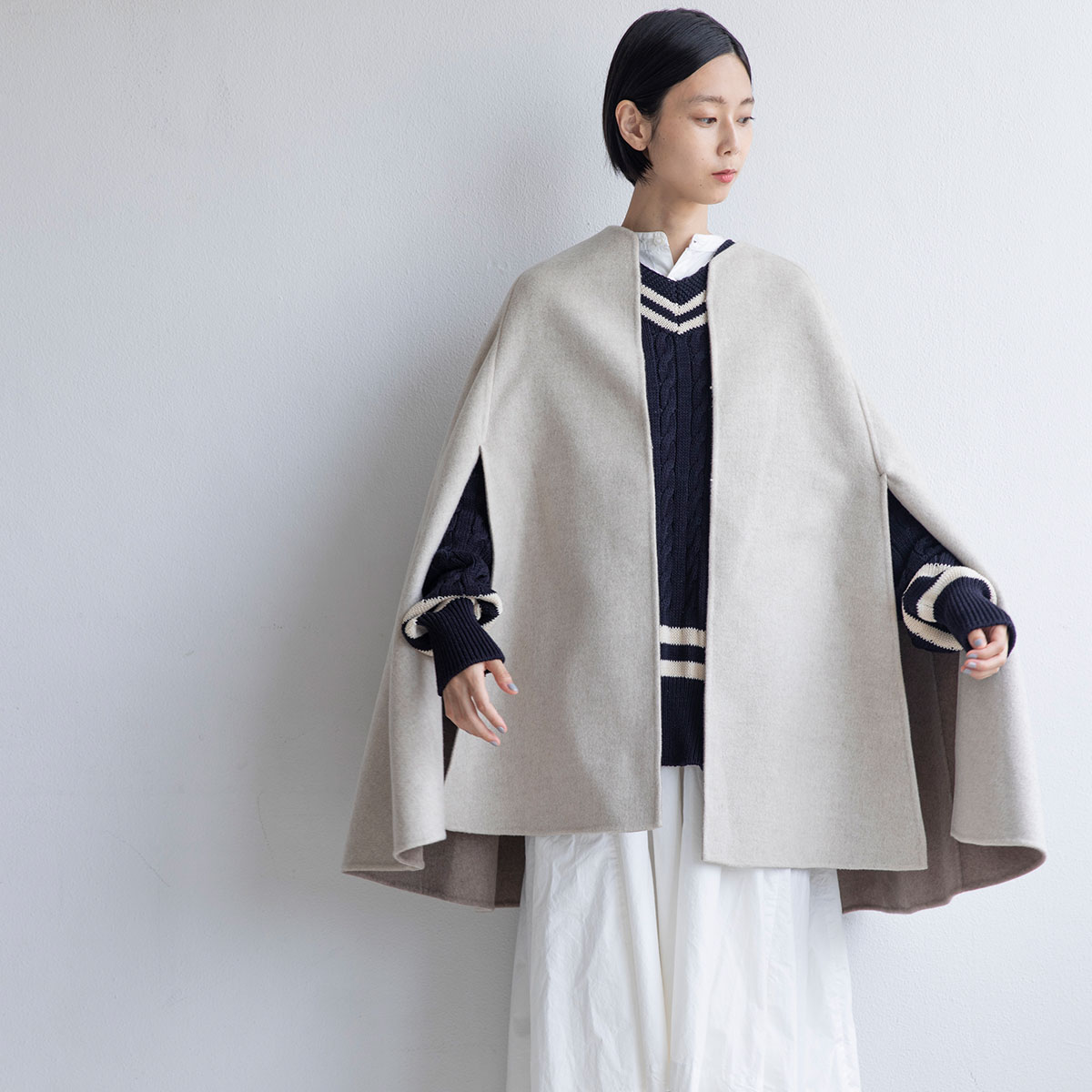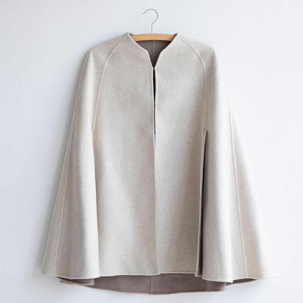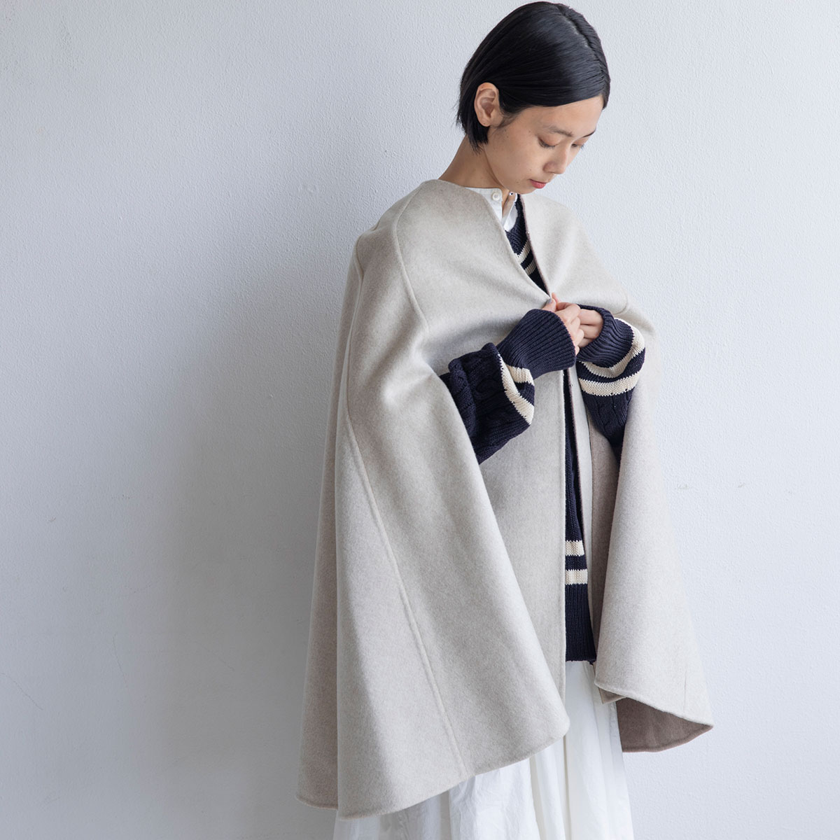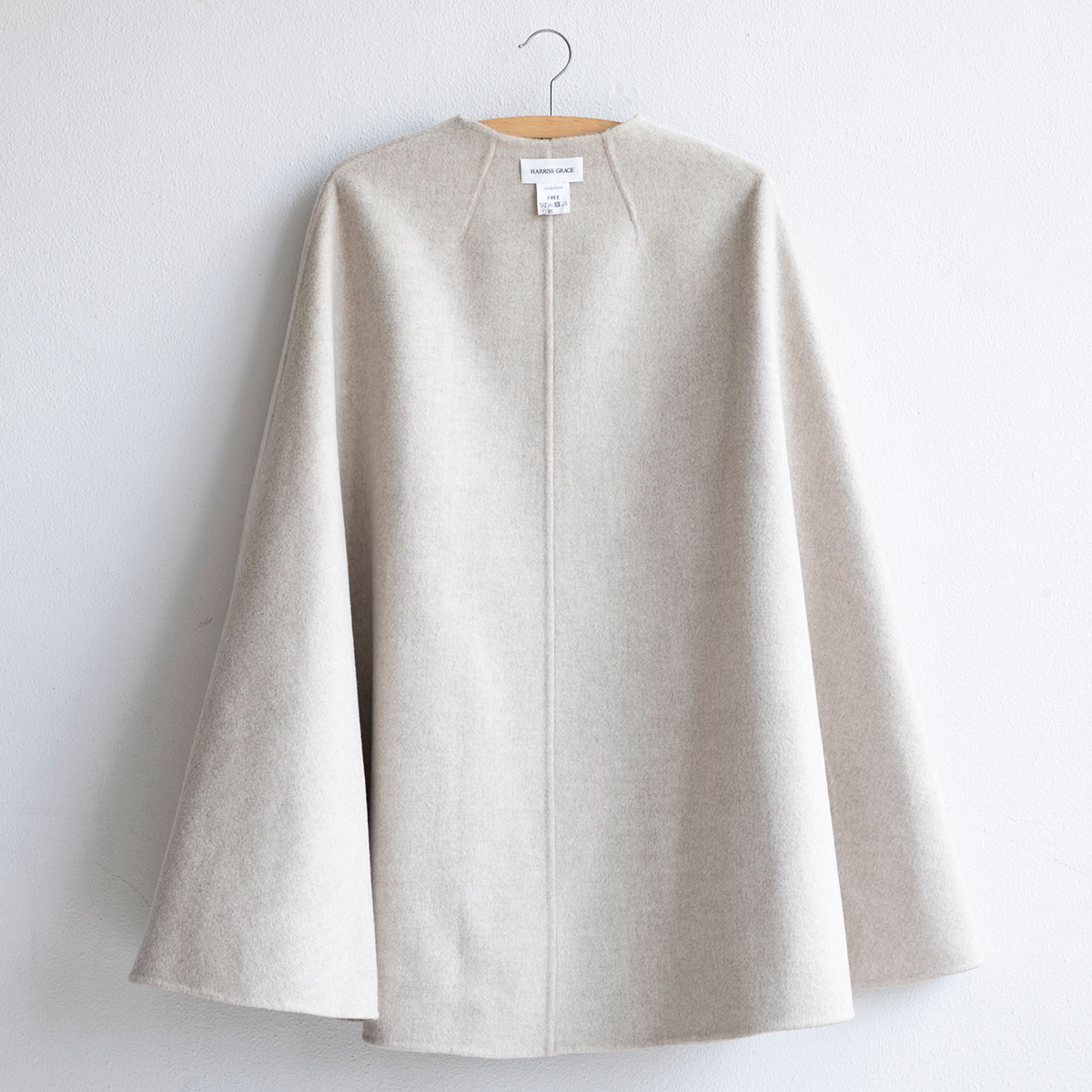 カシミヤリバーシブル ケープ(ベージュ/ホワイト)/HARRISS GRACE