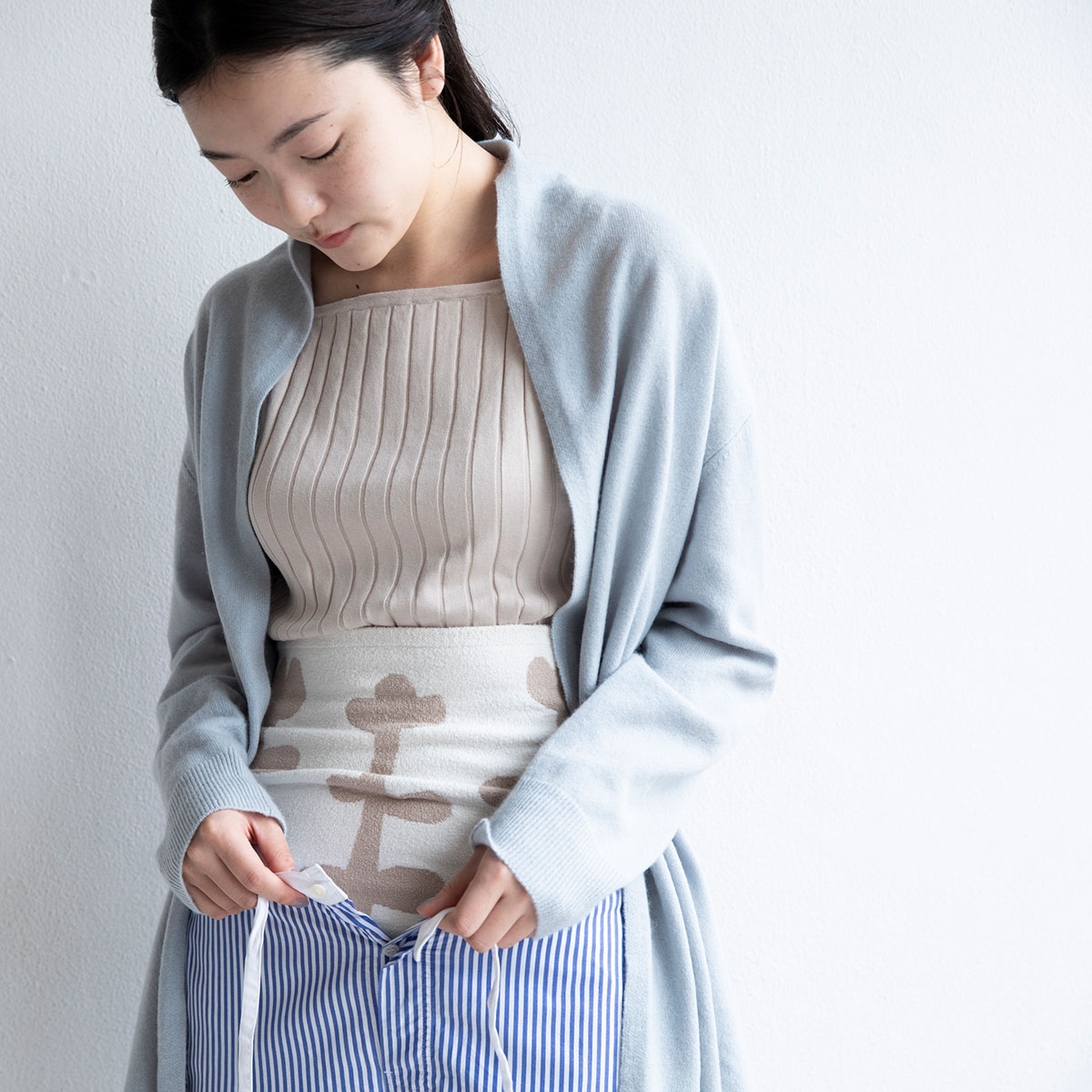 ベージュと白のやさしい色合いのハラマキをつくりました。