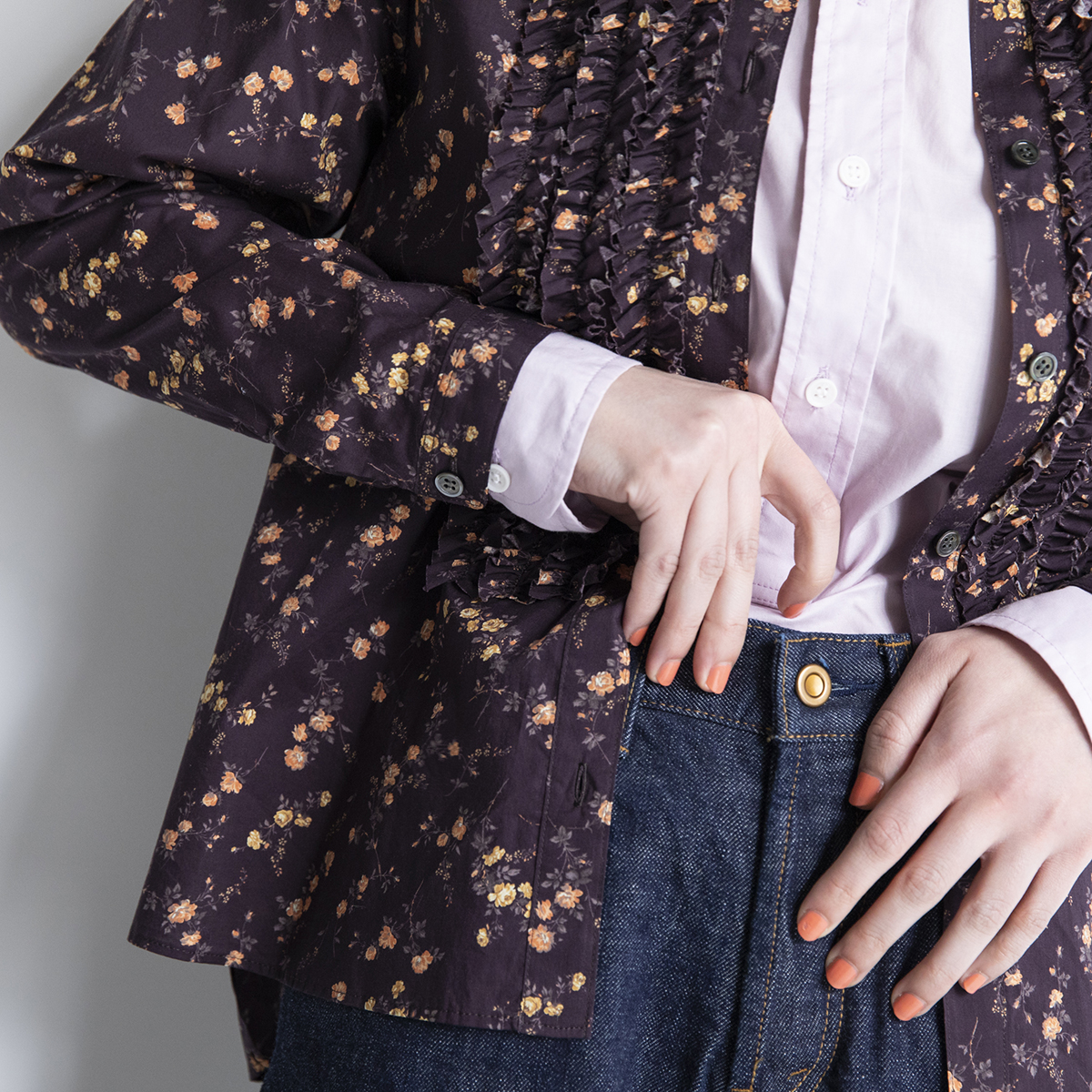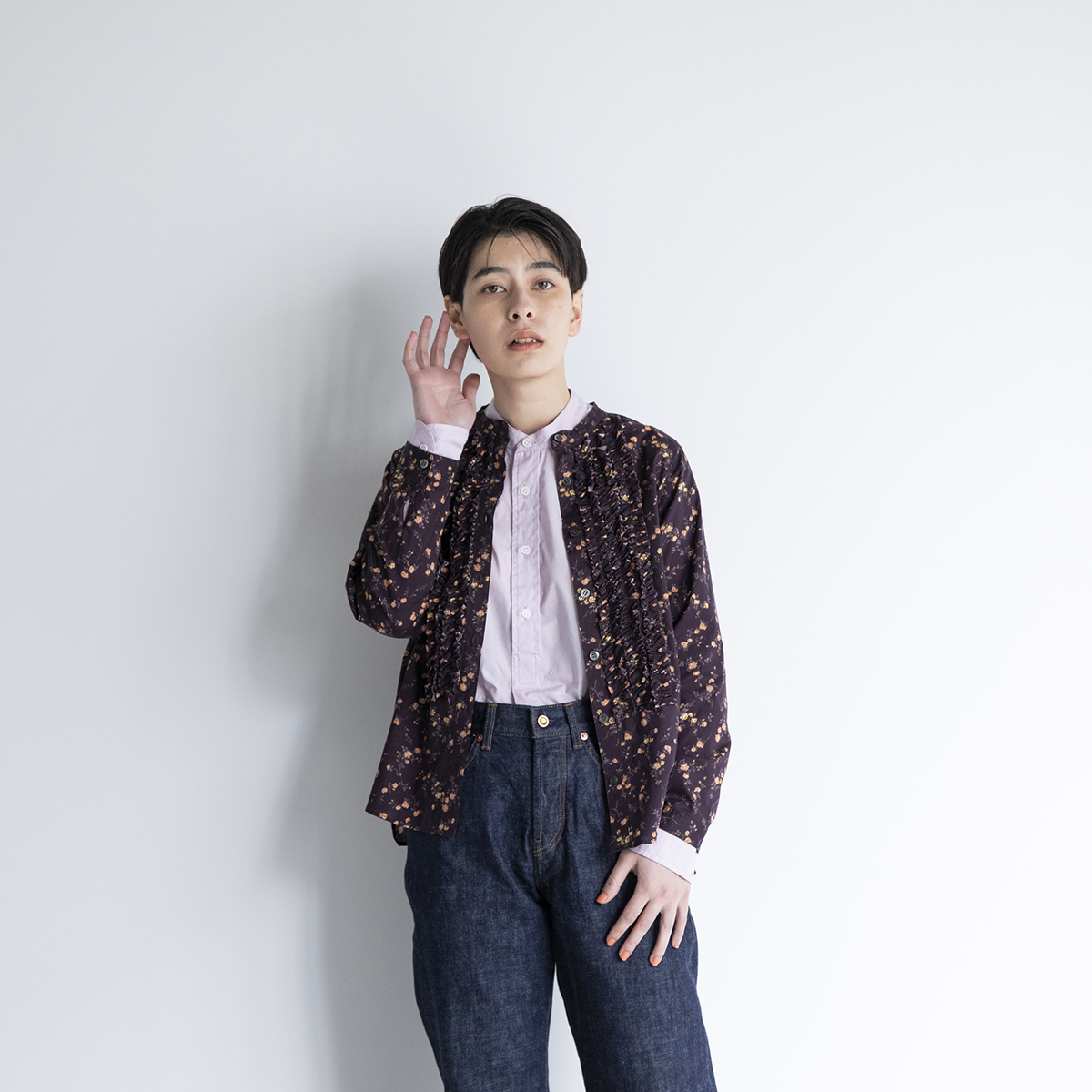 フリルブラウス(リバティ・クロ)/t.yamai paris