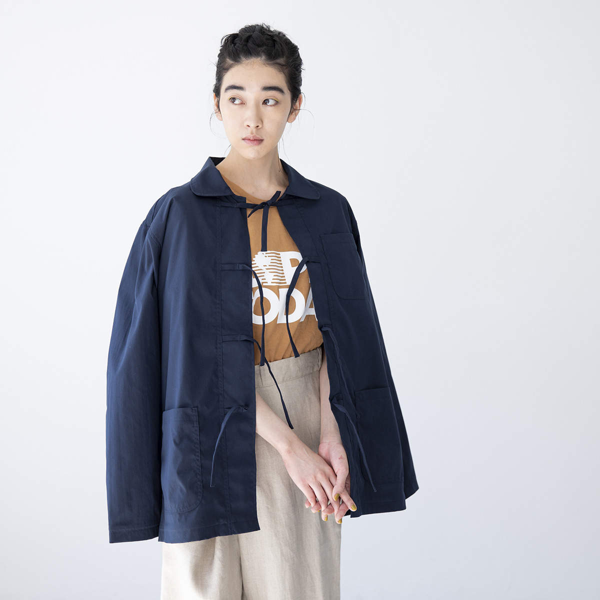 紐のディテールでジャケットをつくりたいという