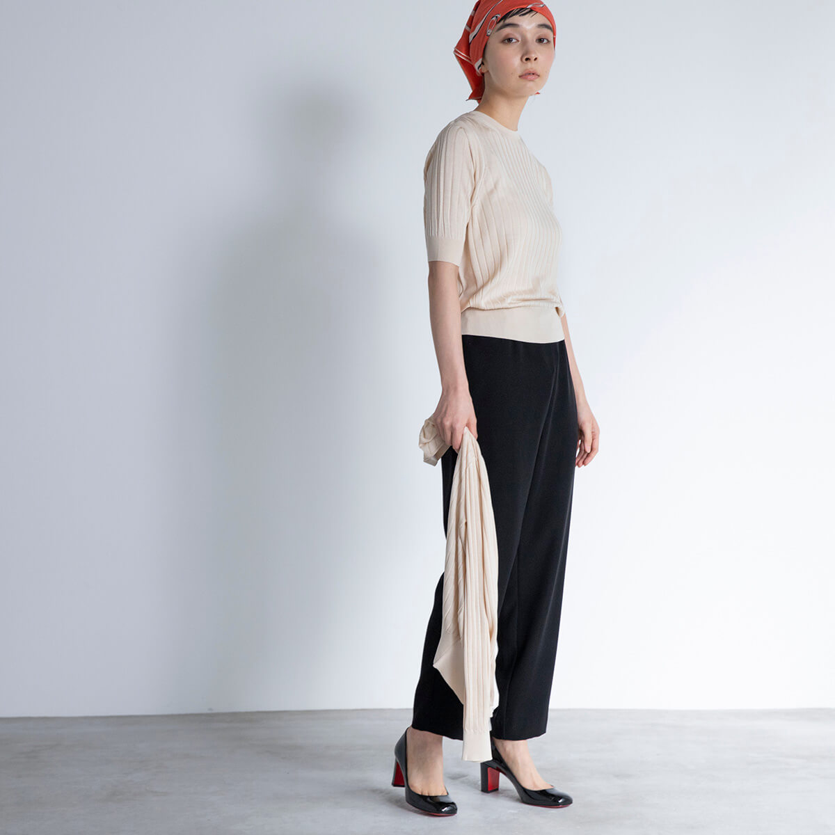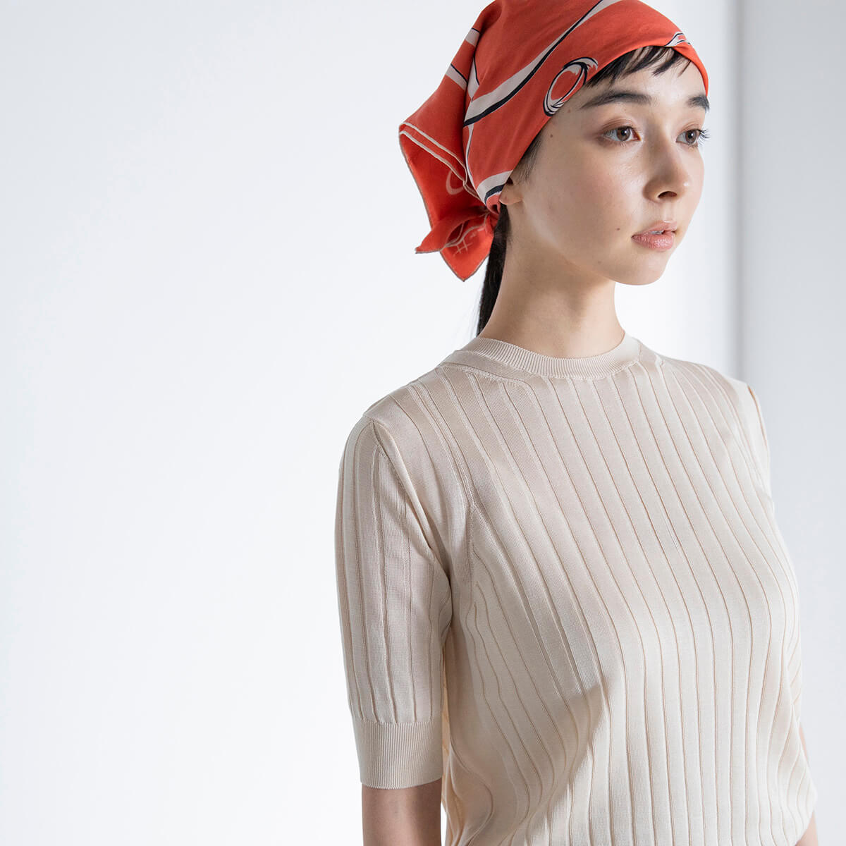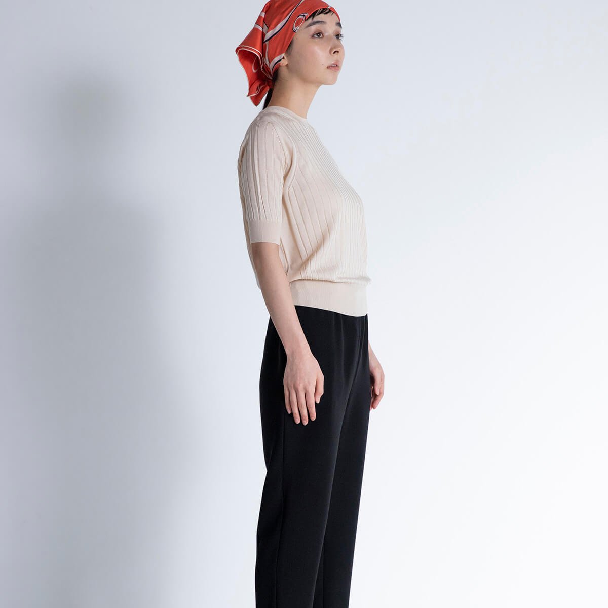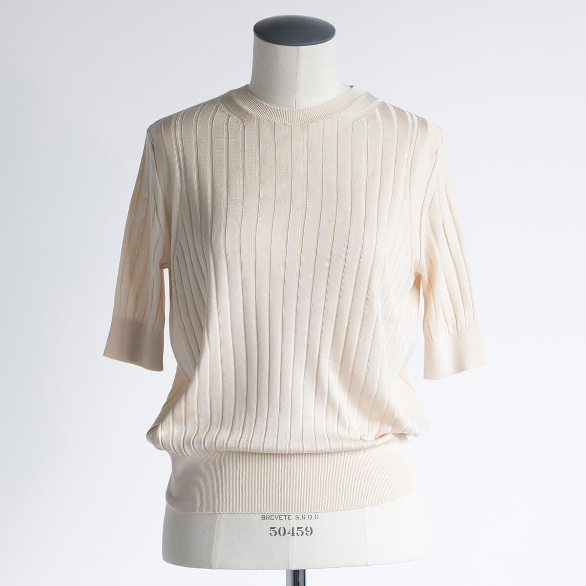 シルクワイドリブ半袖クルーネック(エクリュ)/SLOANE