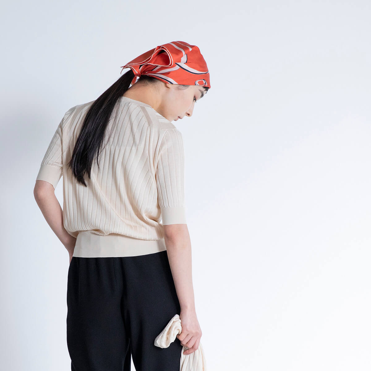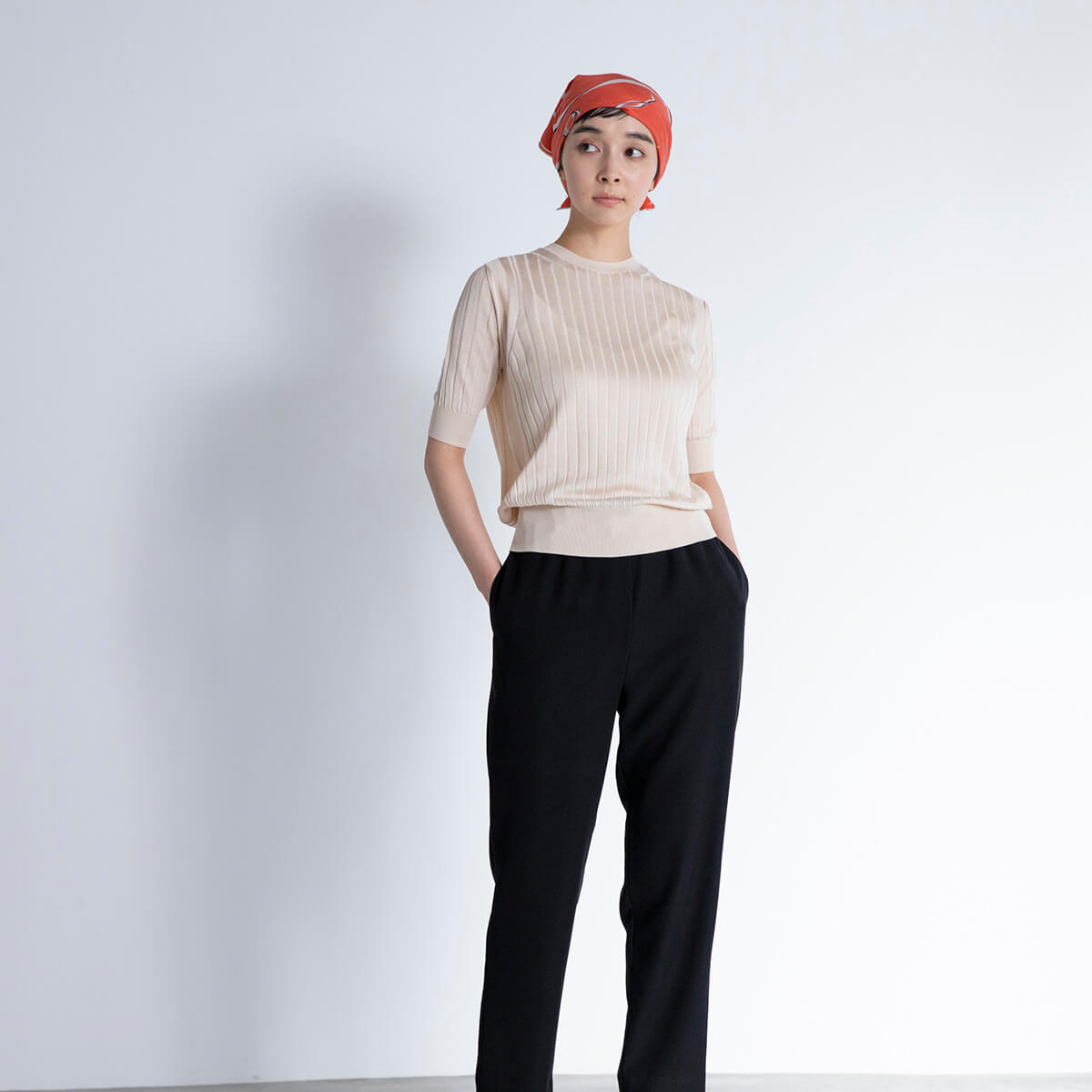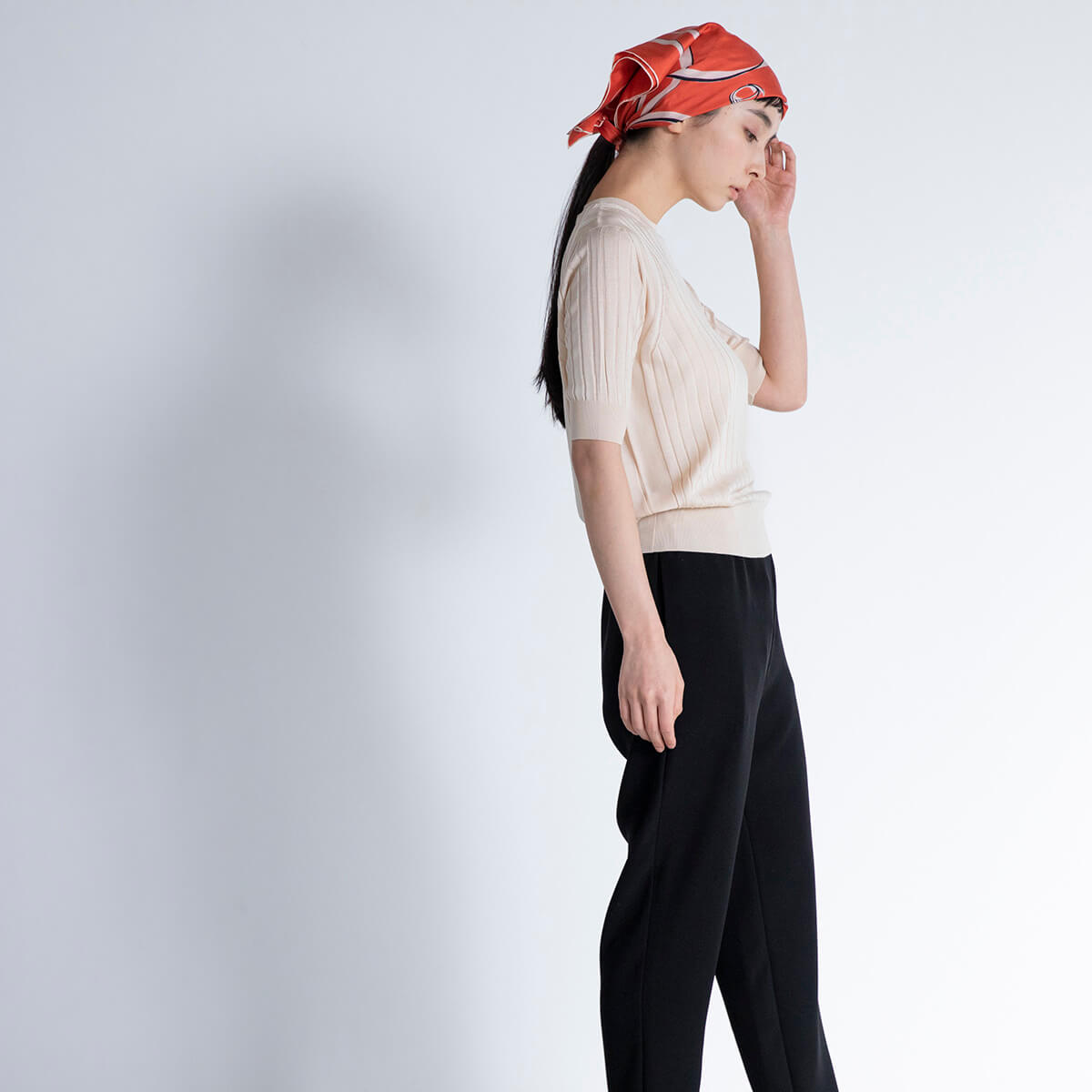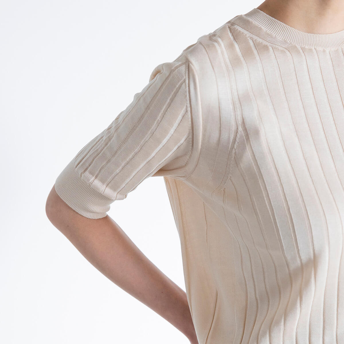 シルクワイドリブ半袖クルーネック(エクリュ)/SLOANE