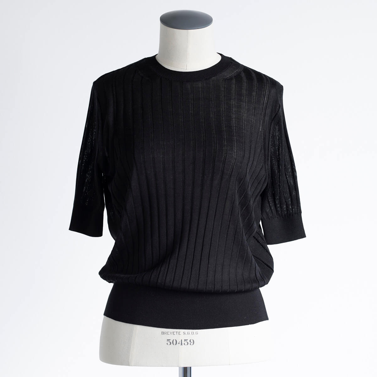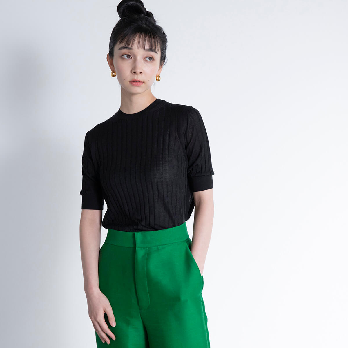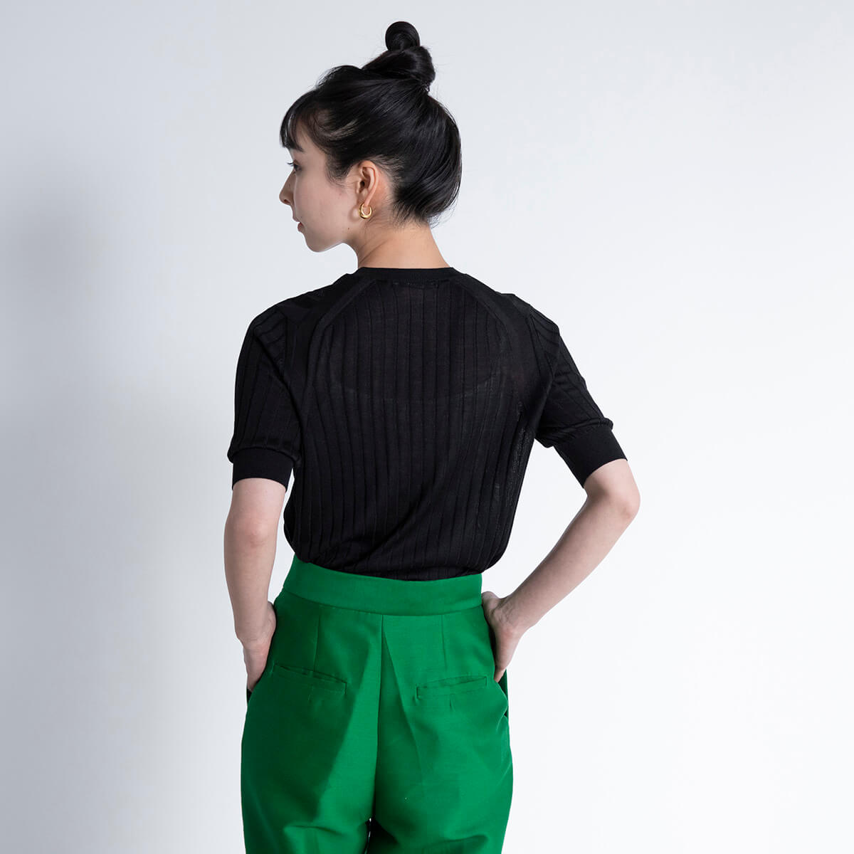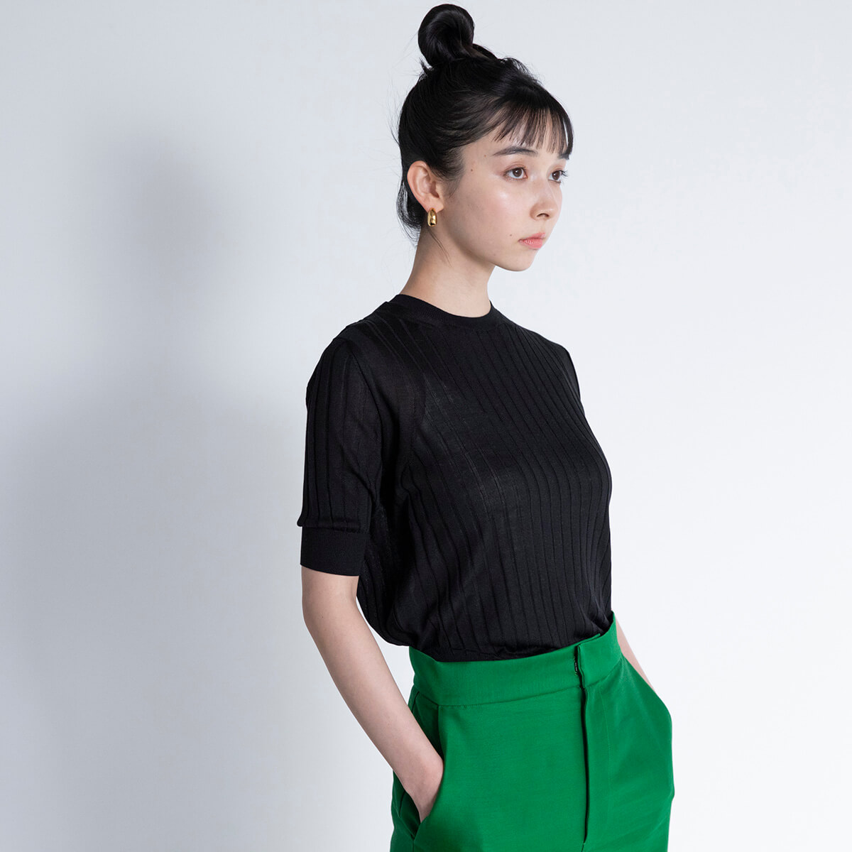 シルクワイドリブ半袖クルーネック(ブラック)/SLOANE