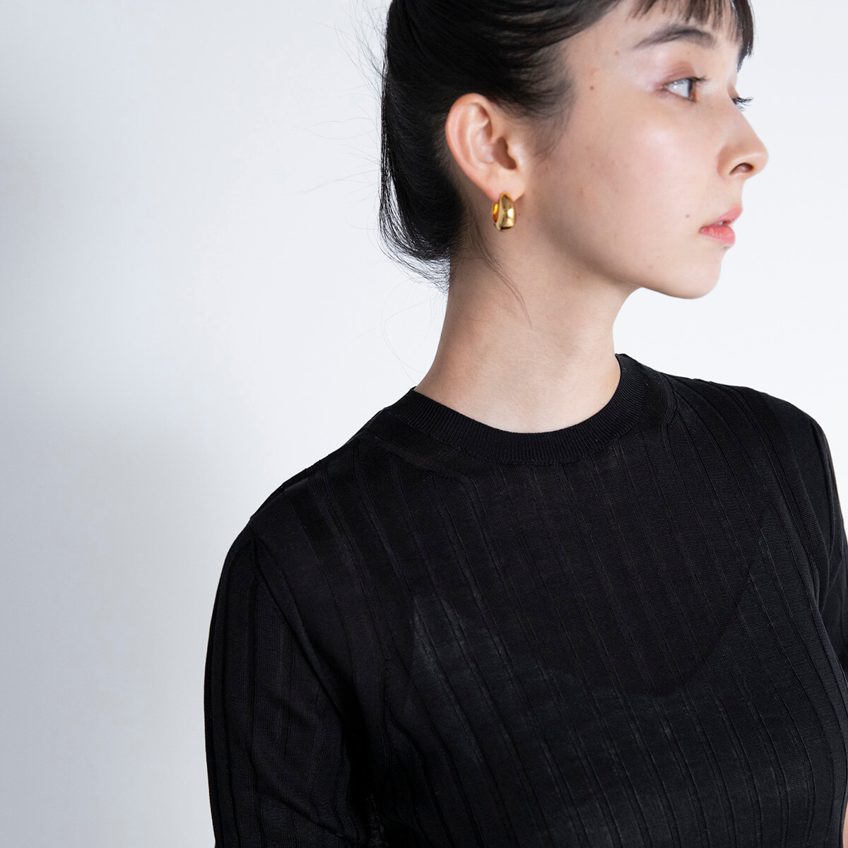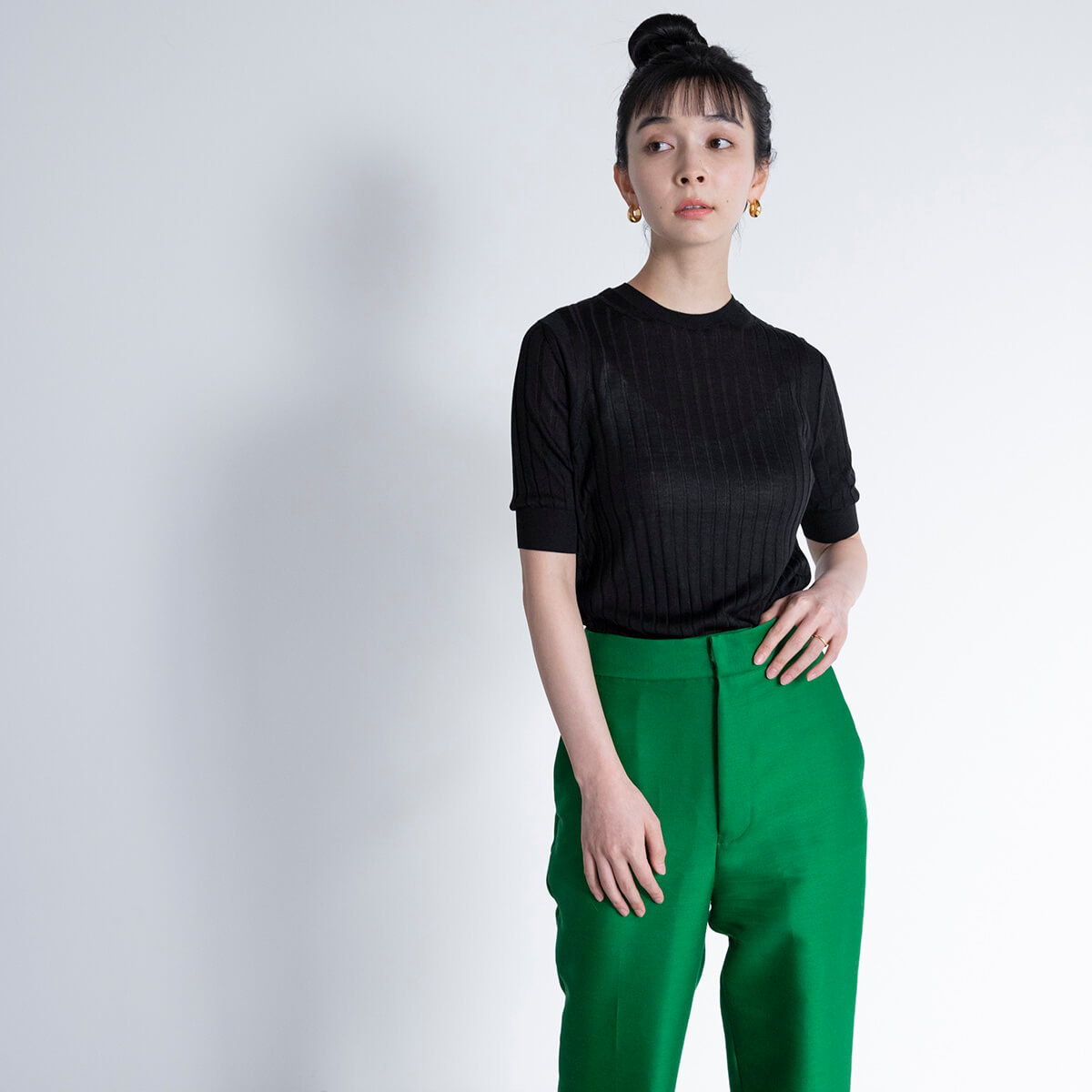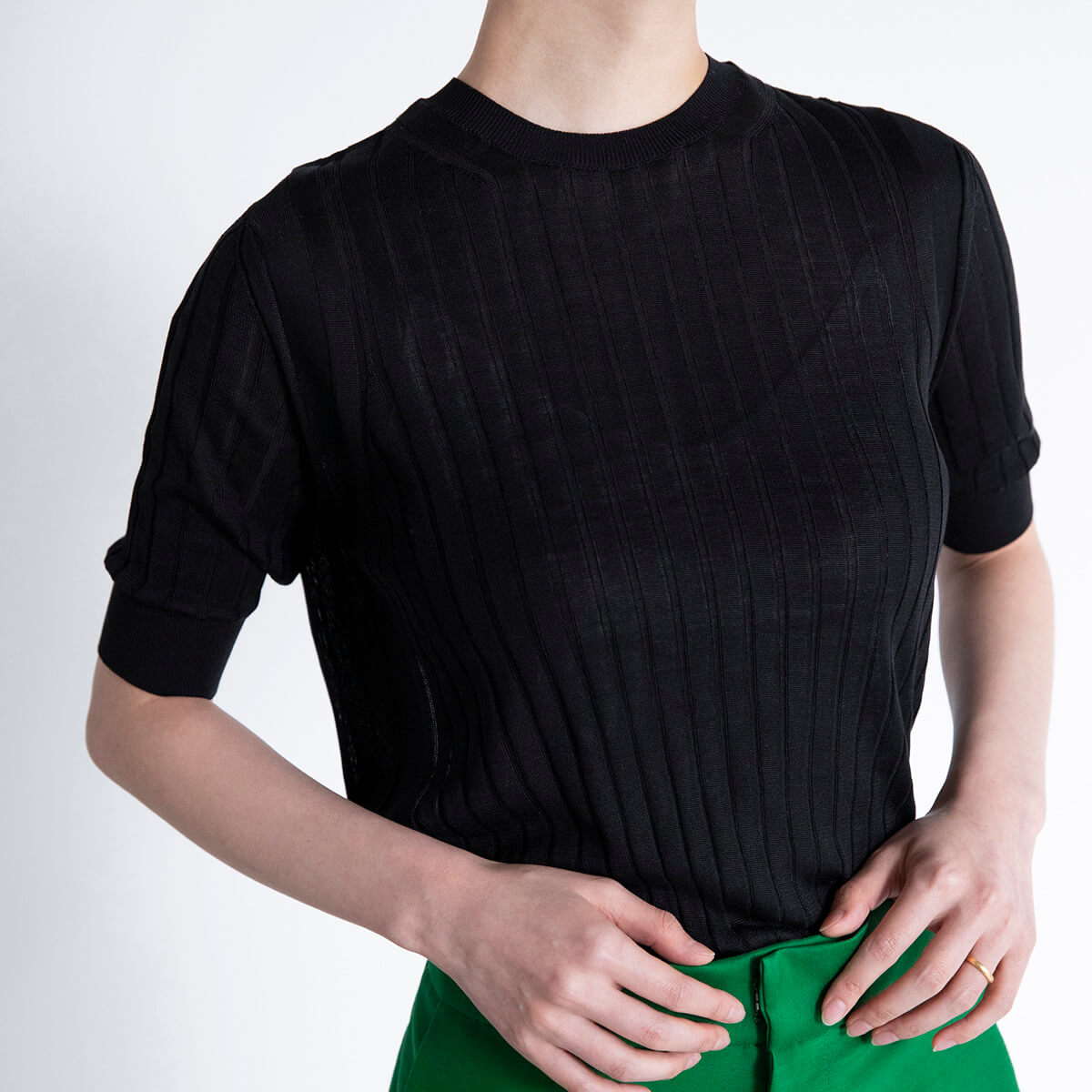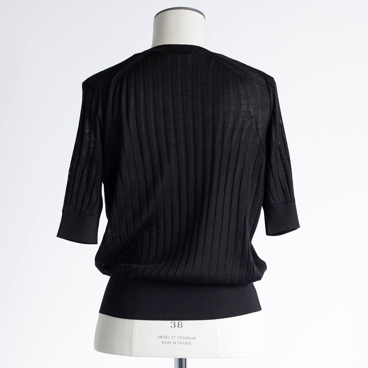 シルクワイドリブ半袖クルーネック(ブラック)/SLOANE
