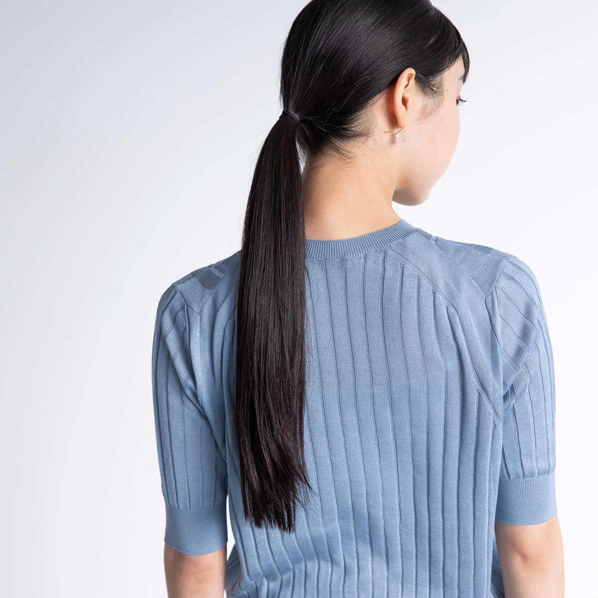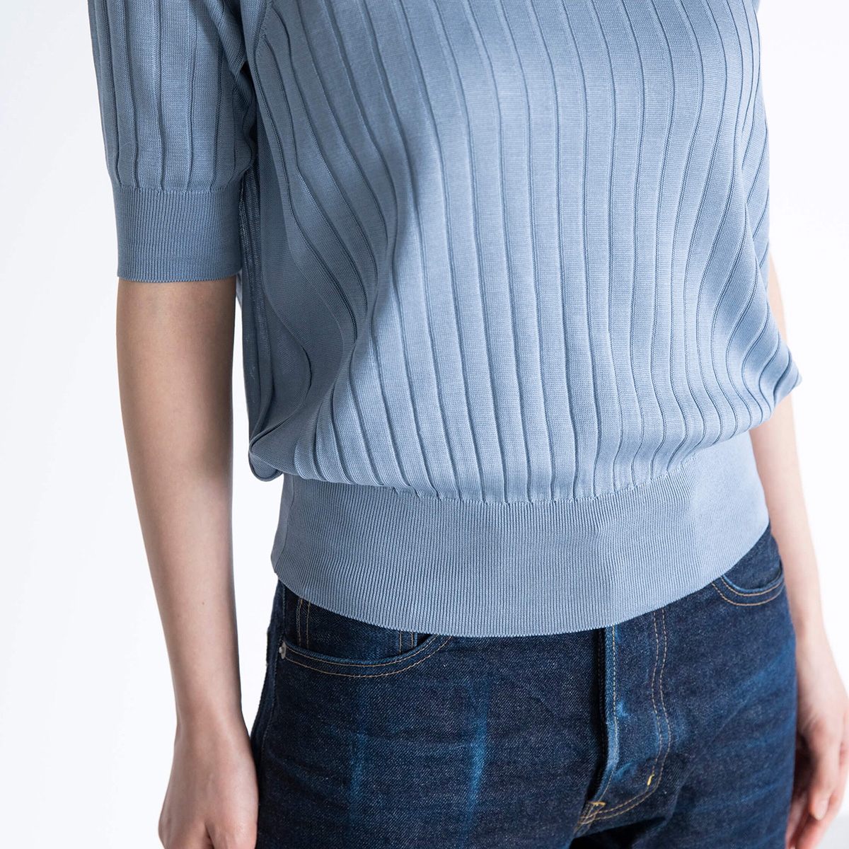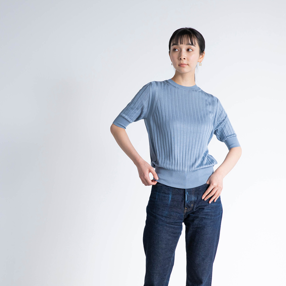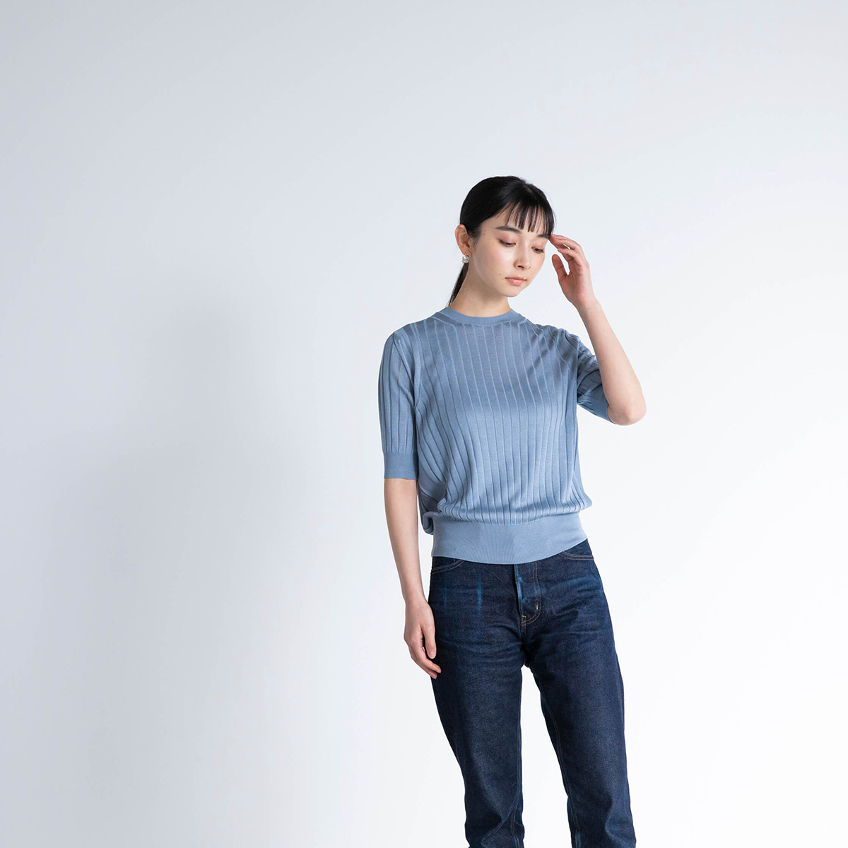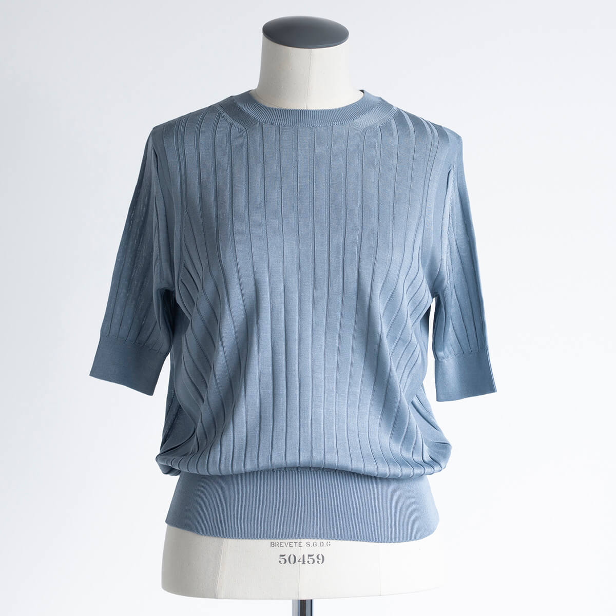 シルクワイドリブ半袖クルーネック(ブルーグレー)/SLOANE