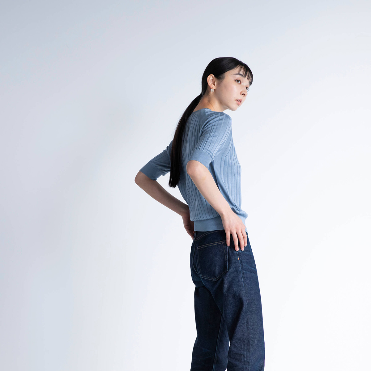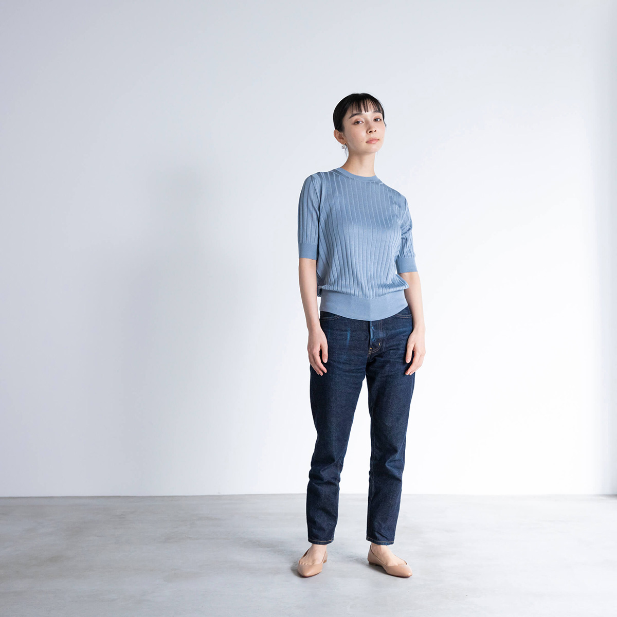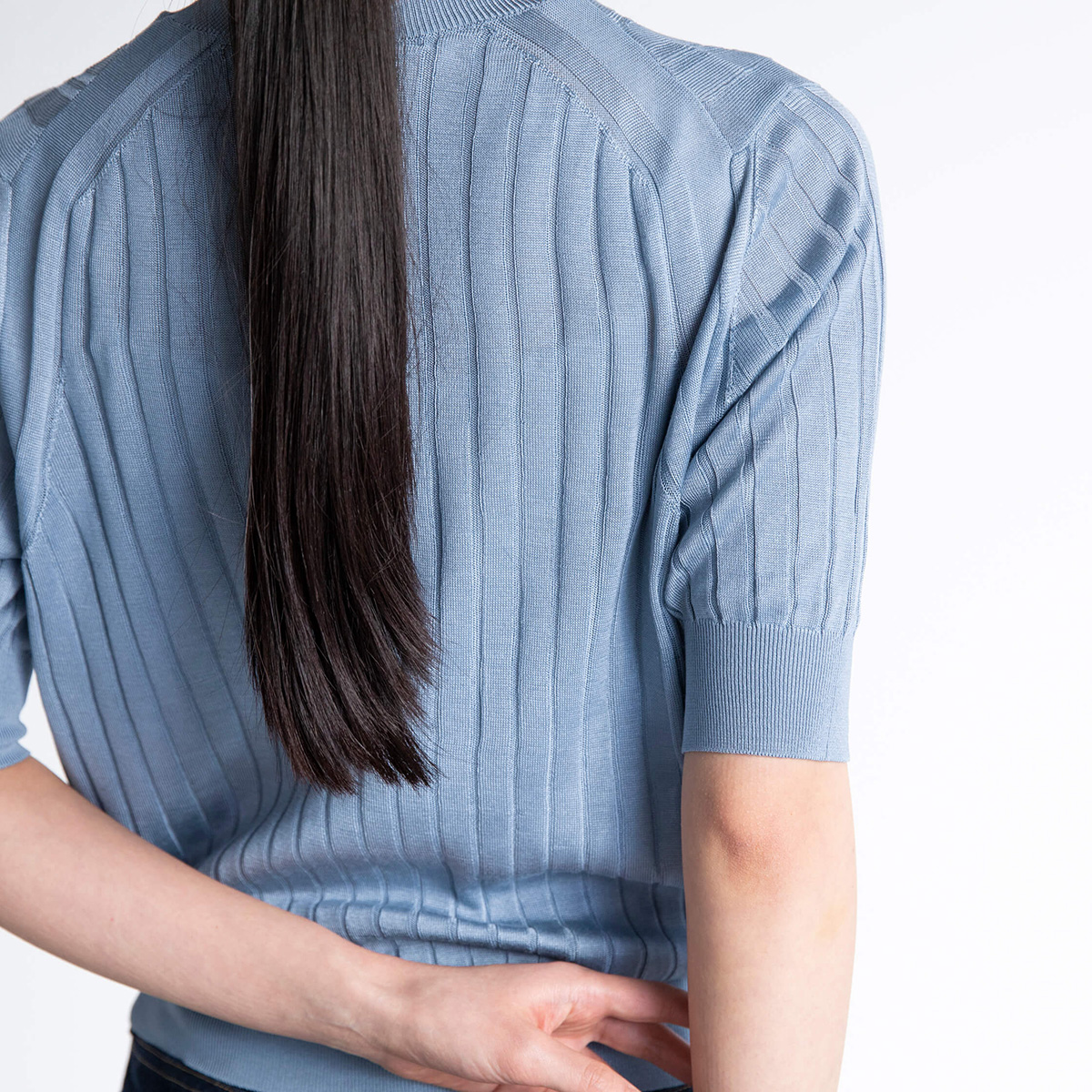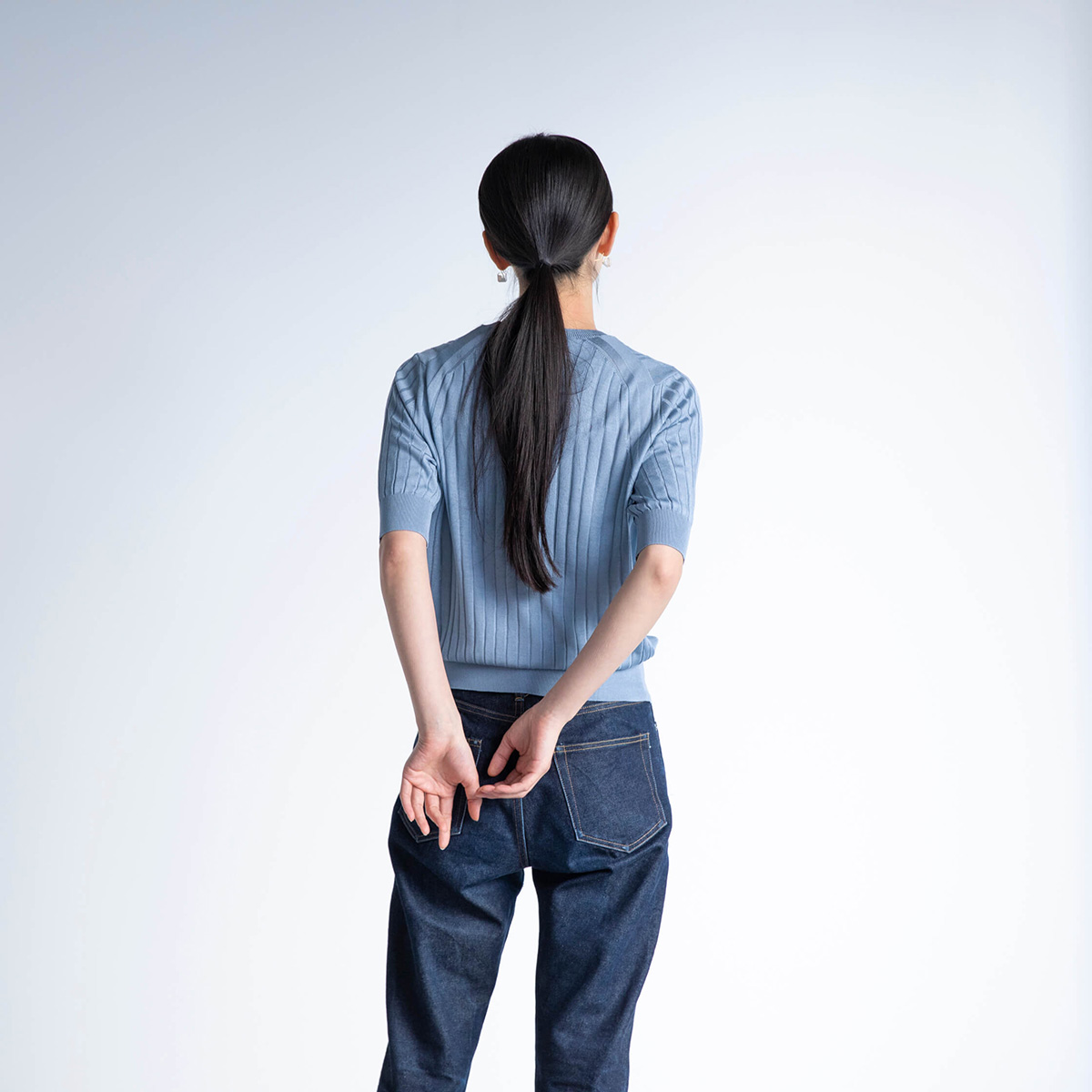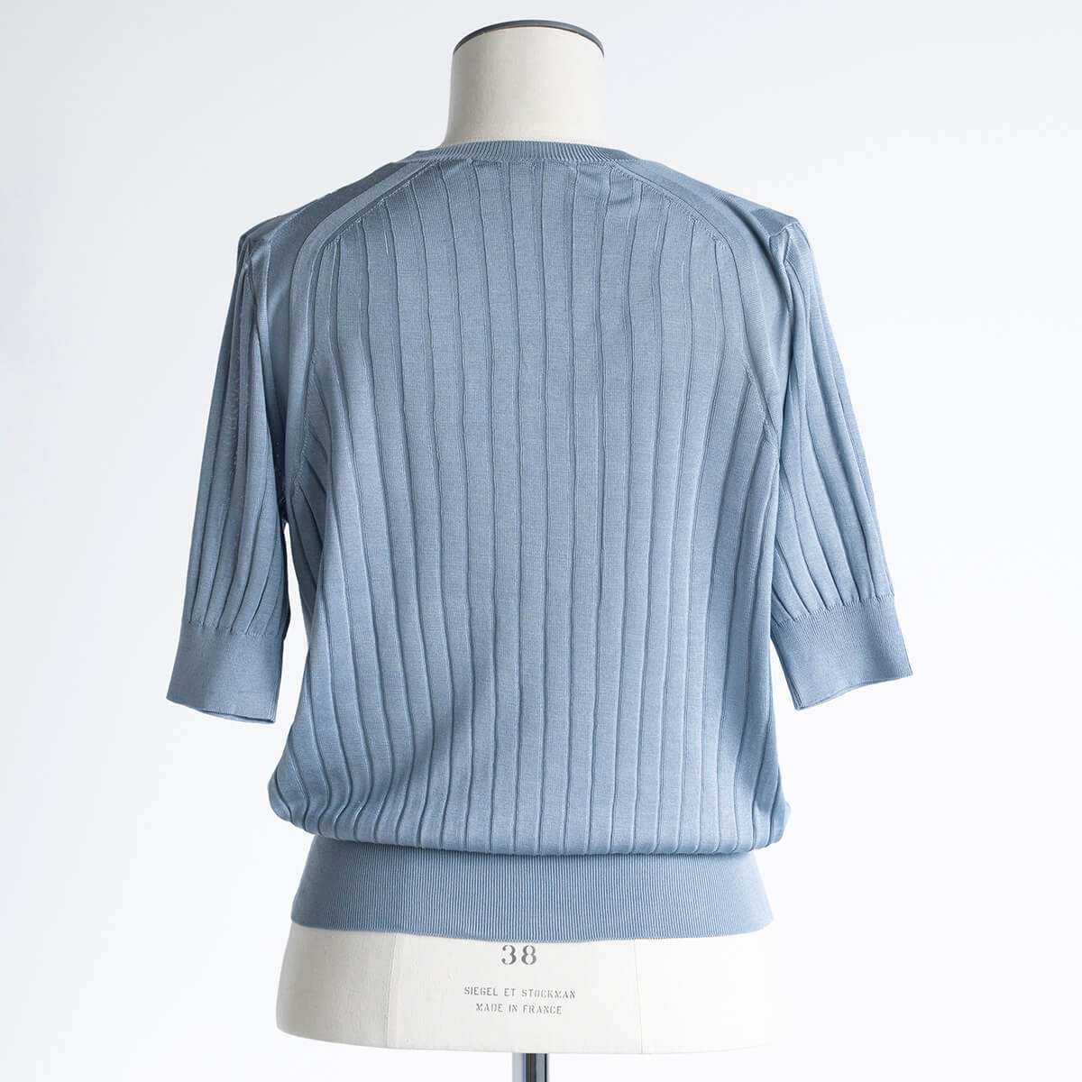 シルクワイドリブ半袖クルーネック(ブルーグレー)/SLOANE