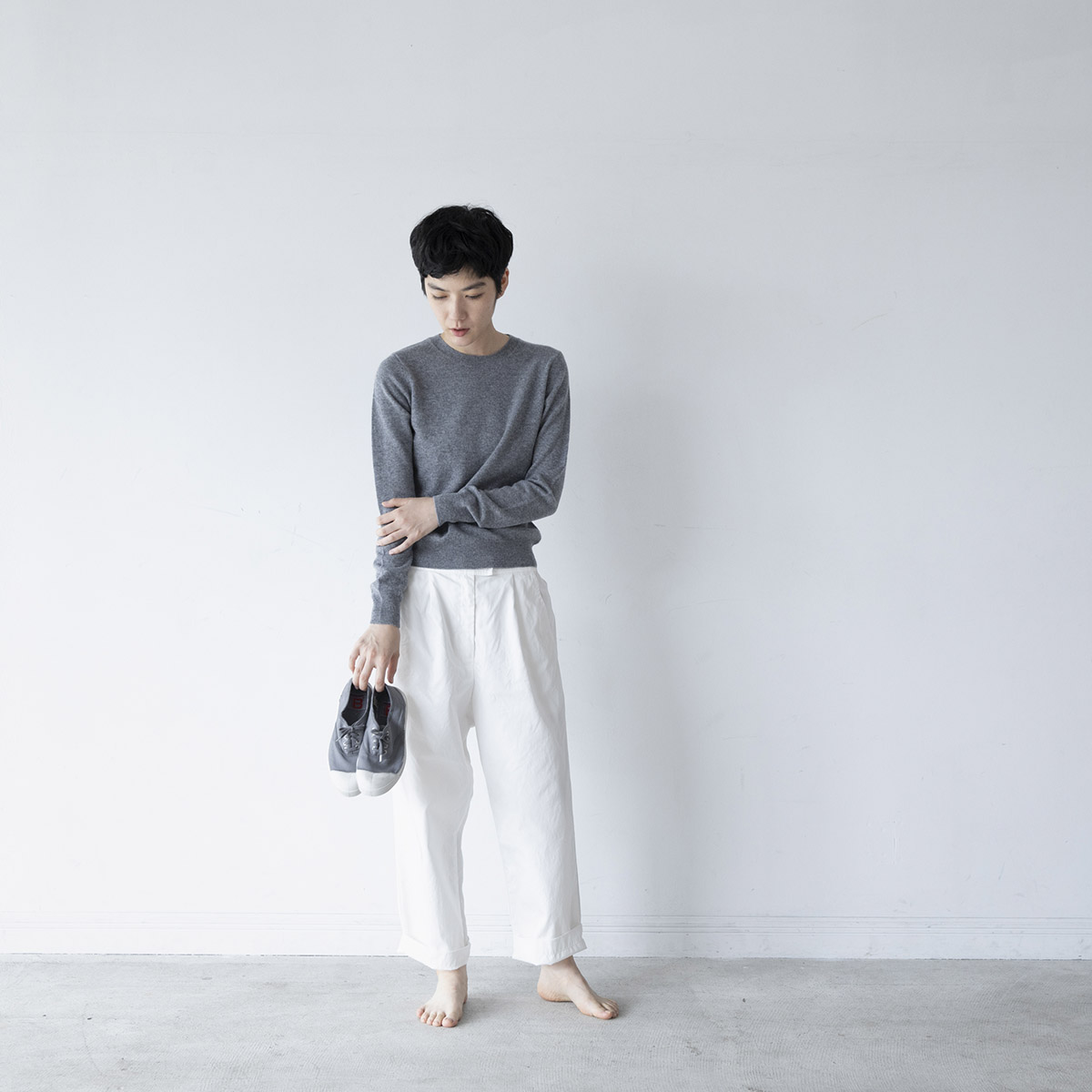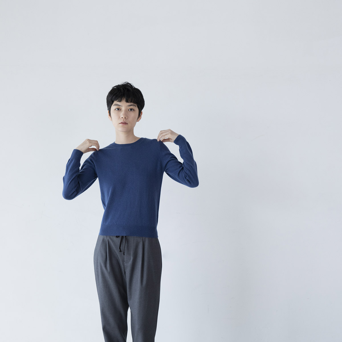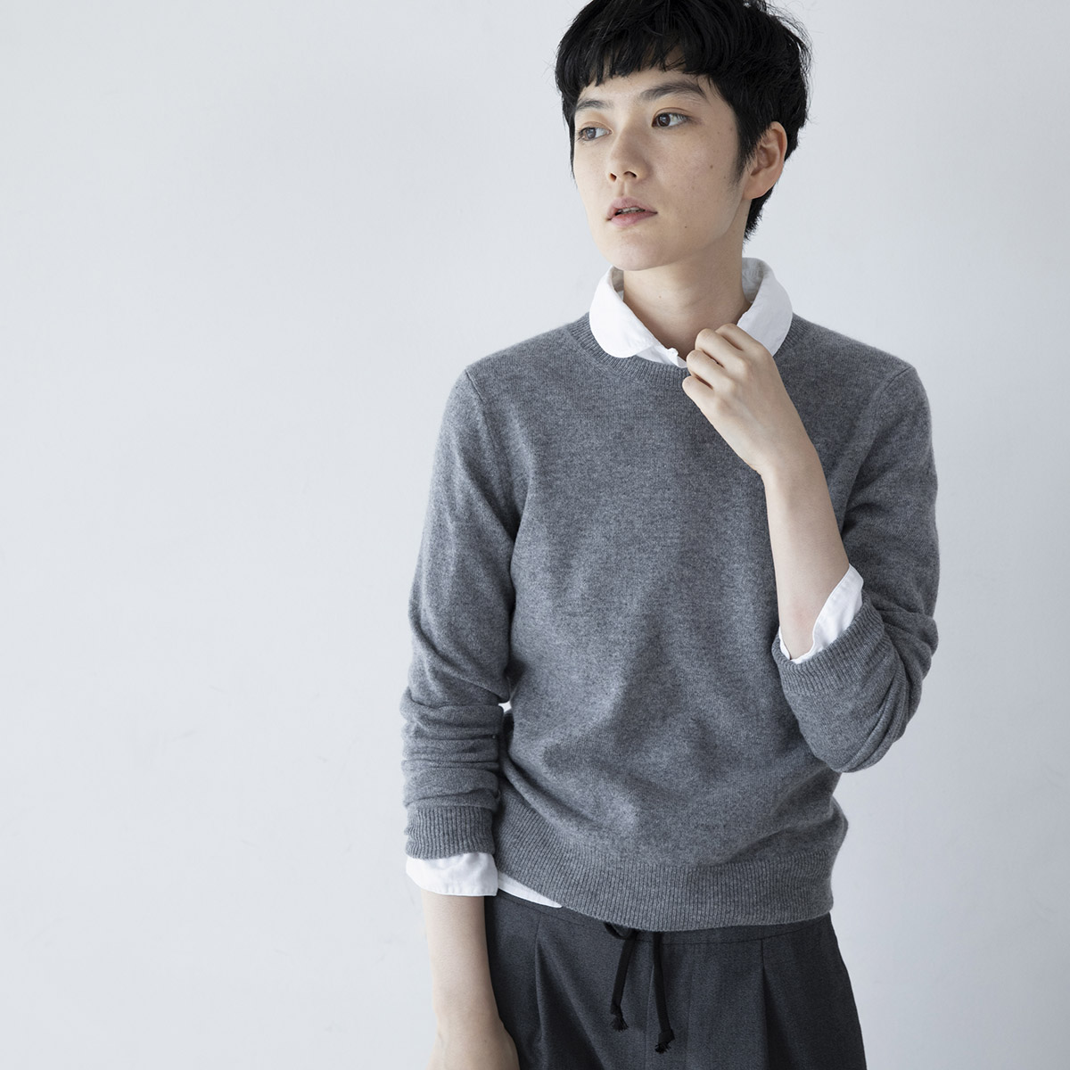 丸首のカシミアセーター