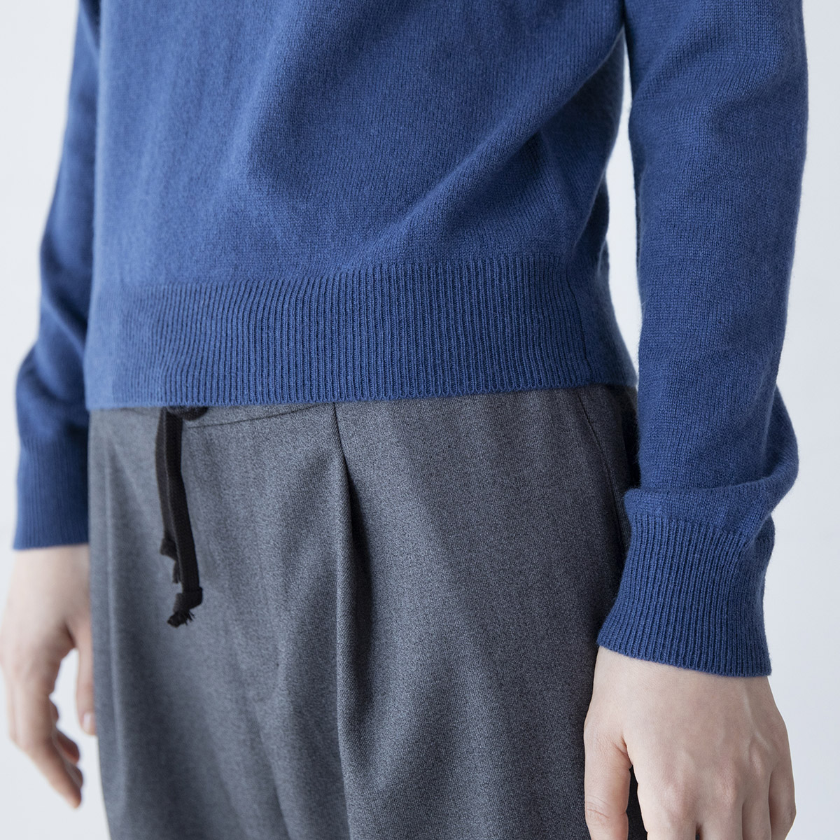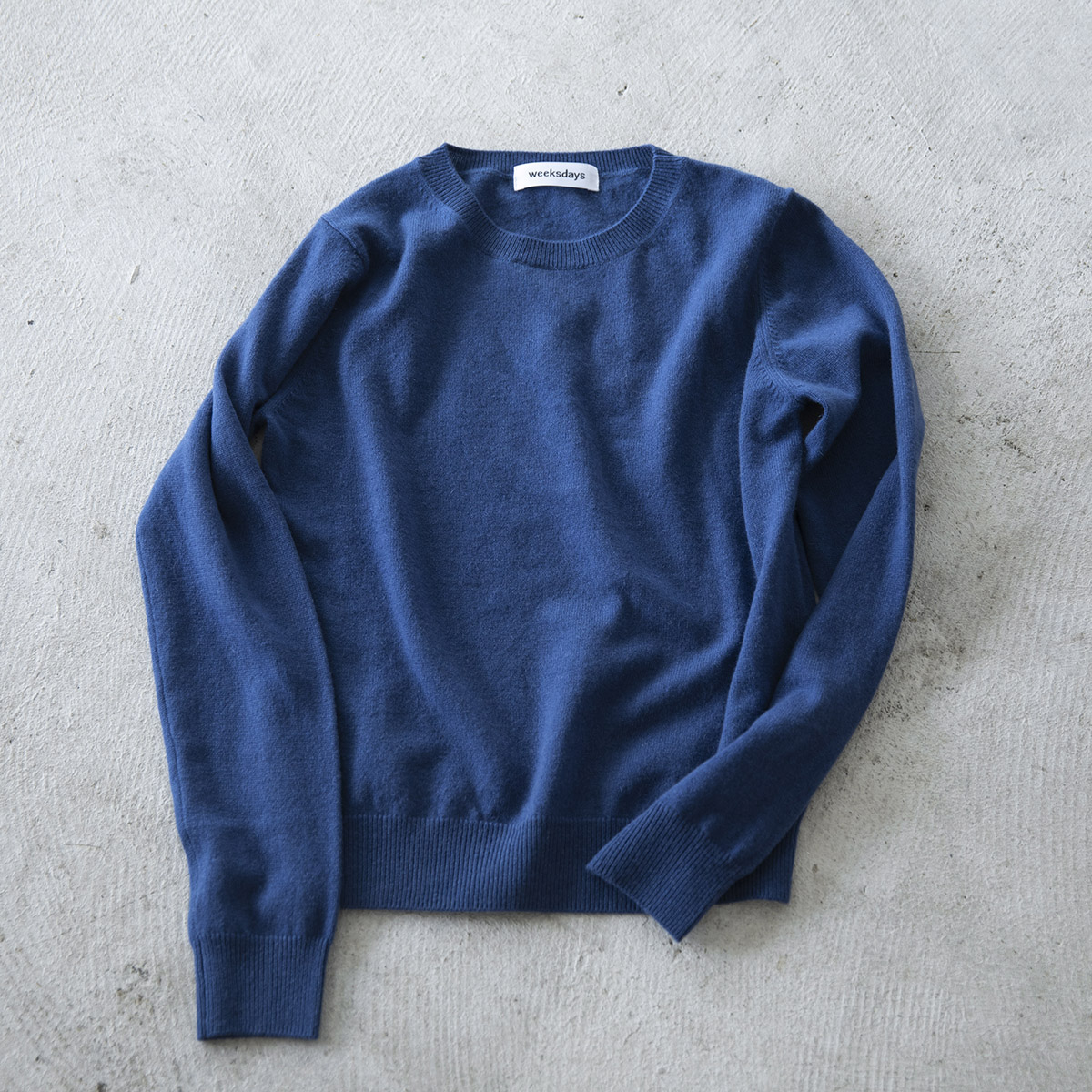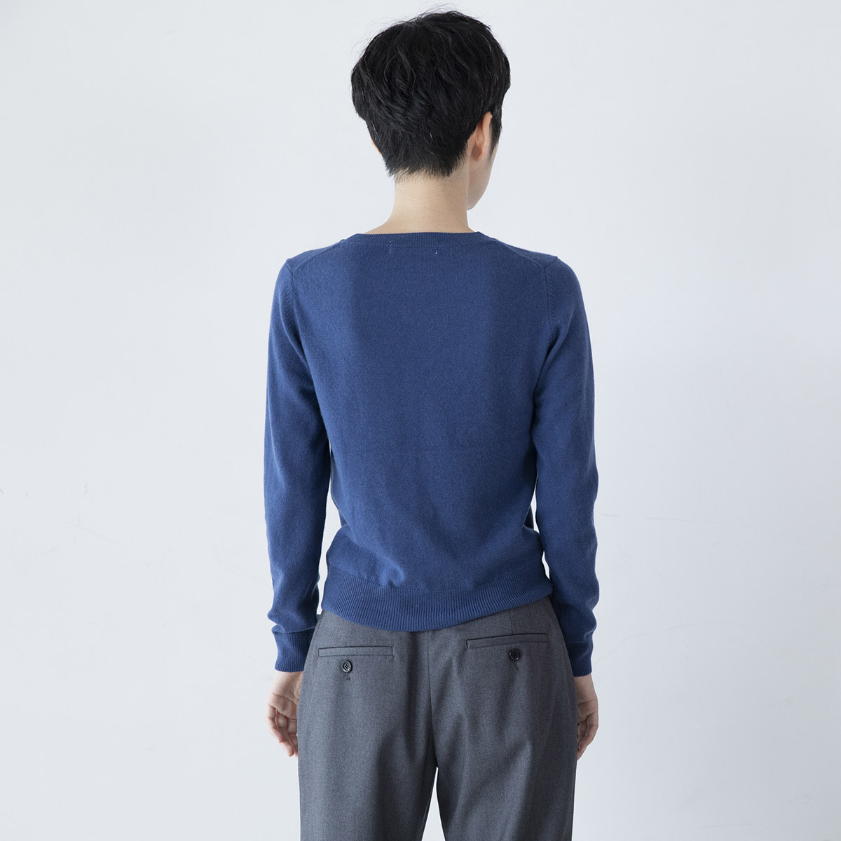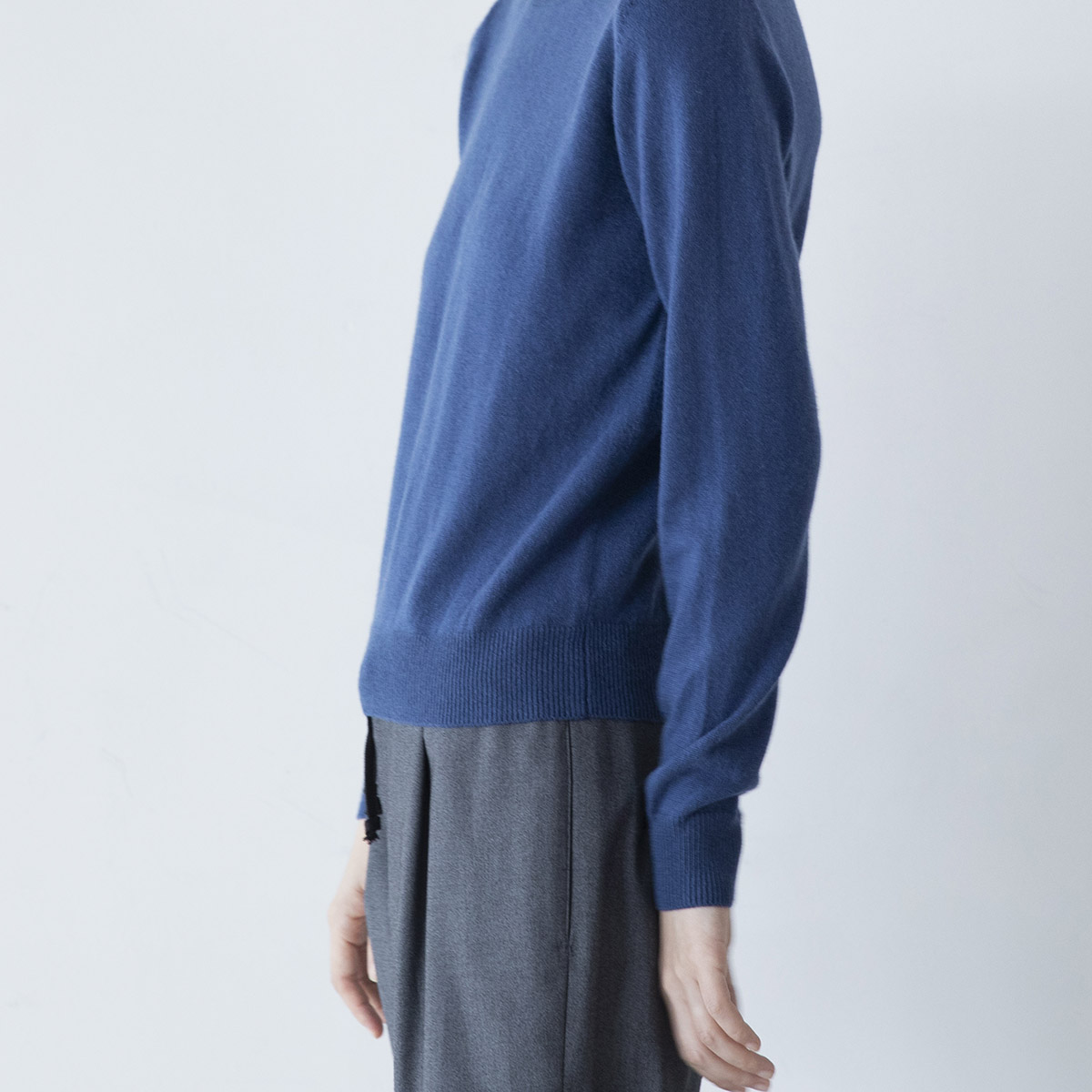 ・丸首のカシミアセーター(プルシアン)