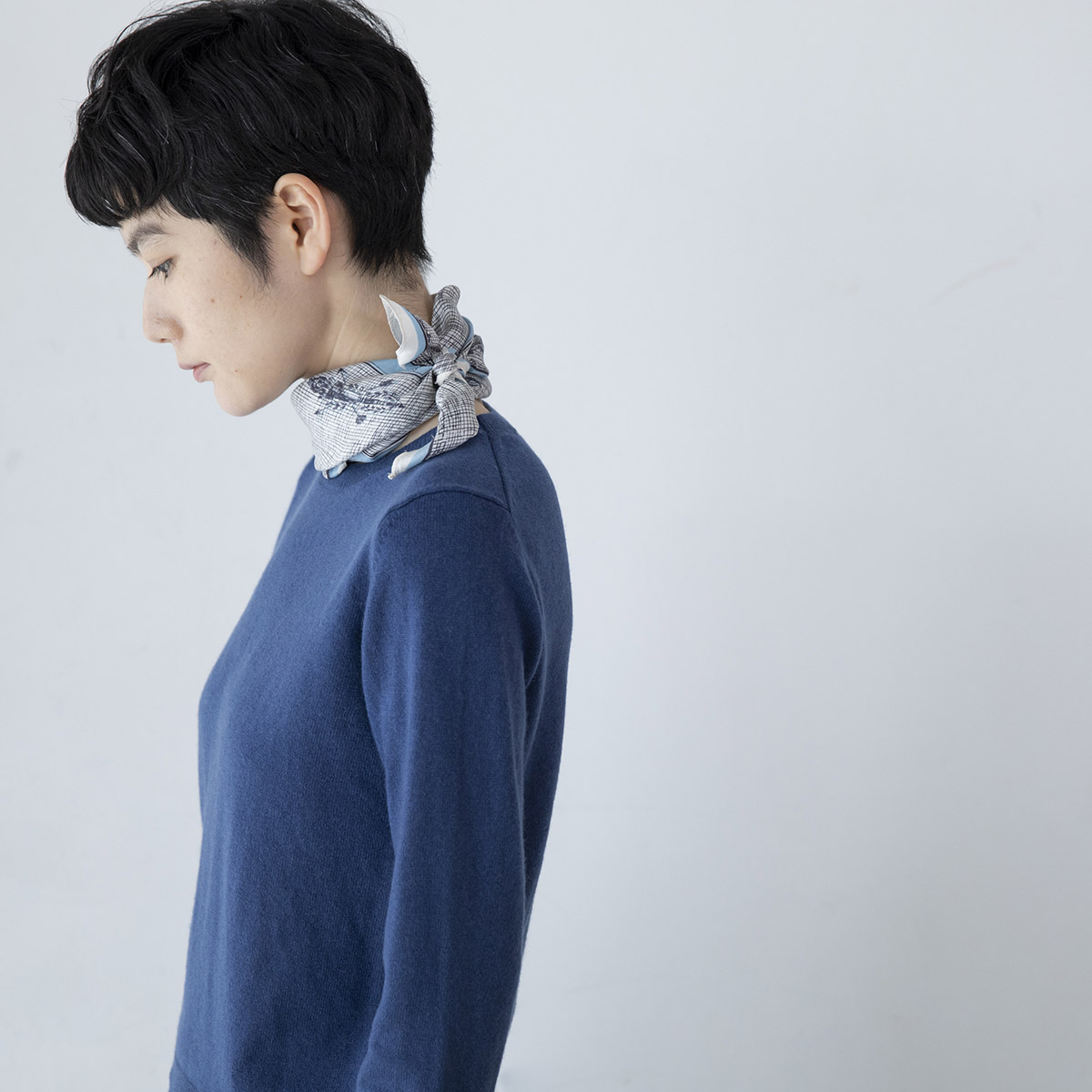 または襟元にスカーフを巻くと、