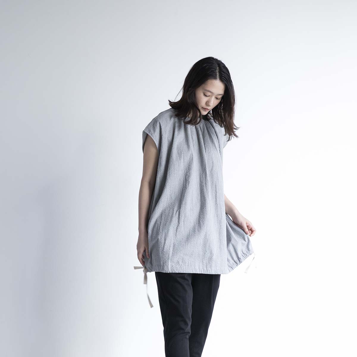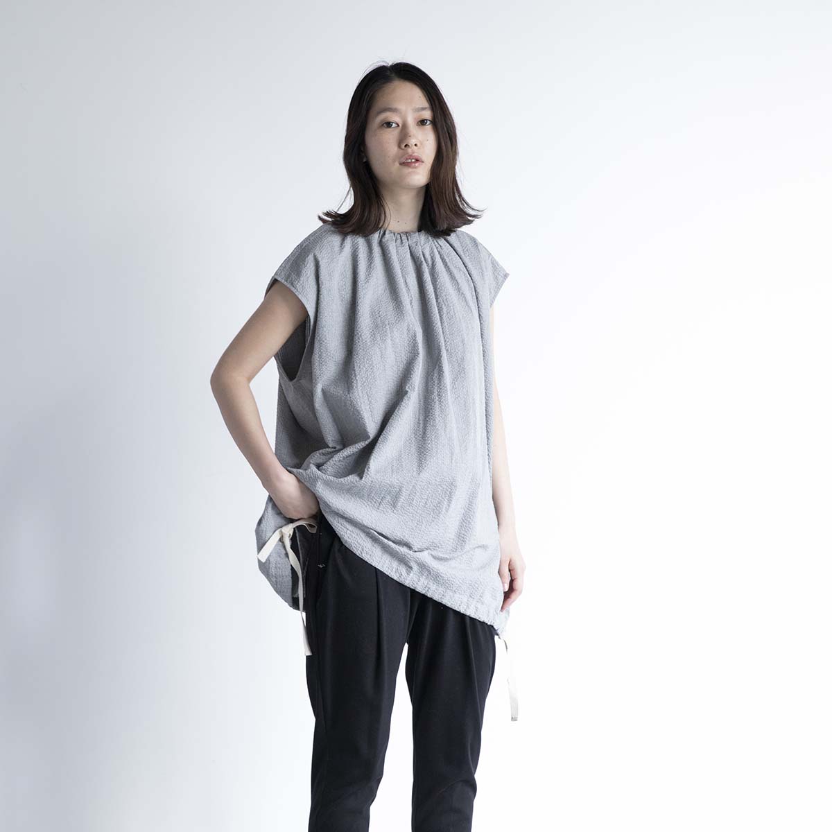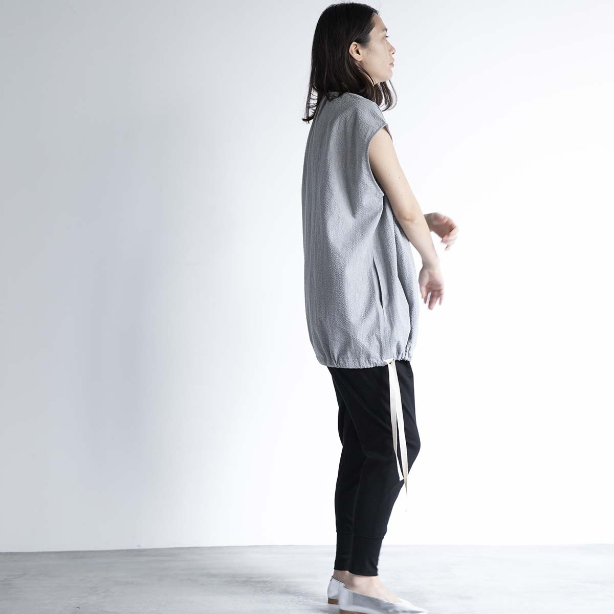 Sleeveless Elastic Neck Top(ライトグレー)/Honnete