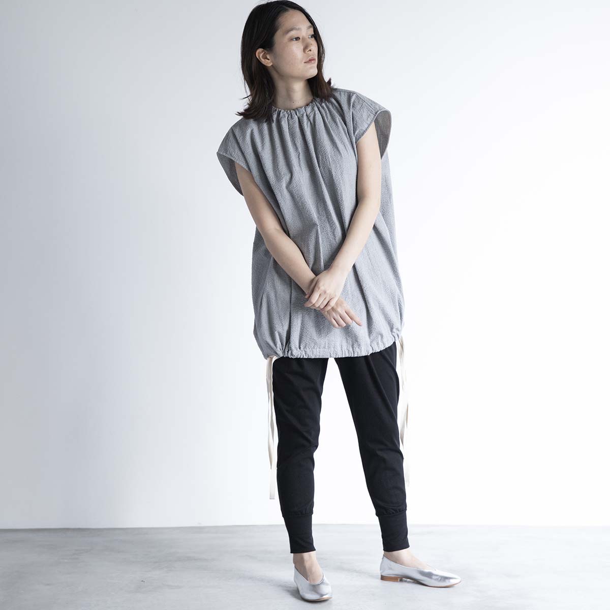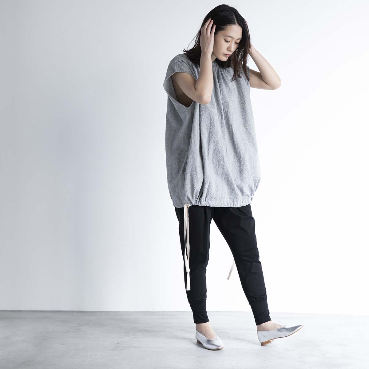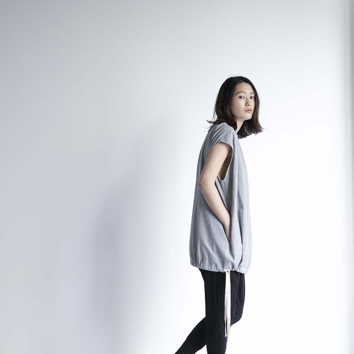 Sleeveless Elastic Neck Top(ライトグレー)/Honnete