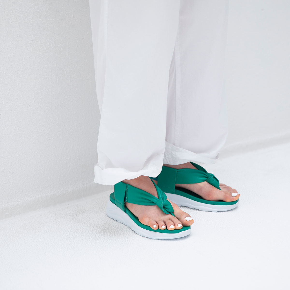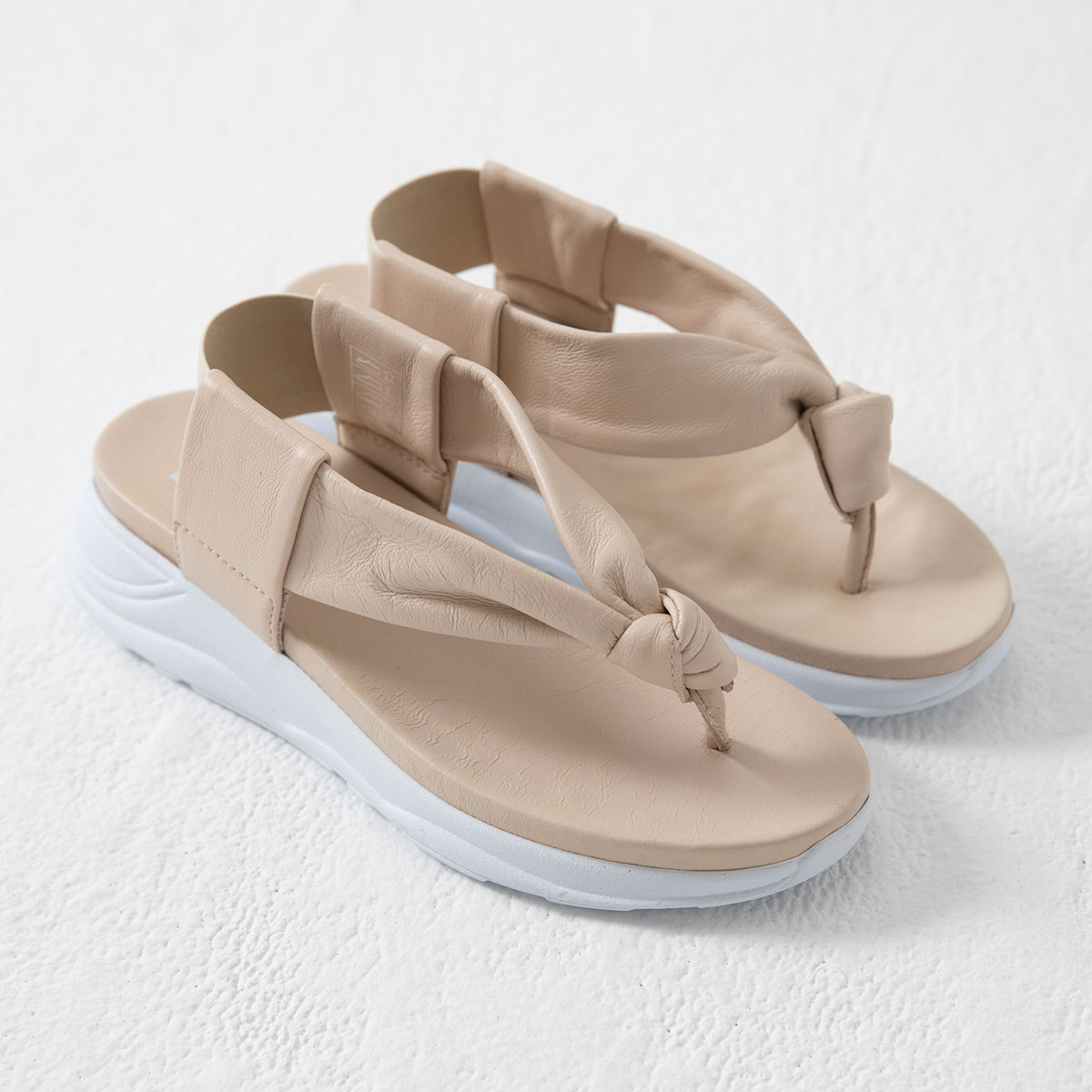 ソフトレザー×太ゴムのトングタイプのアッパーに、