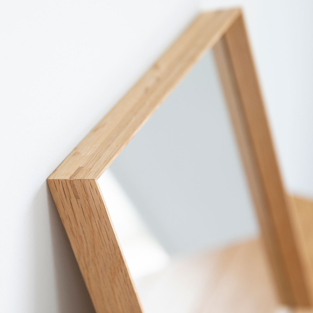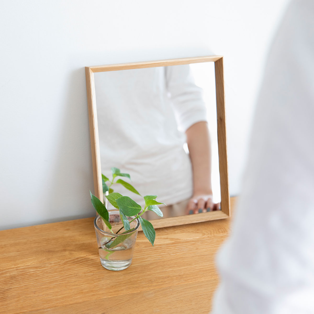 オークの鏡/国産天然木ナラ材、ナラ突板、鏡