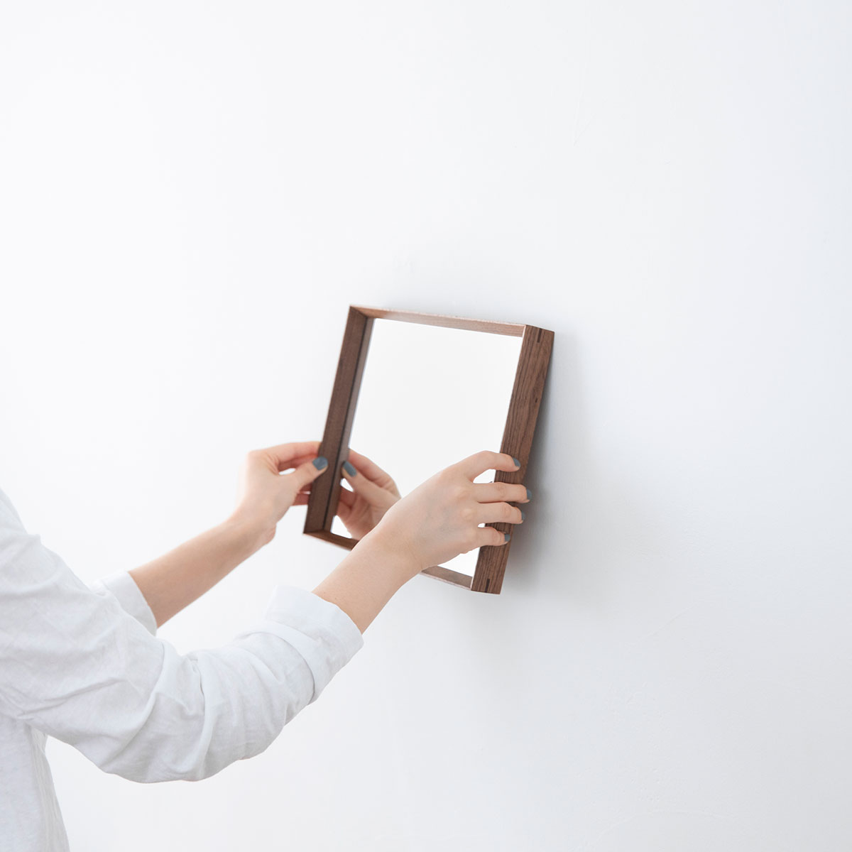 ウォールナットの鏡/天然木ウォールナット材、ウォールナット突板、鏡
