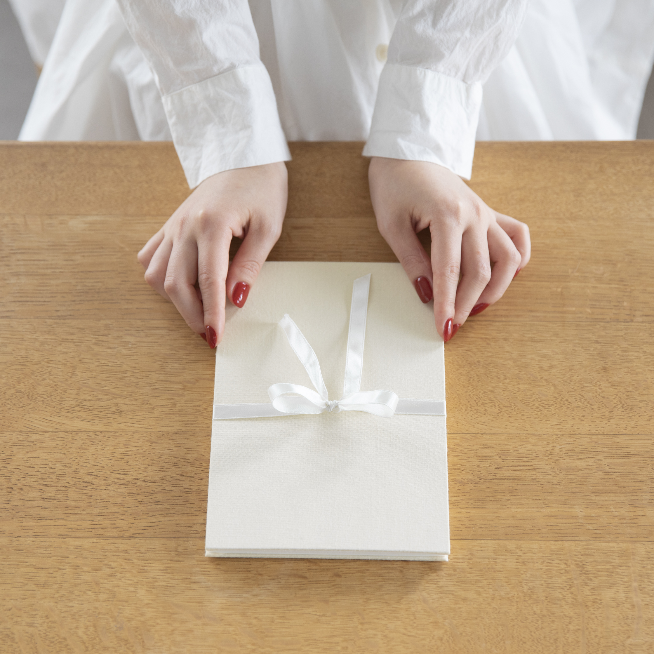 中面は淡いクリーム色の紙をつかった蛇腹折り。