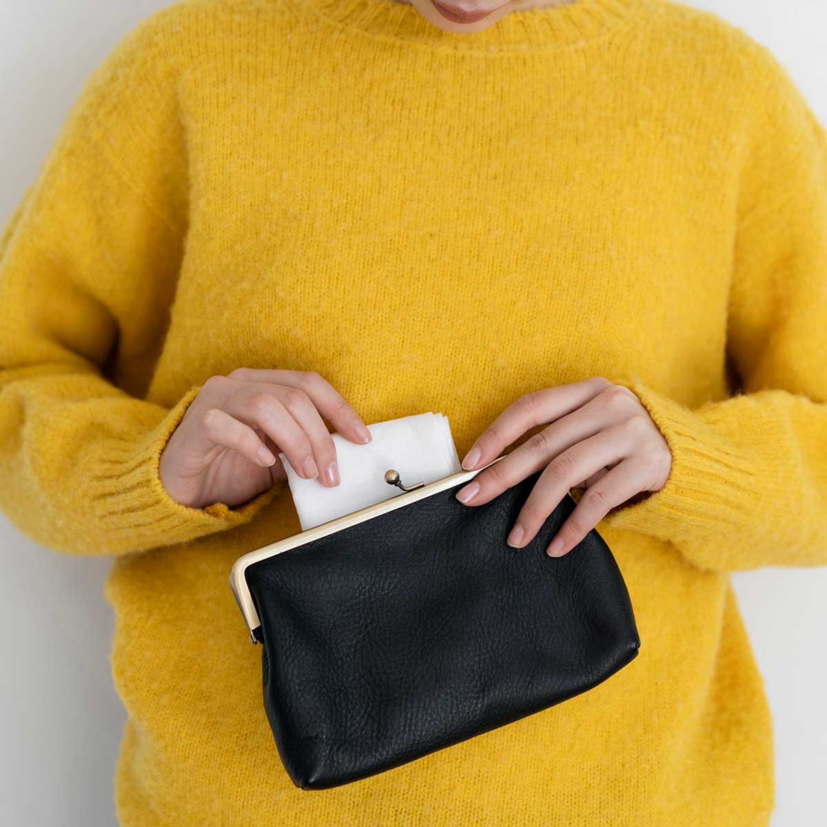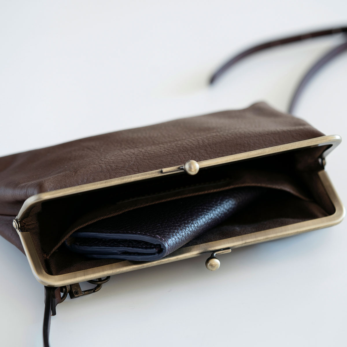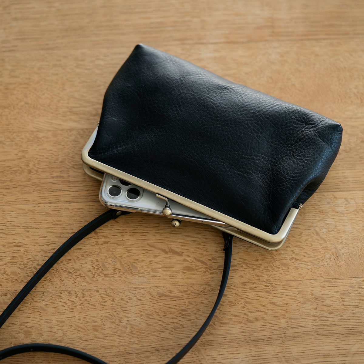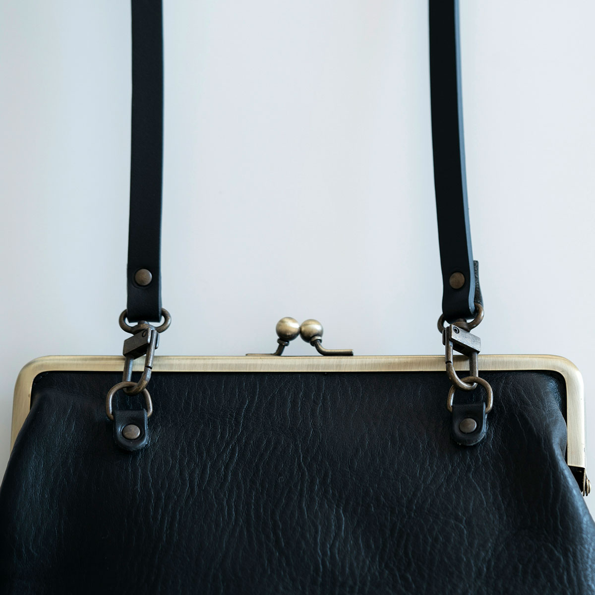 がまぐちの肩掛けバッグ。