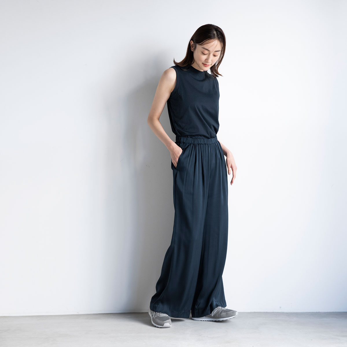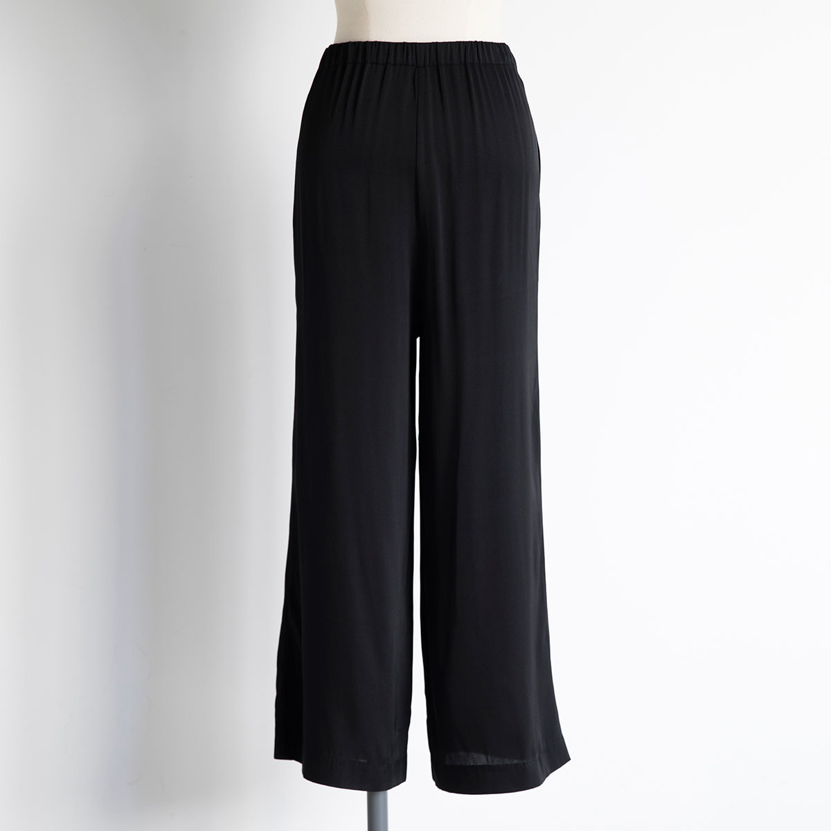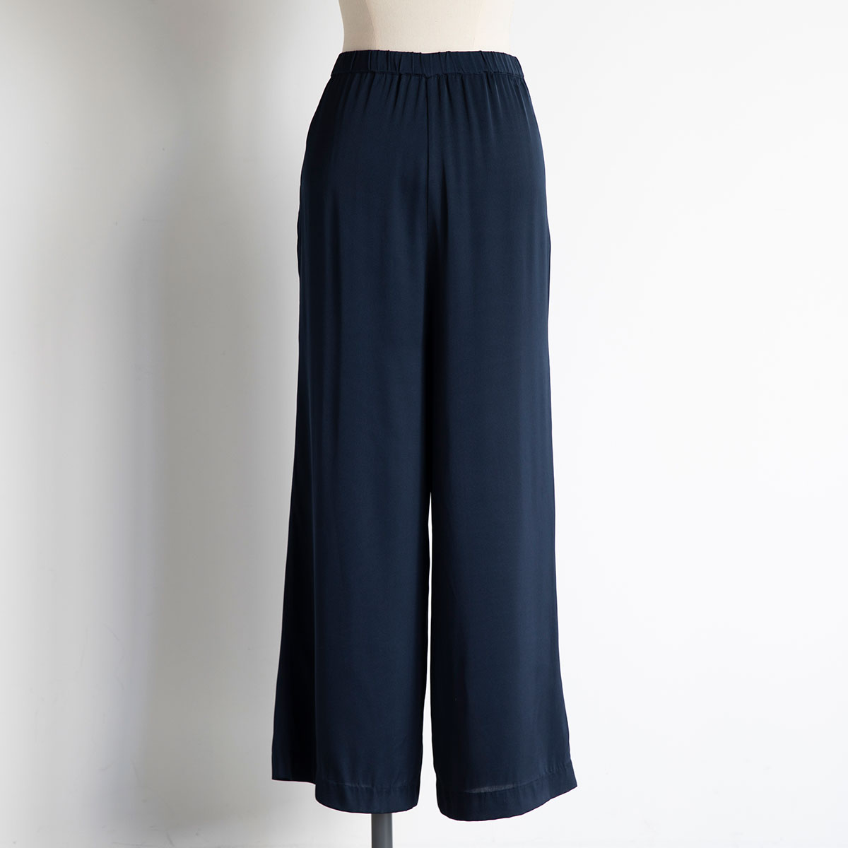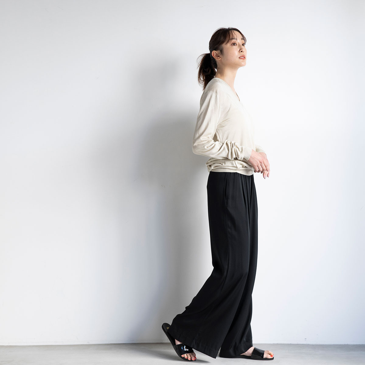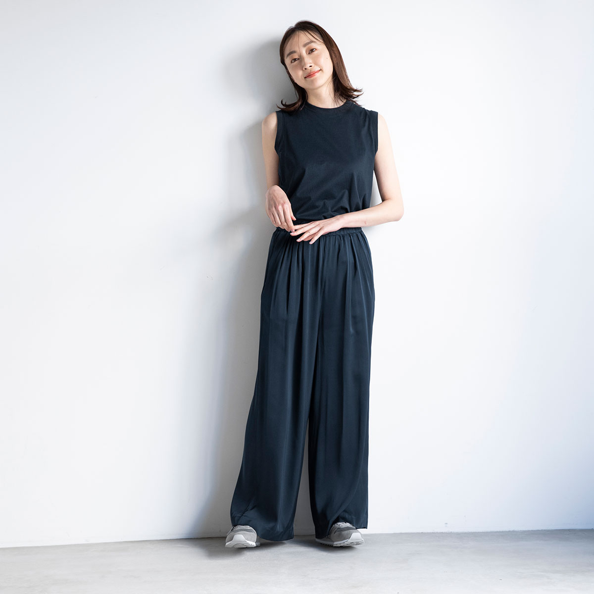 シルク90%、ストレッチサテン織物のワイドパンツです。