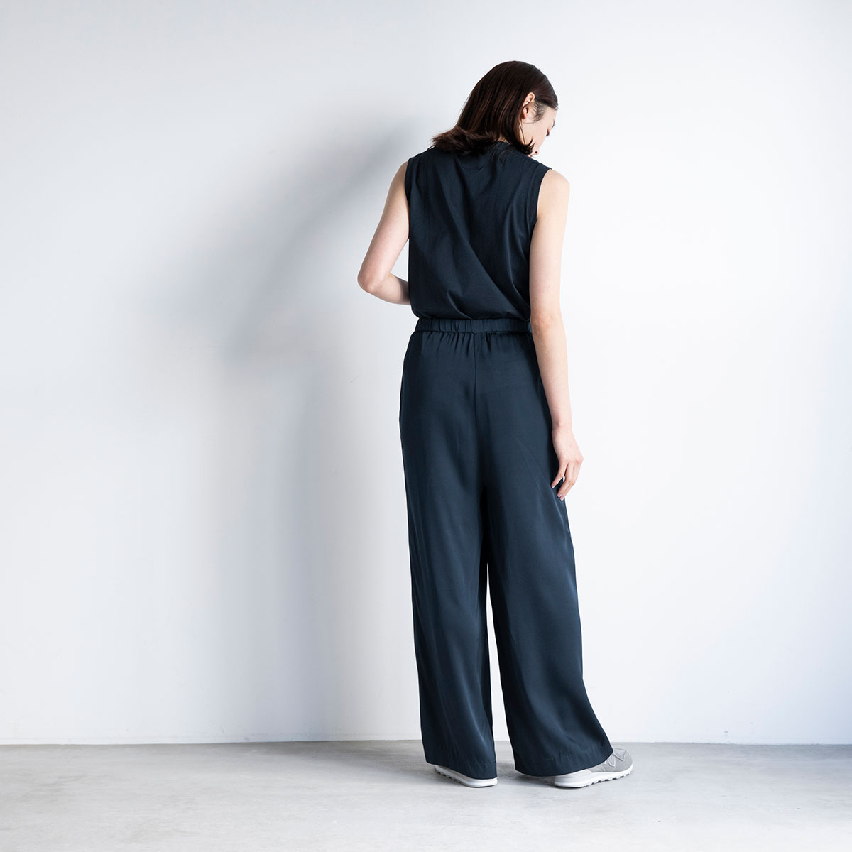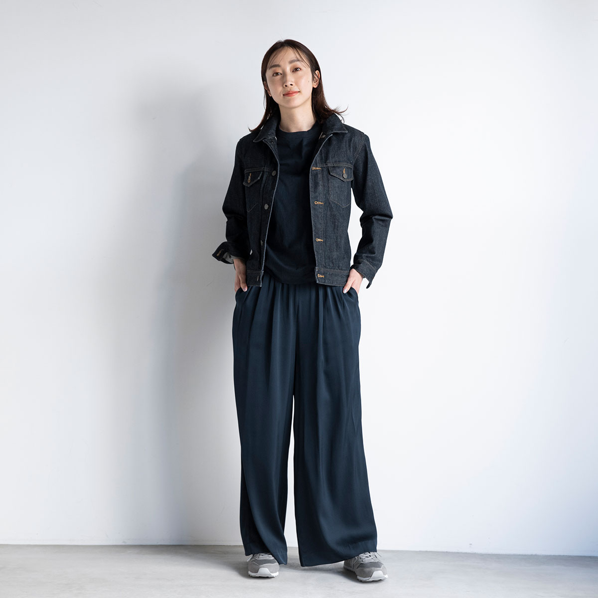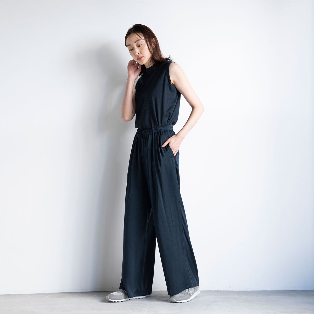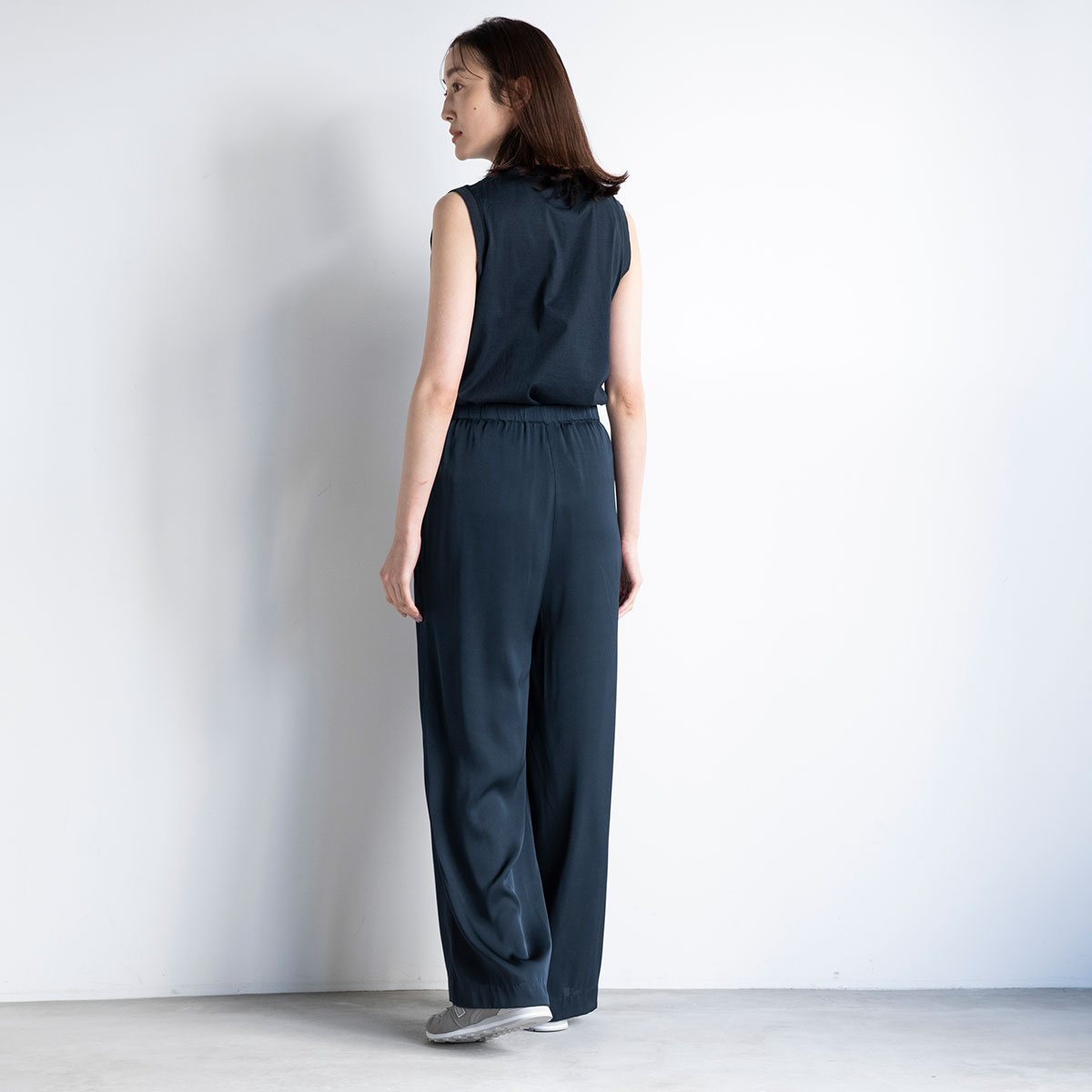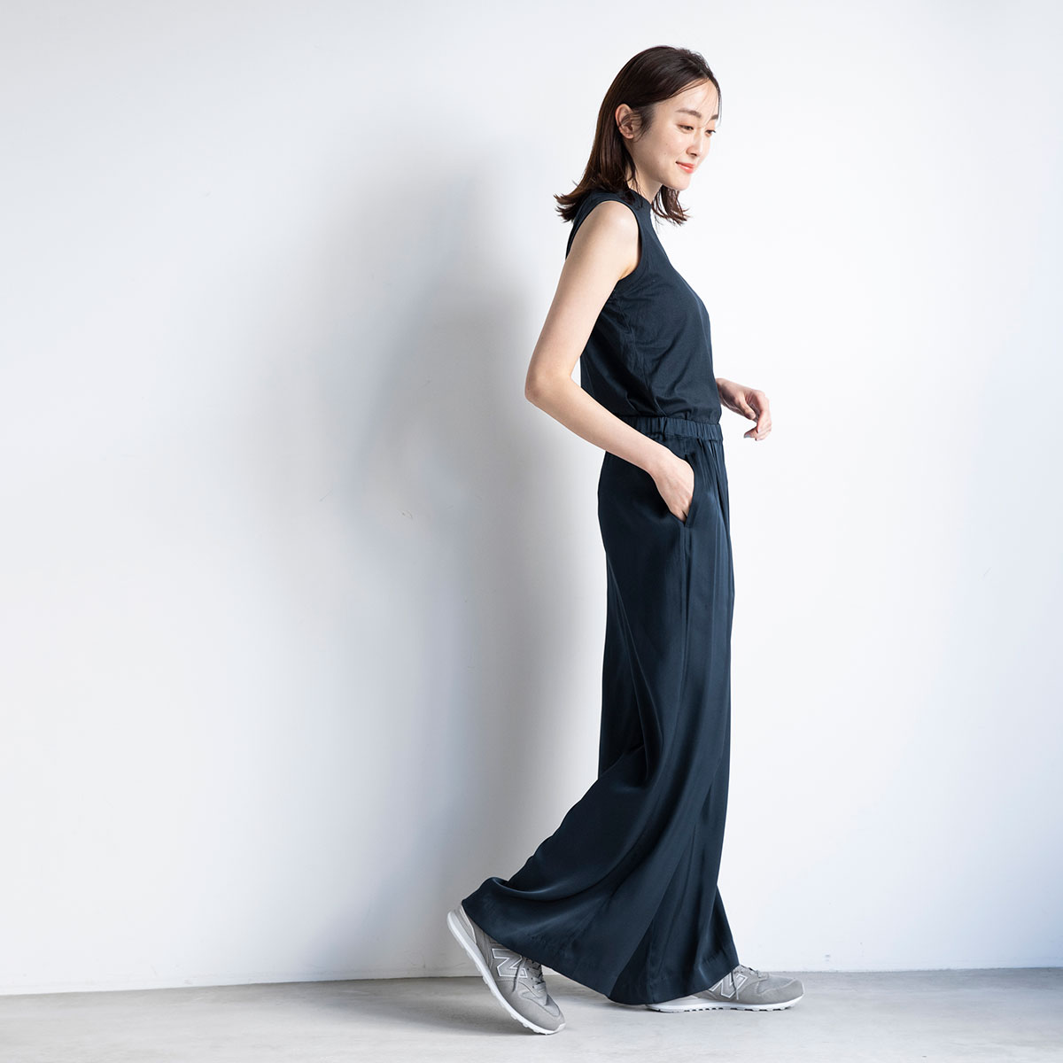 シルク90%、ストレッチサテン織物のワイドパンツです。