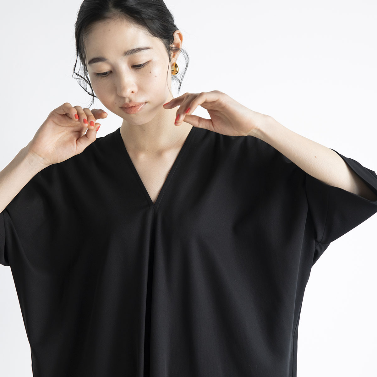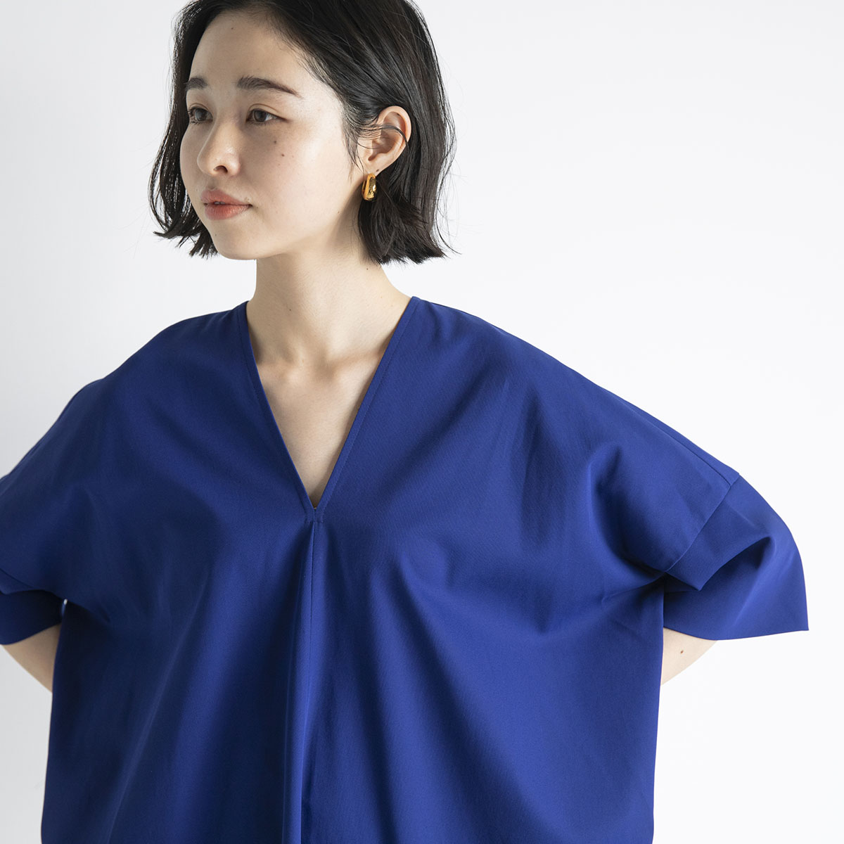 前身頃がゆるいバイヤスになっていたり、