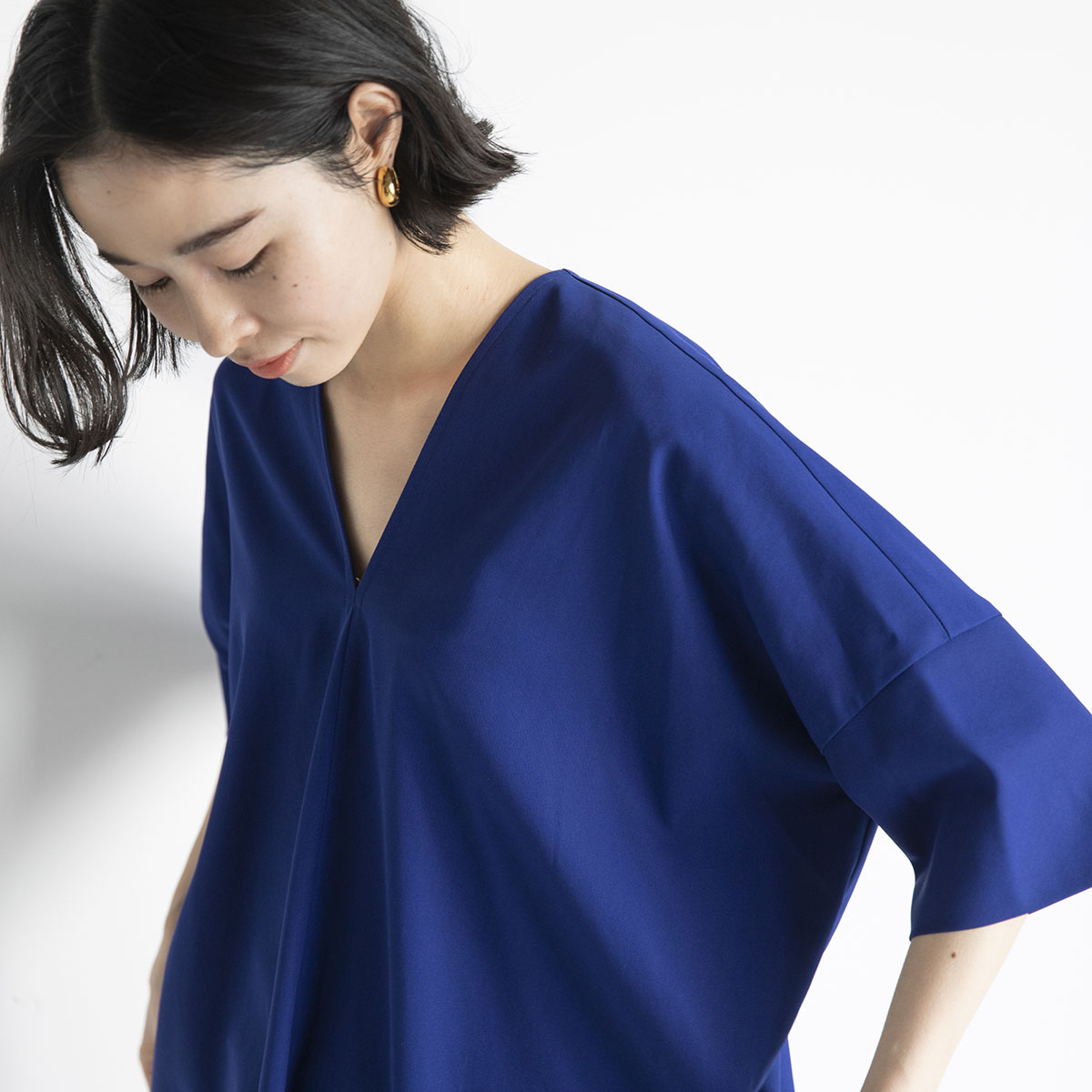 小さなVネックのきれいな首元、