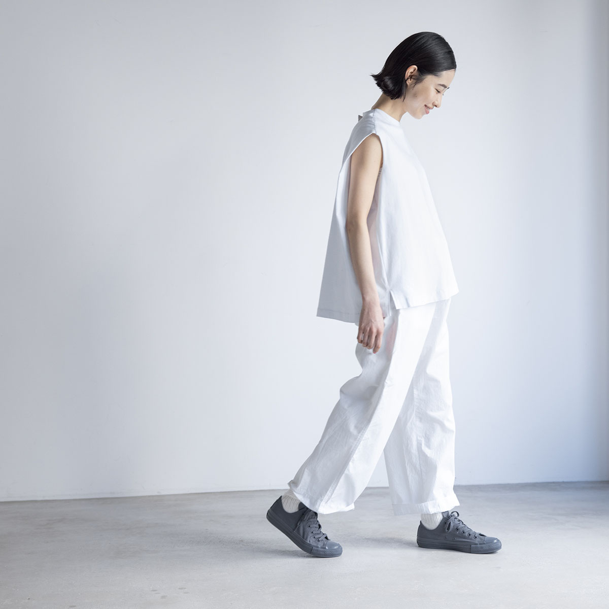 ワイドパンツや、センタープリーツのパンツと合わせて。