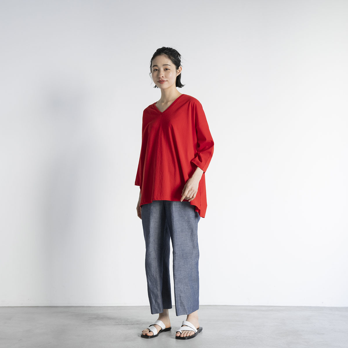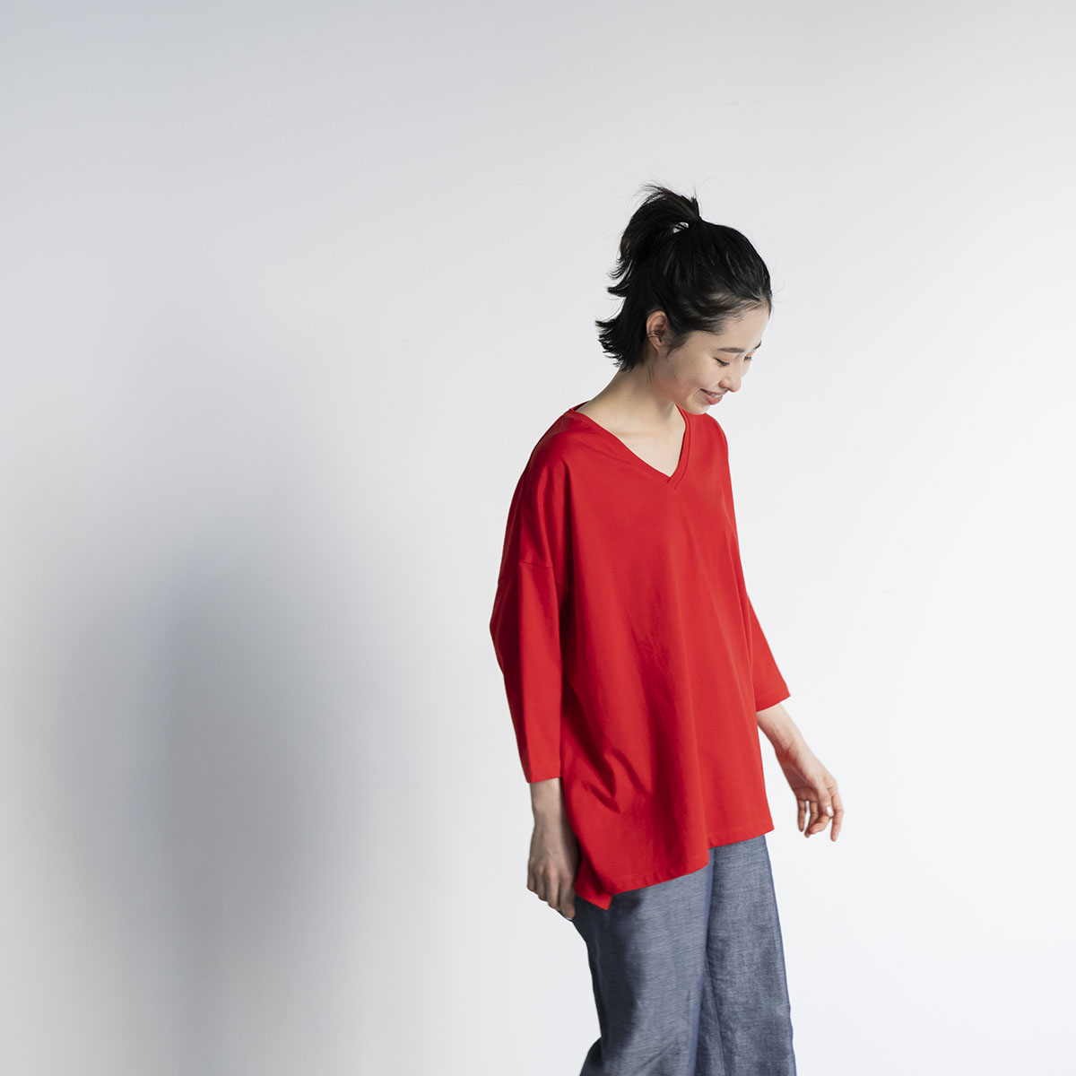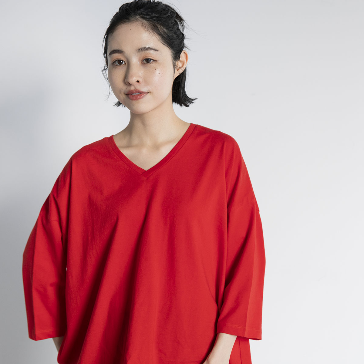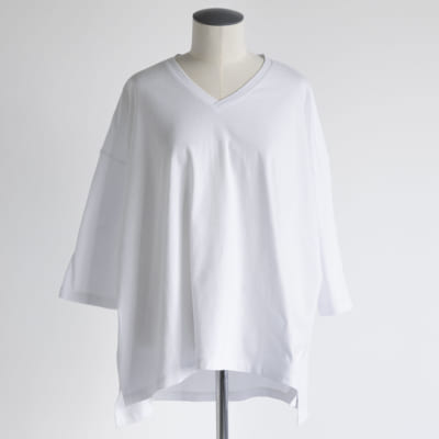 Vネック七分丈Tシャツ