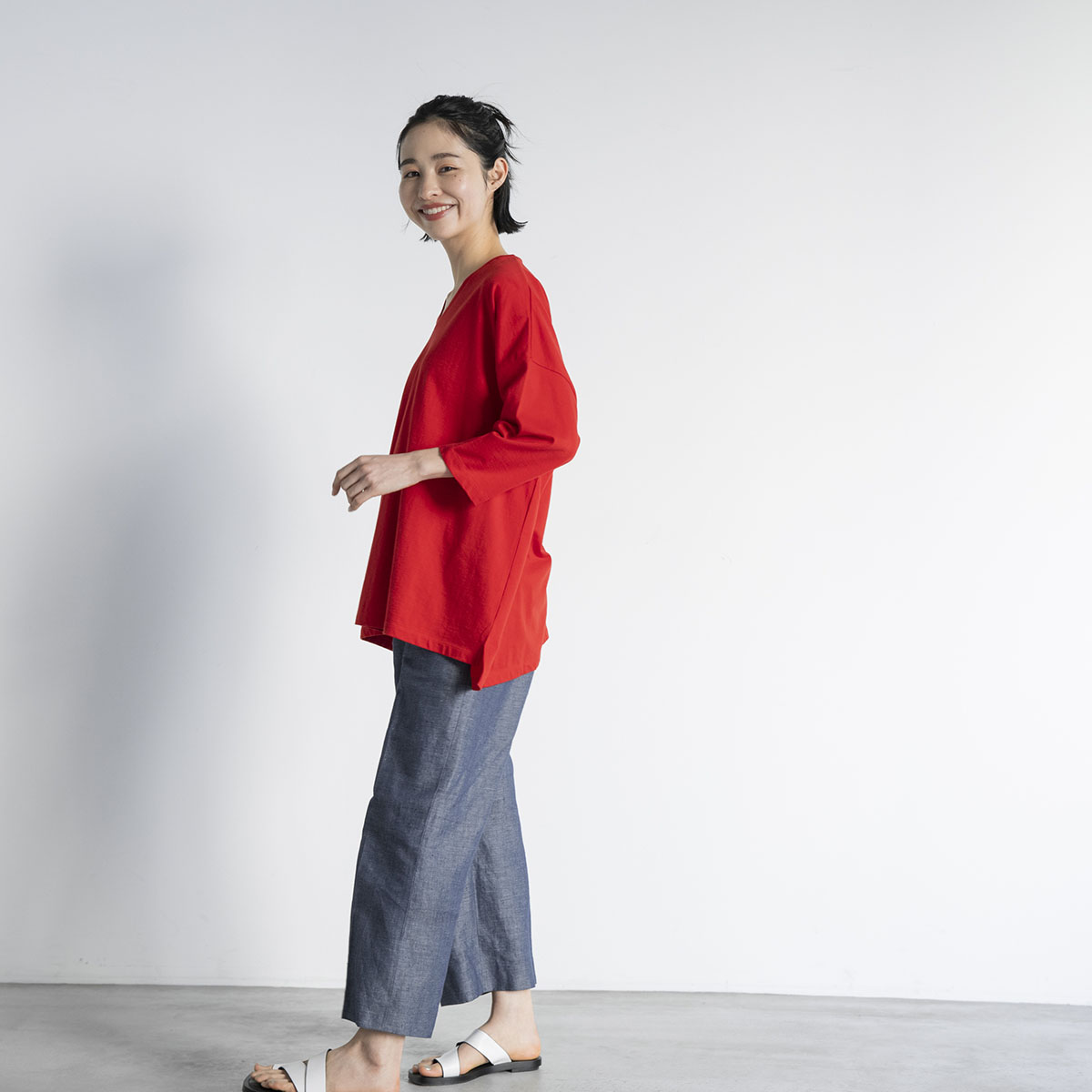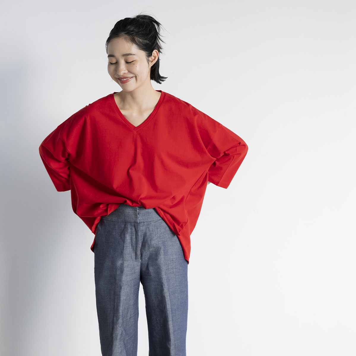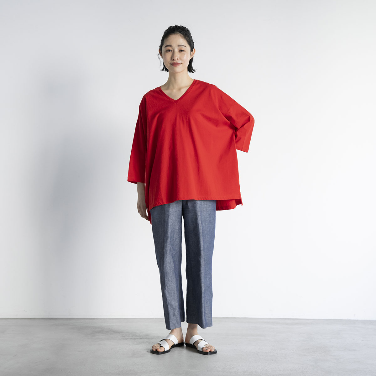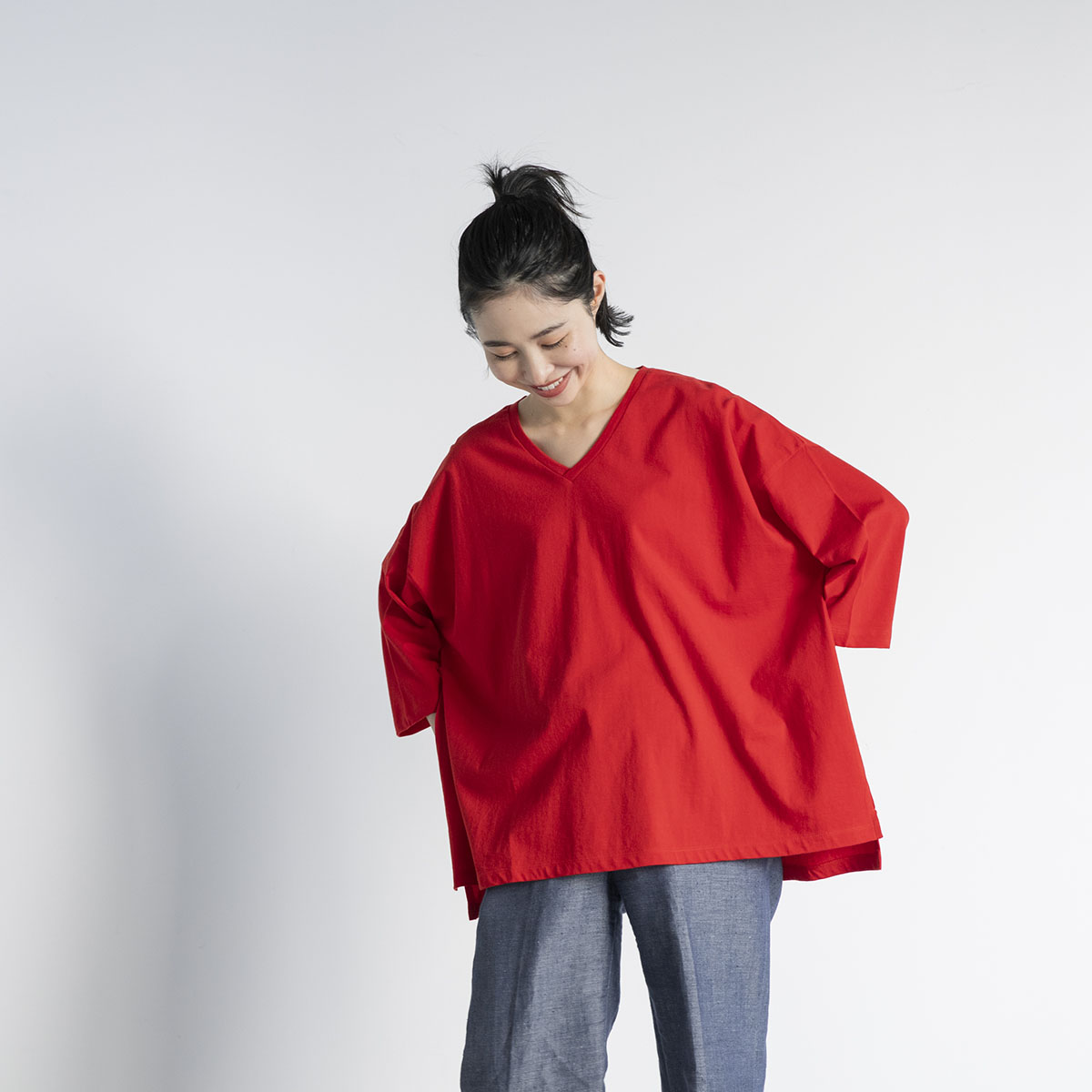 Vネック七分丈Tシャツ