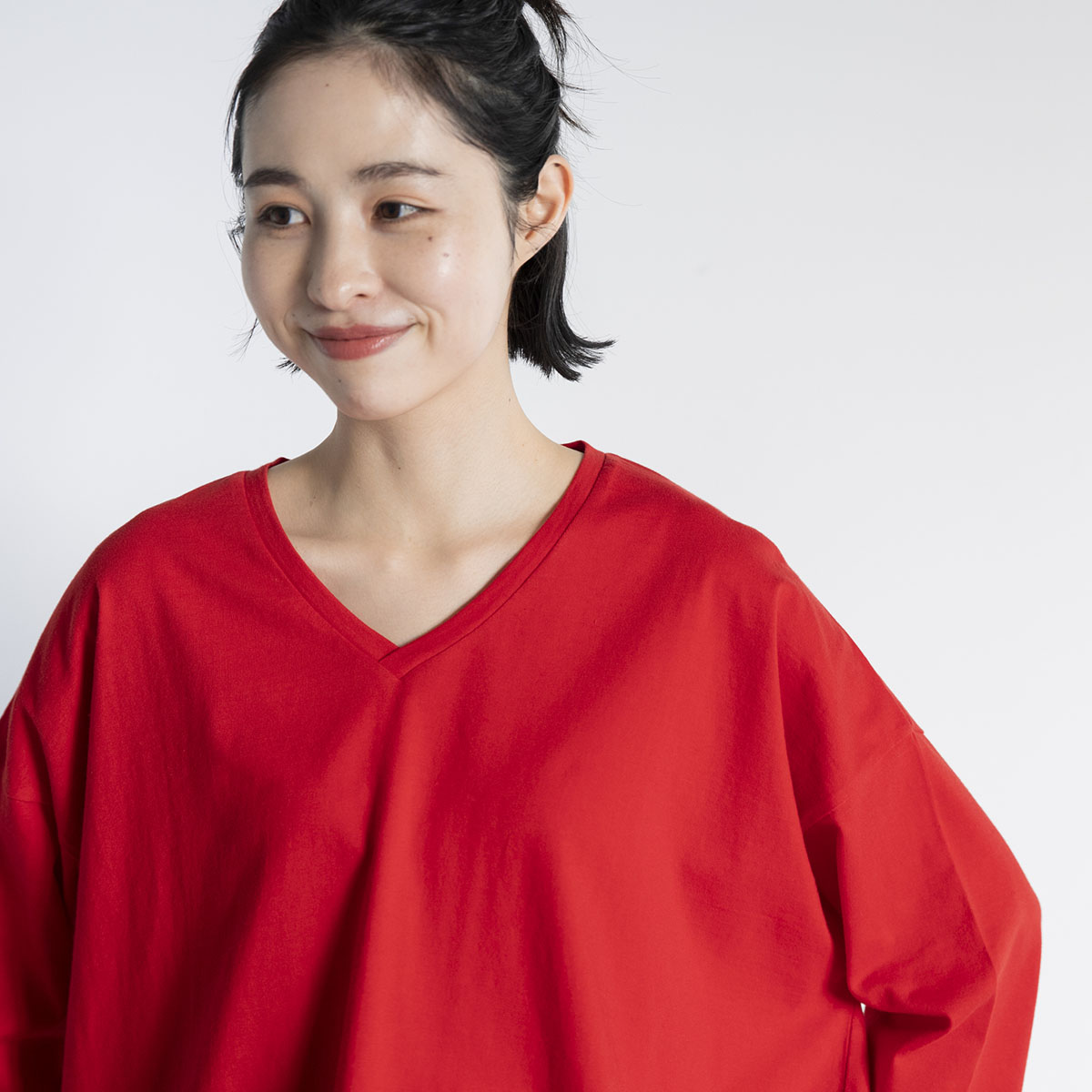Vネック七分丈Tシャツ(レッド)/STAMP AND DIARY