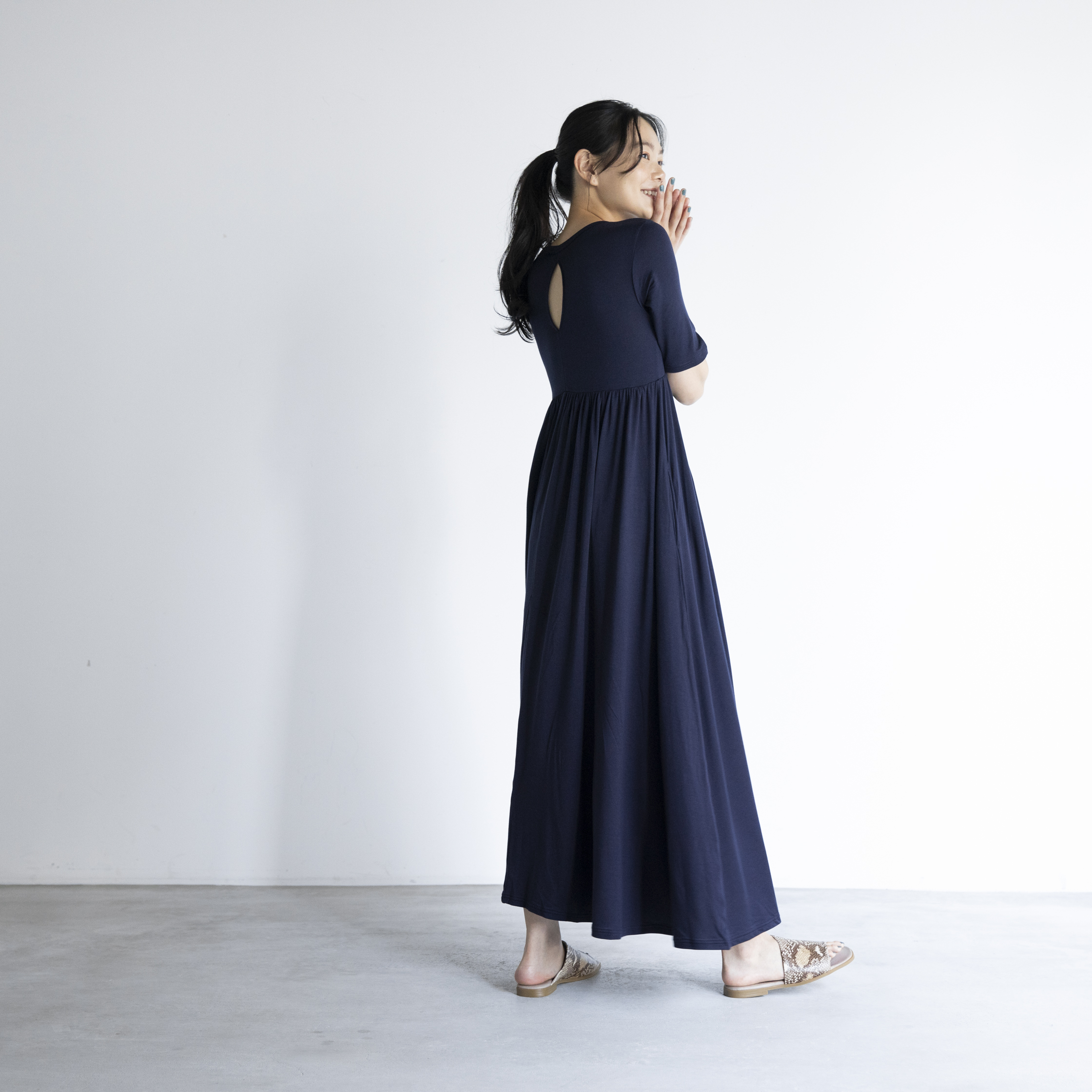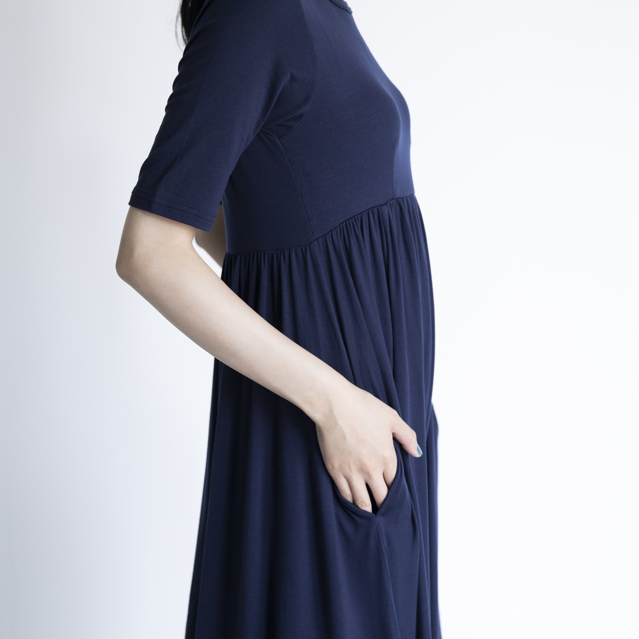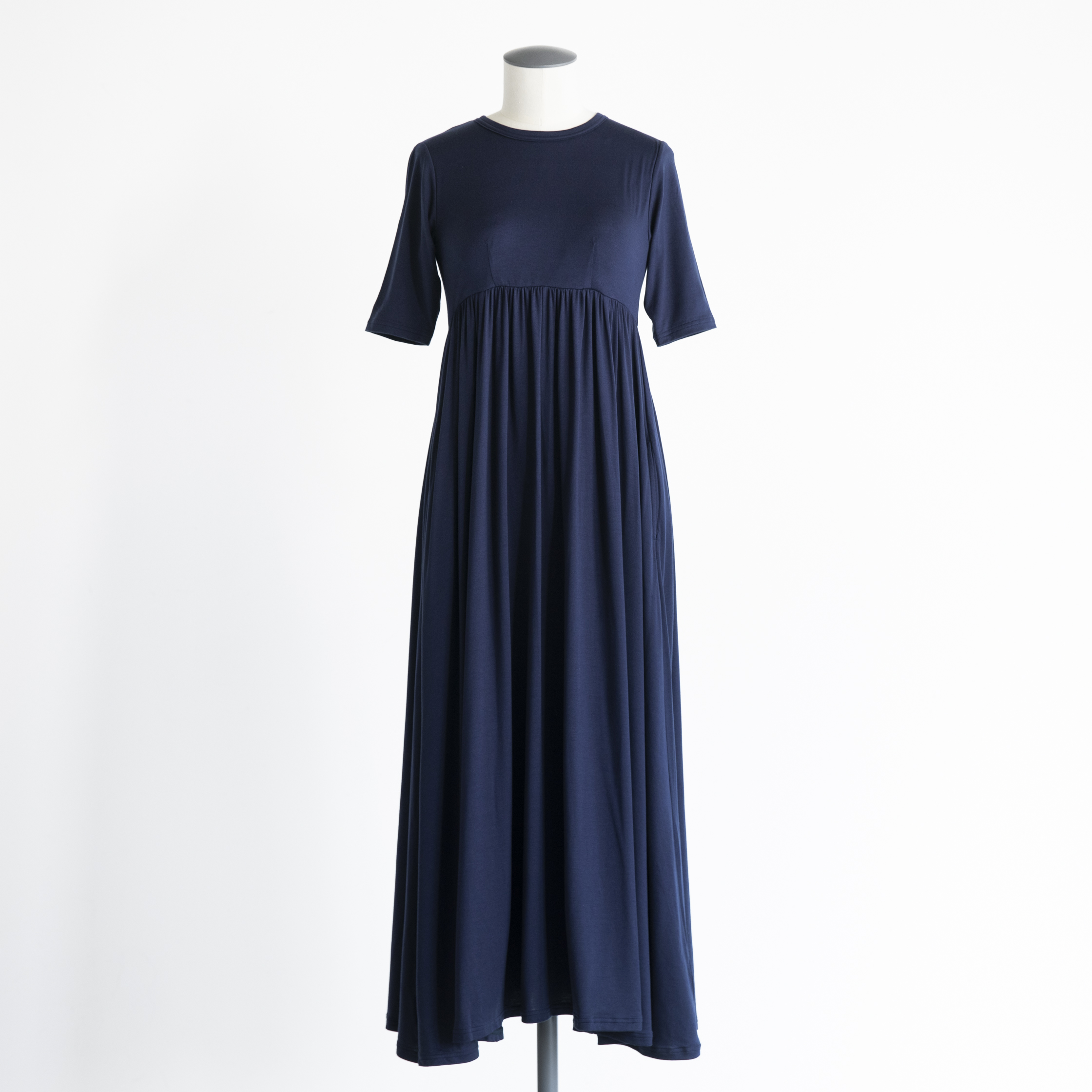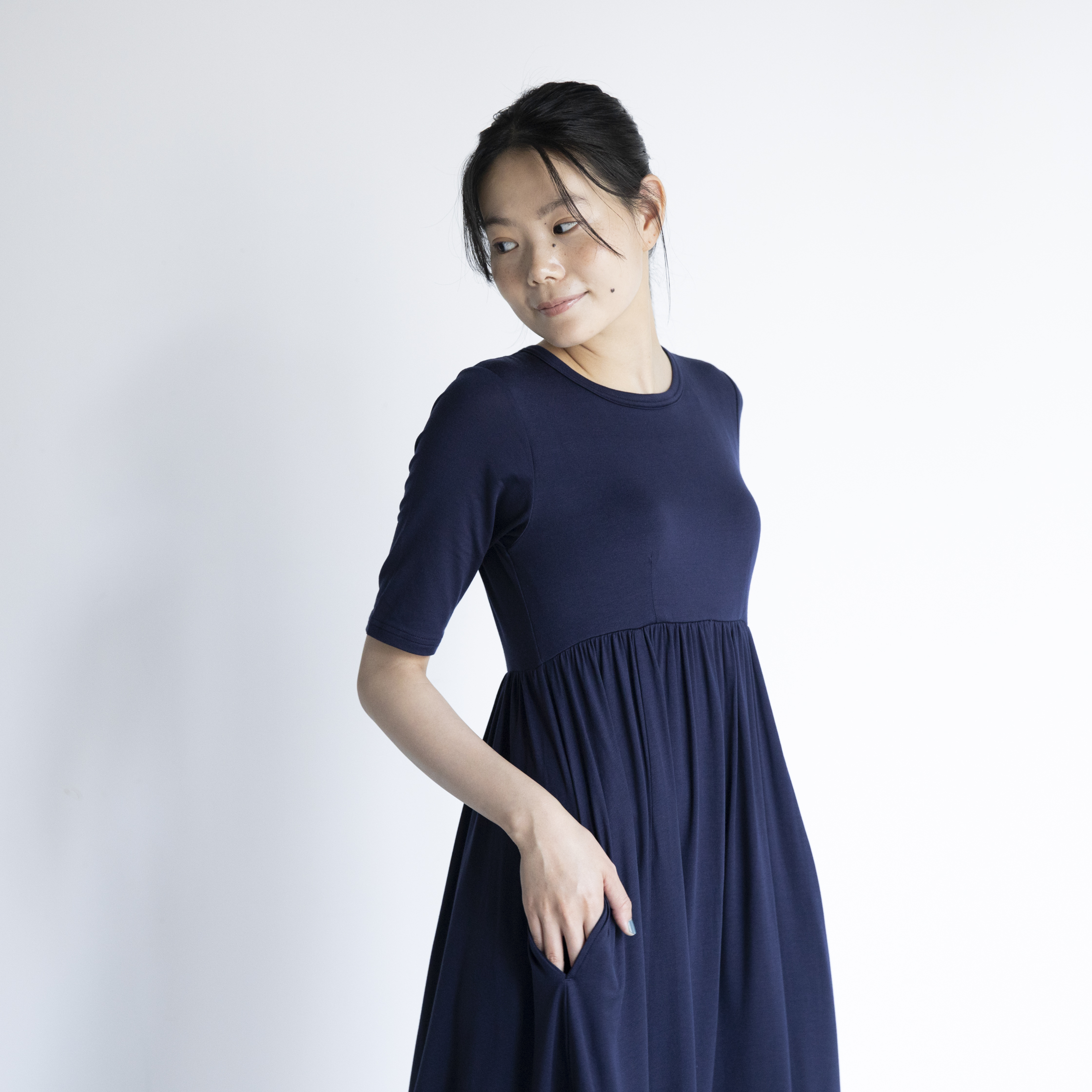 カップ付五分袖ワンピース(ネイビー・M)/cohan