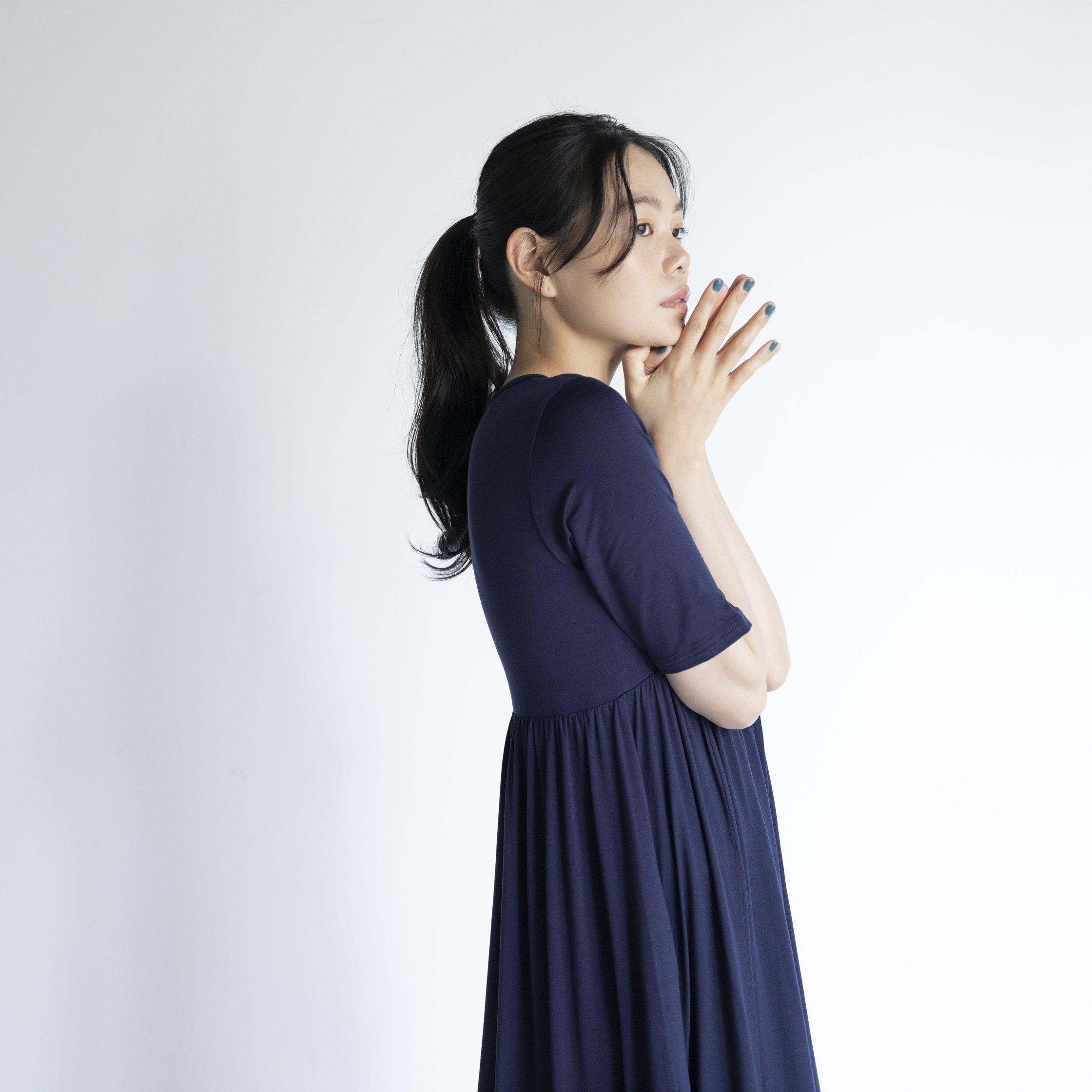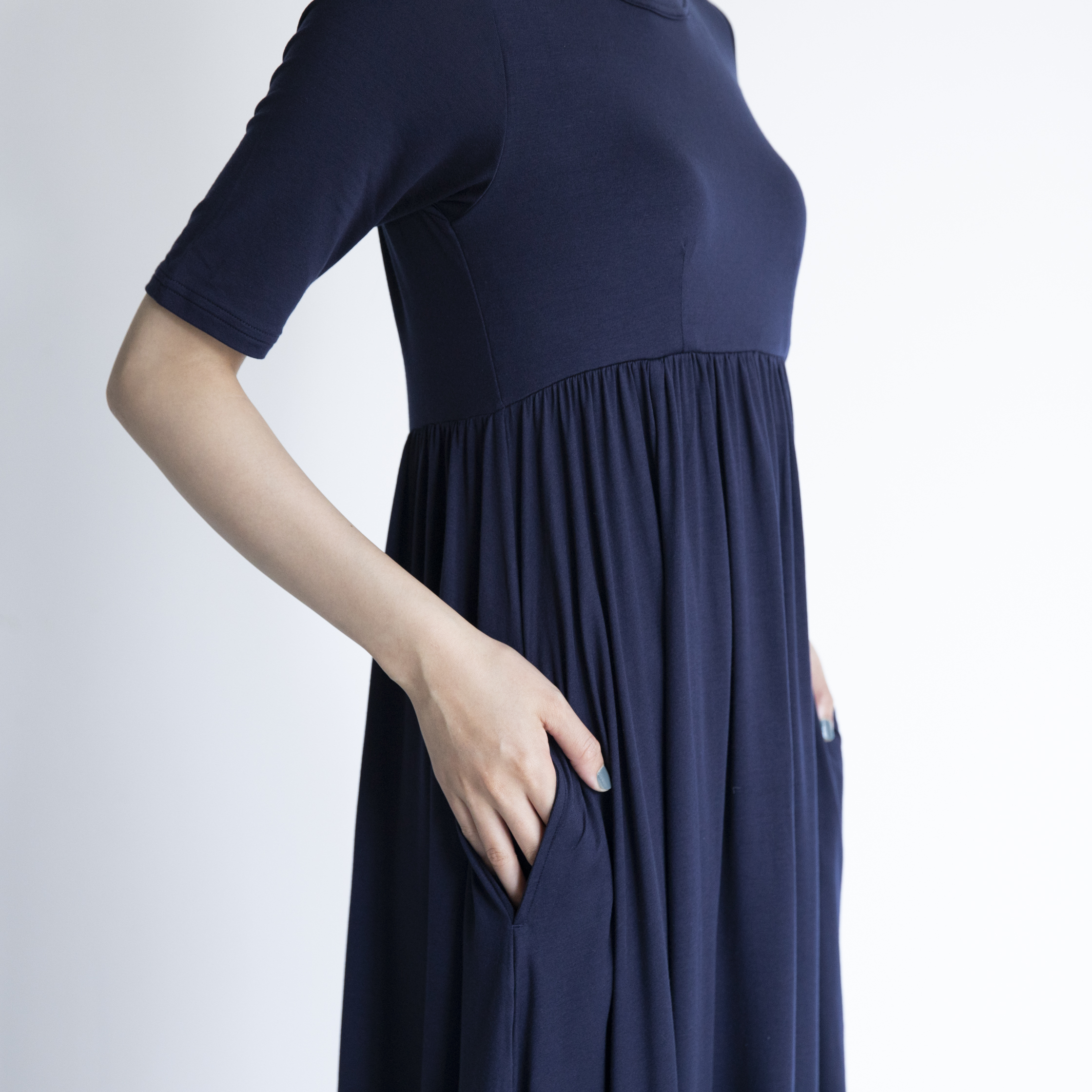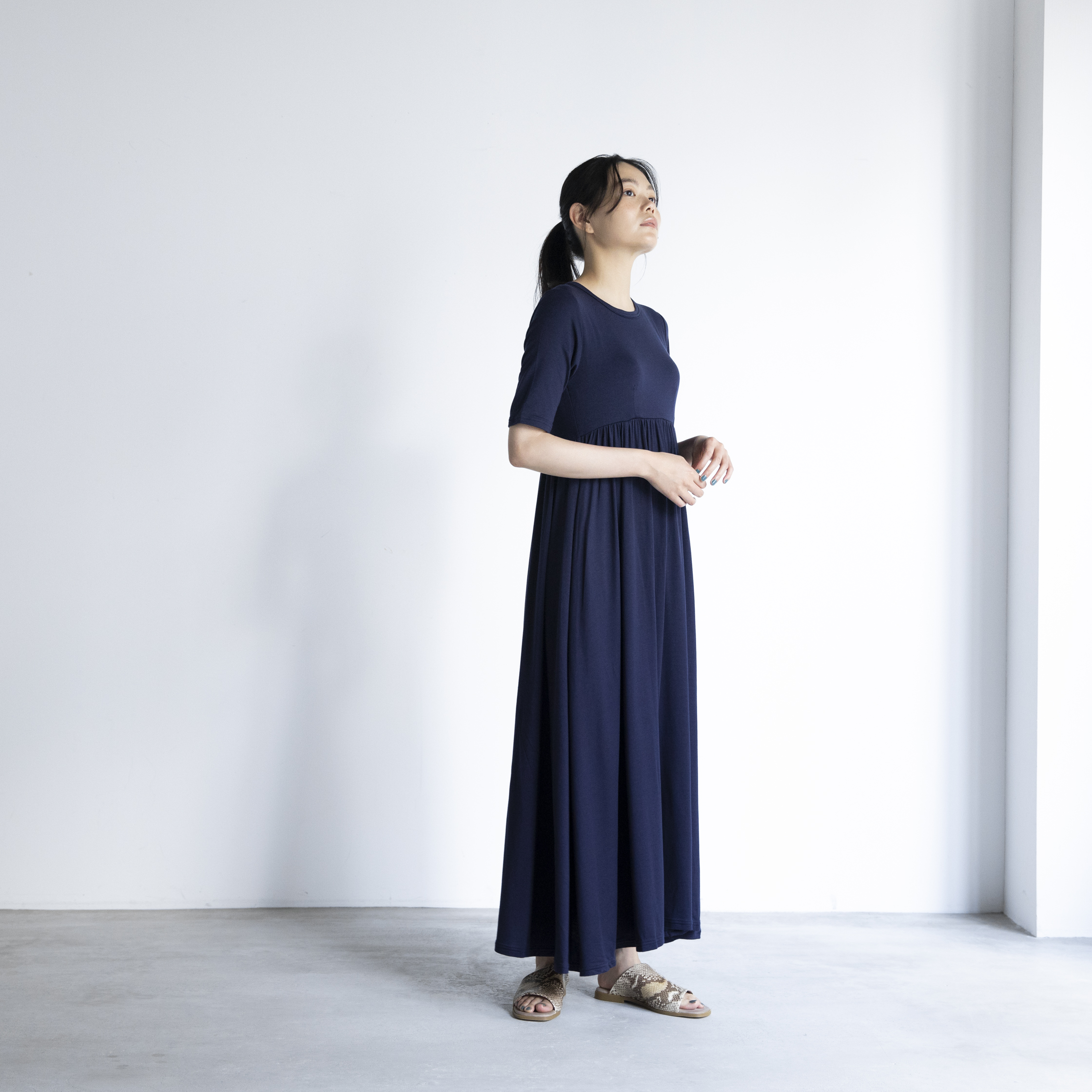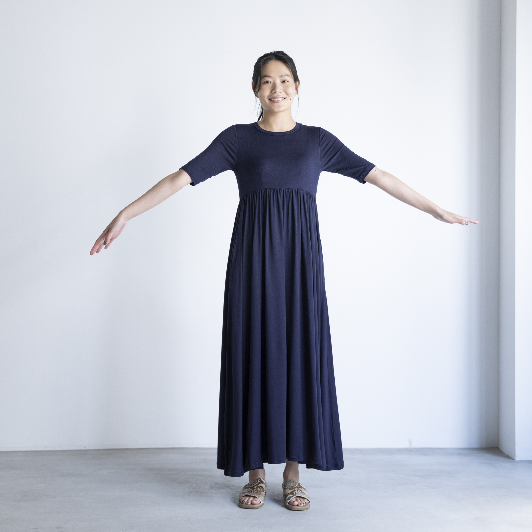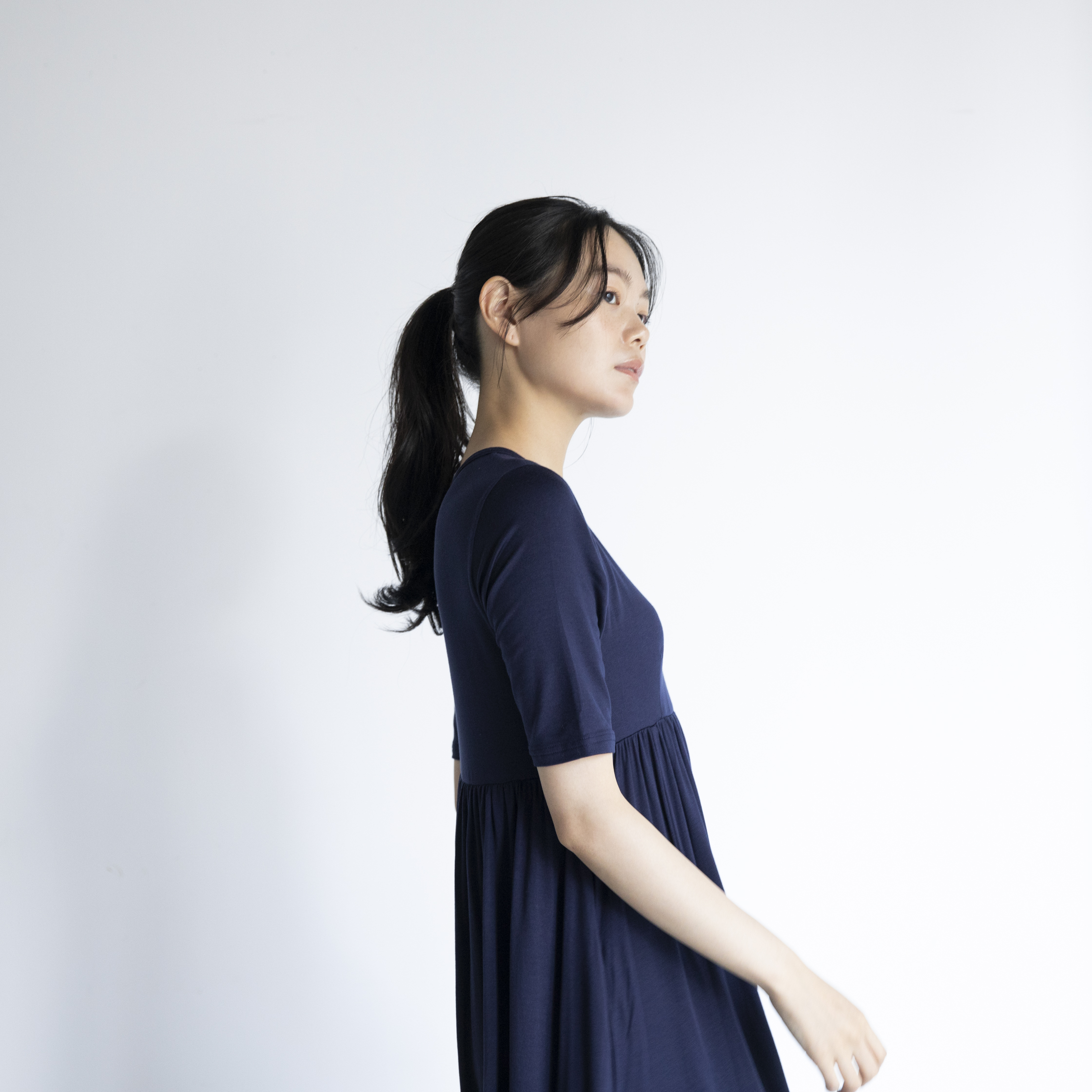カップ付五分袖ワンピース(ネイビー・M)/cohan