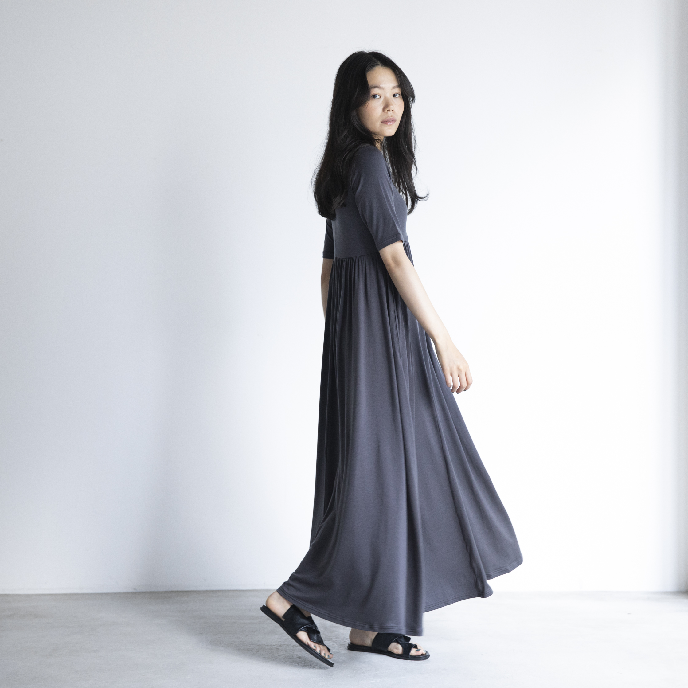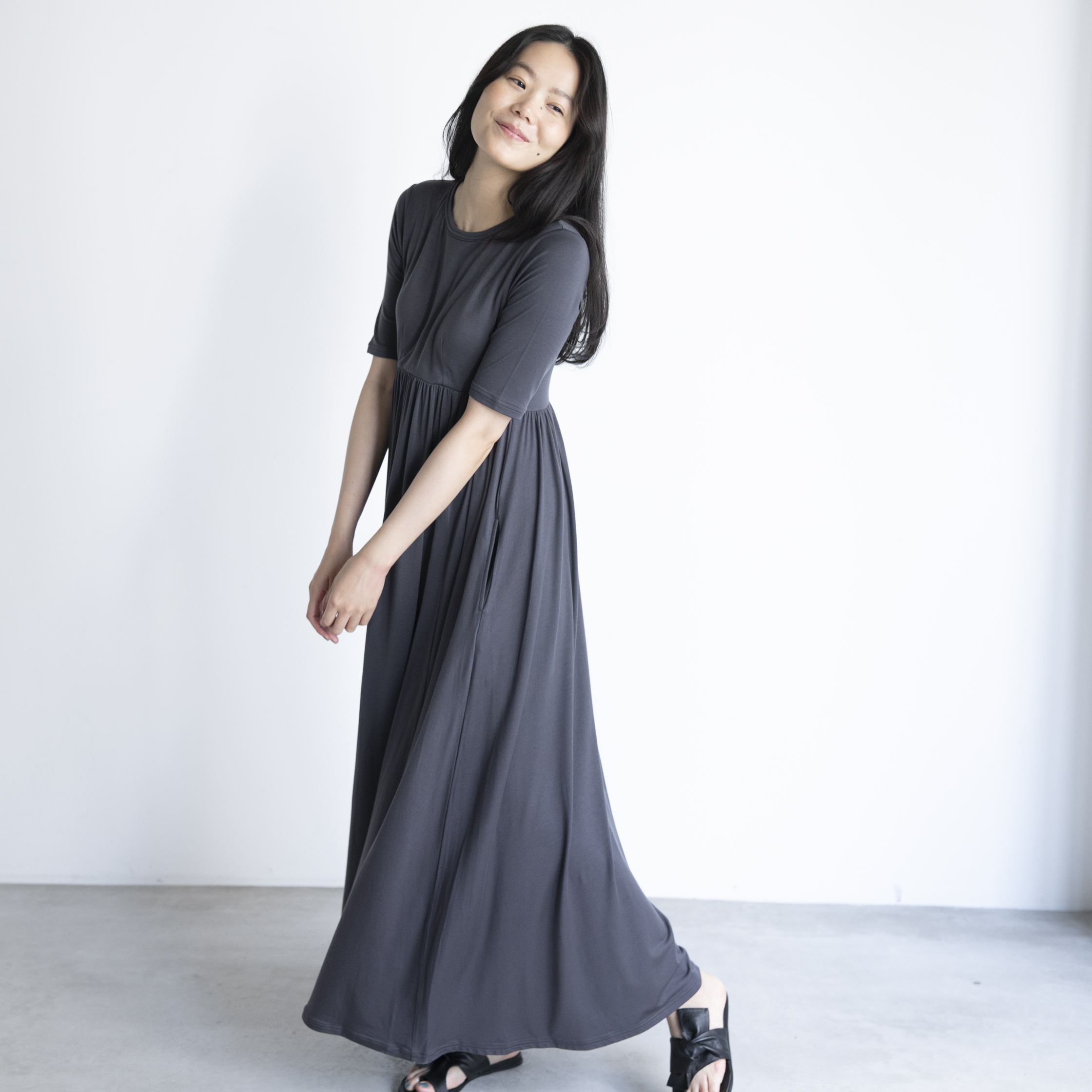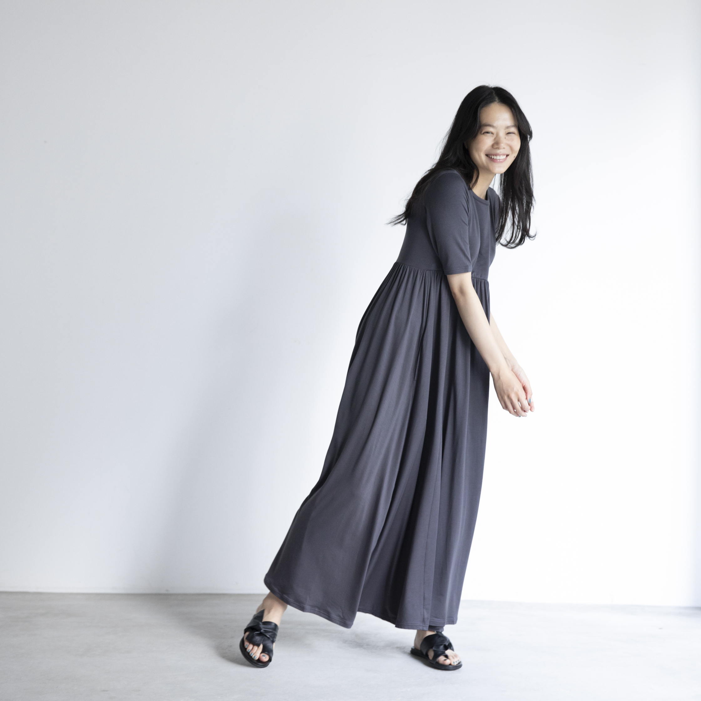 カップ付五分袖ワンピース(グレー・M)/cohan