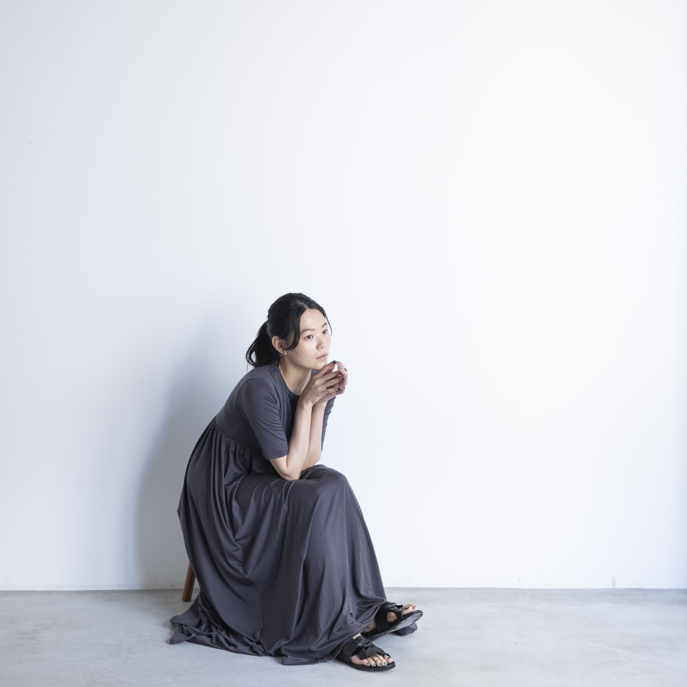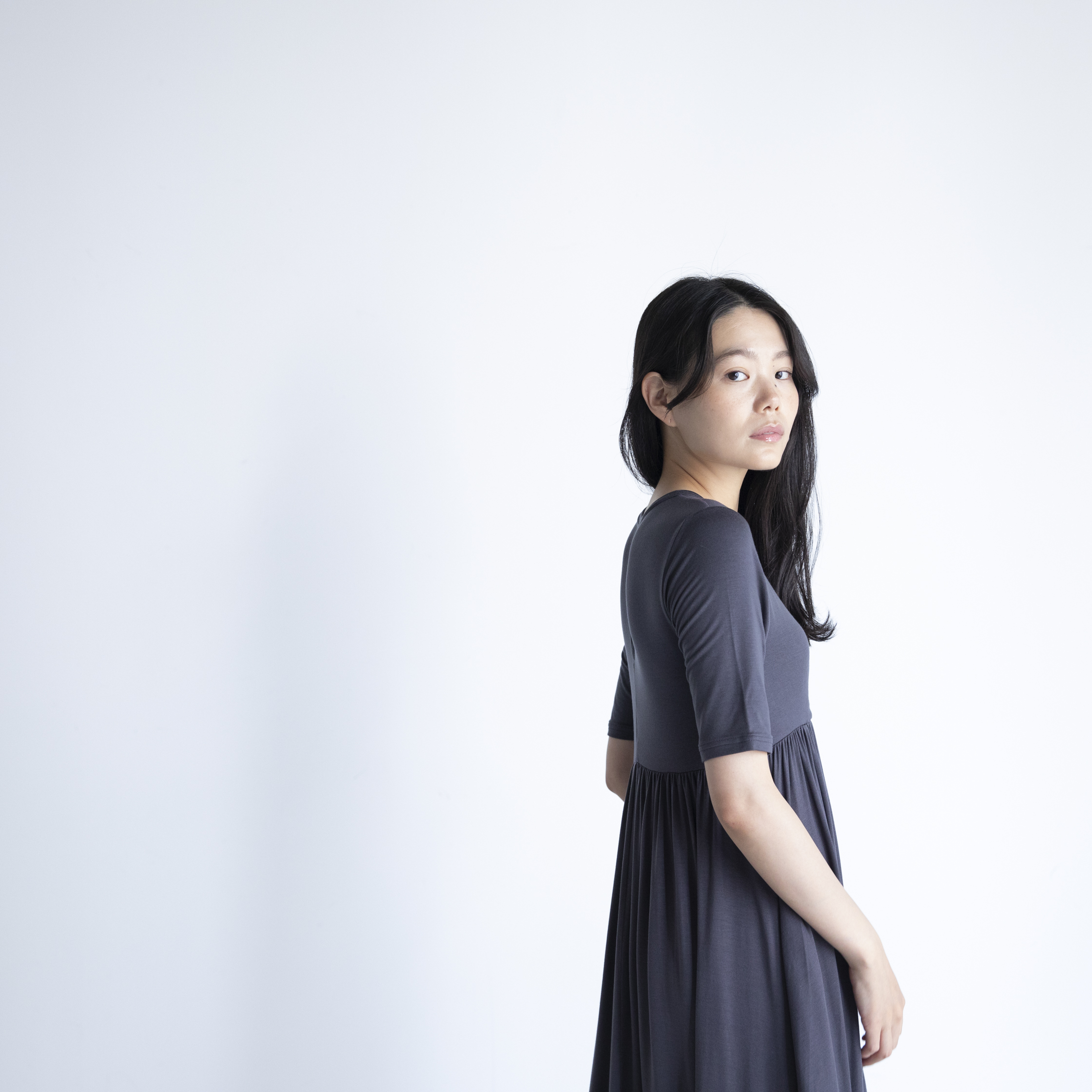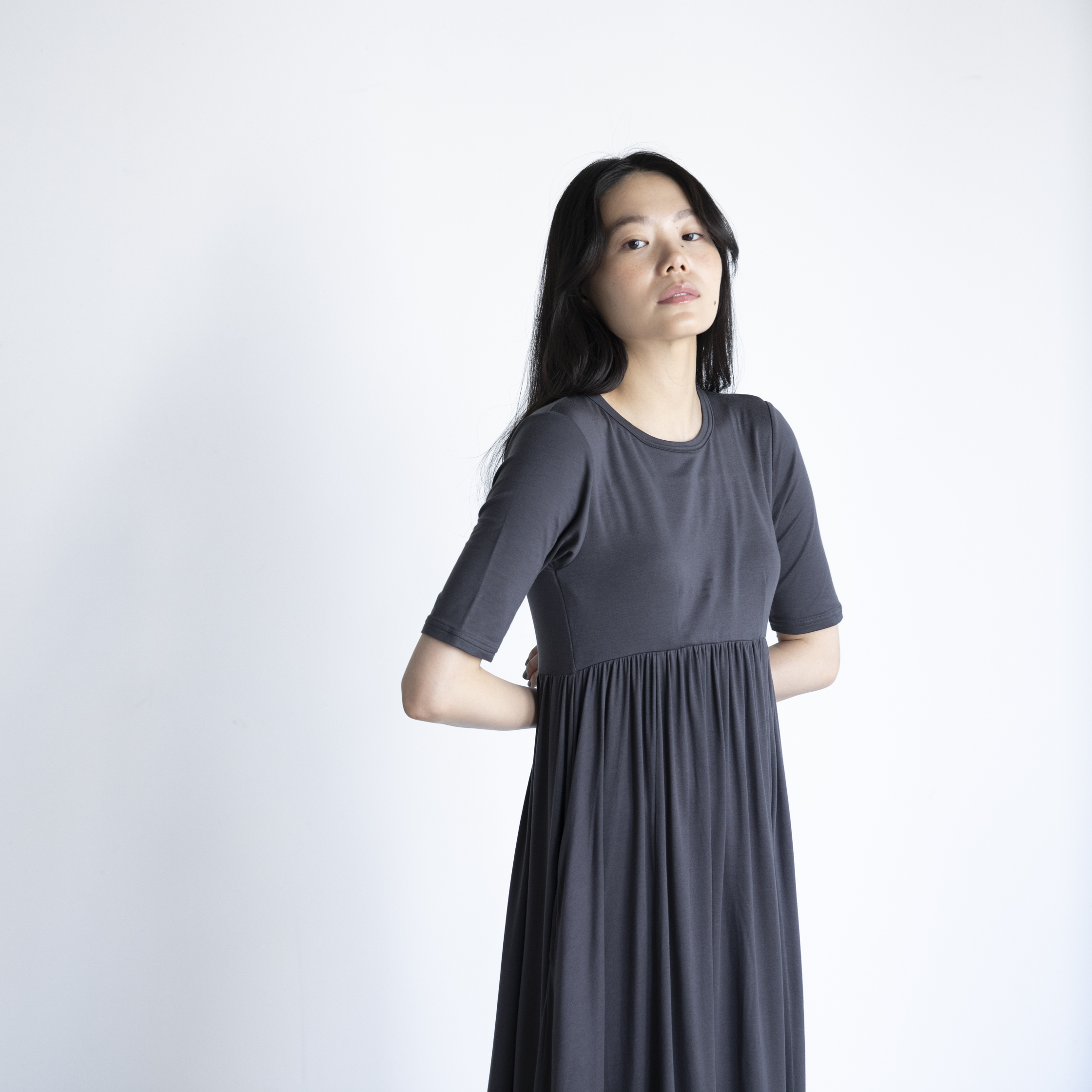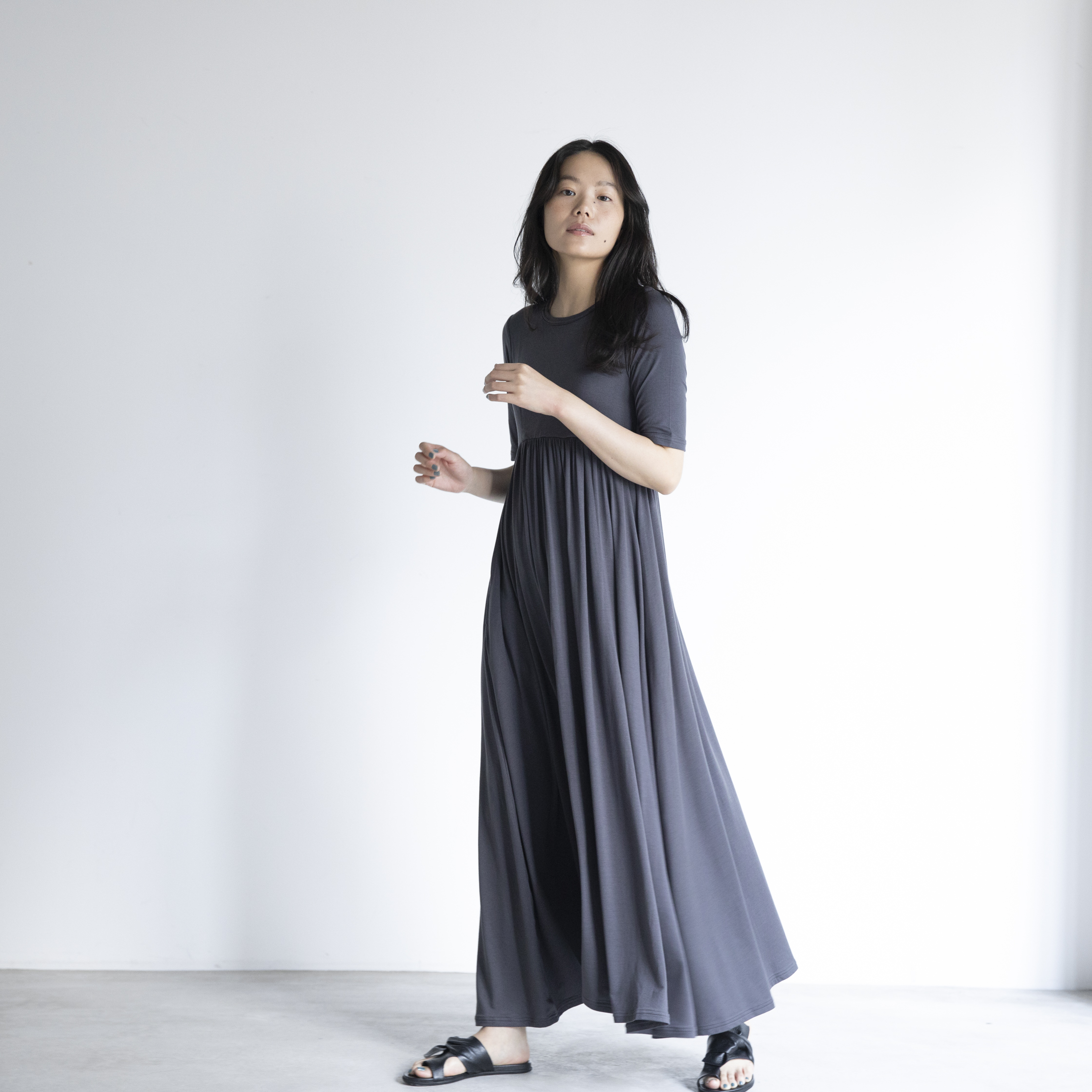 カップ付五分袖ワンピース(グレー・M)/cohan