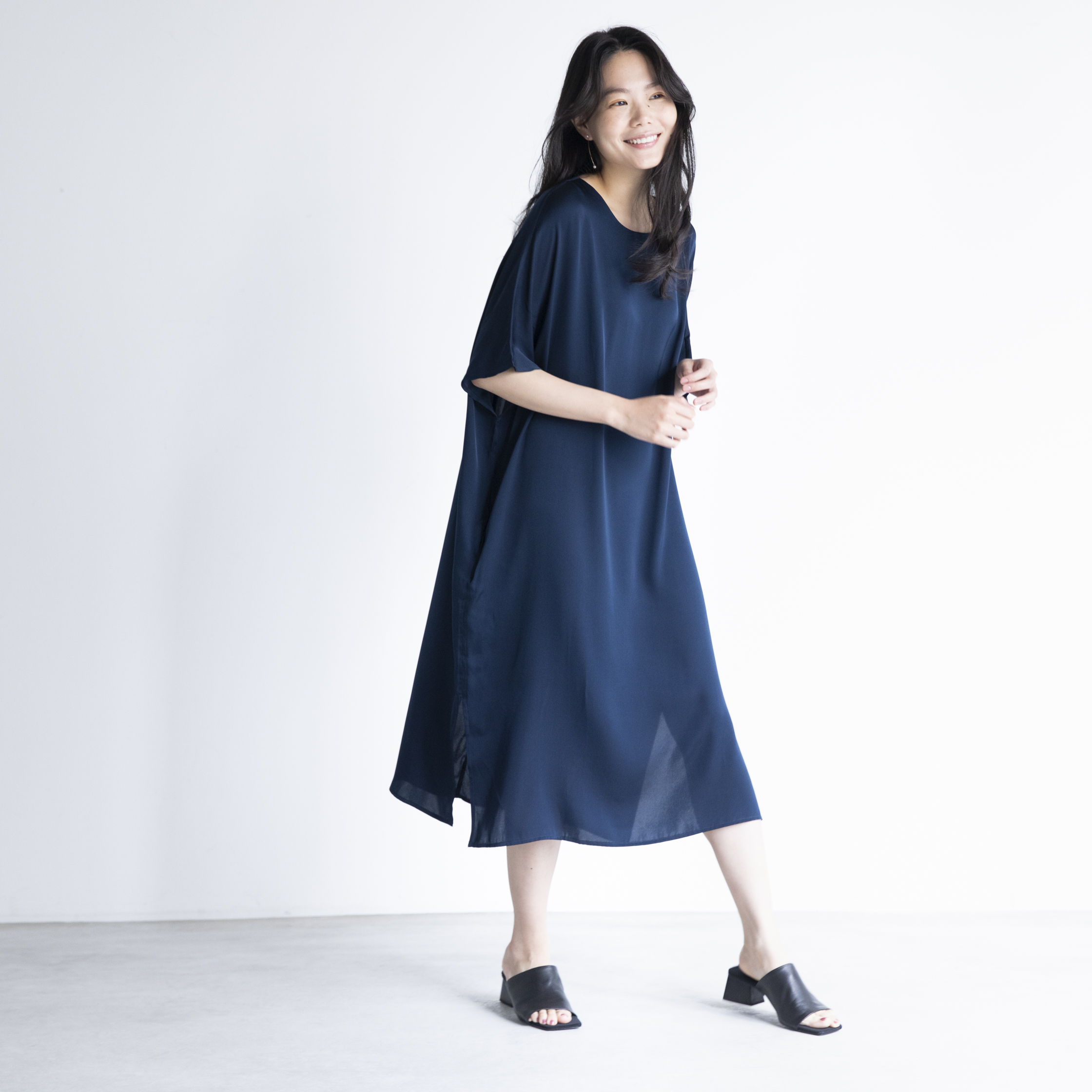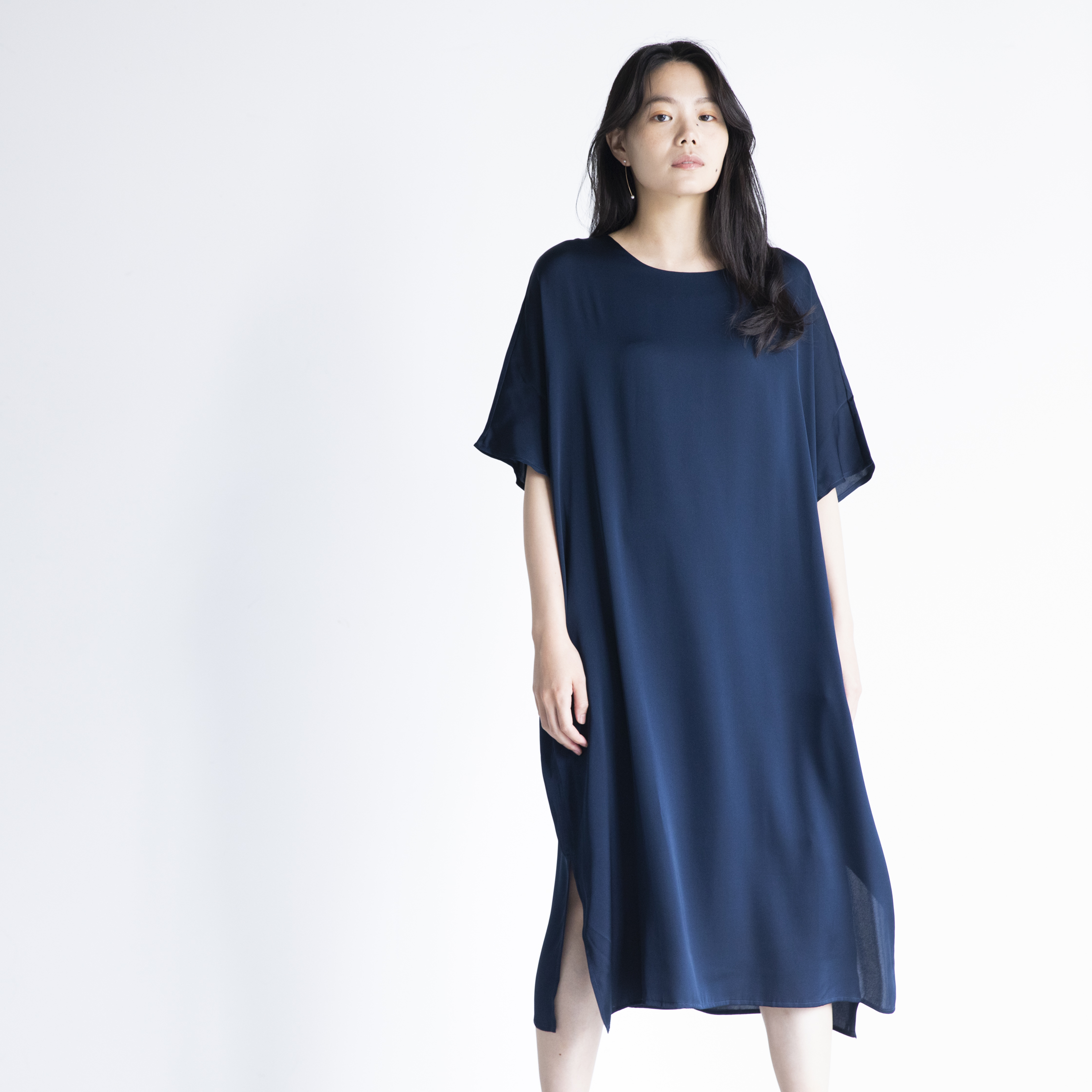 シルクのワンピース(ネイビー)/DRESS HERSELF