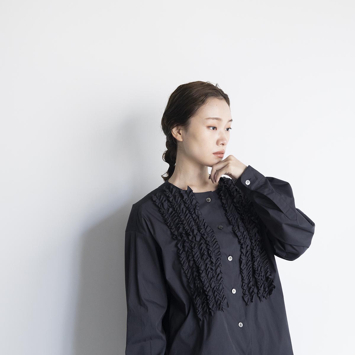 オーガニックコットンフリルブラウス(ブラック)/t.yamai.paris