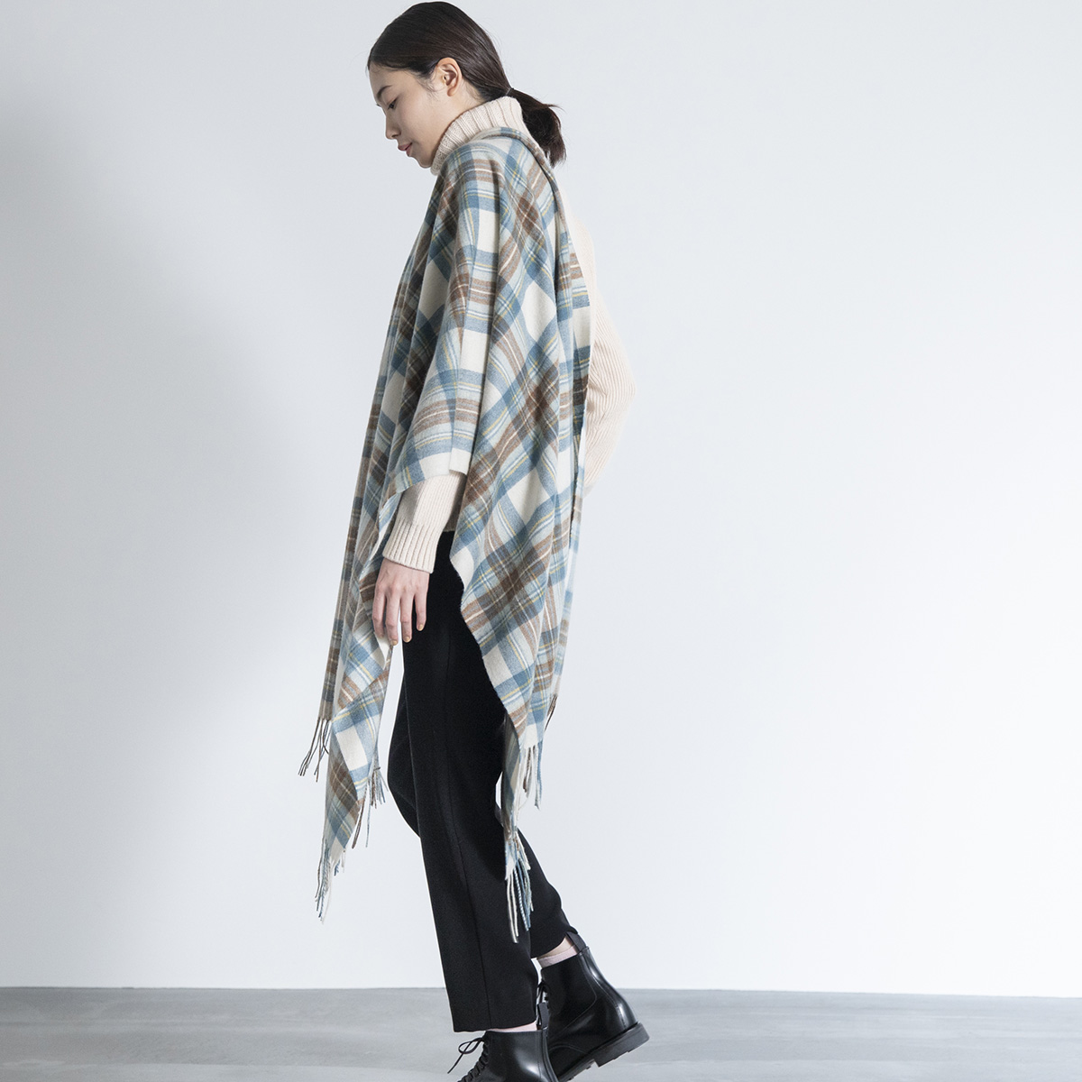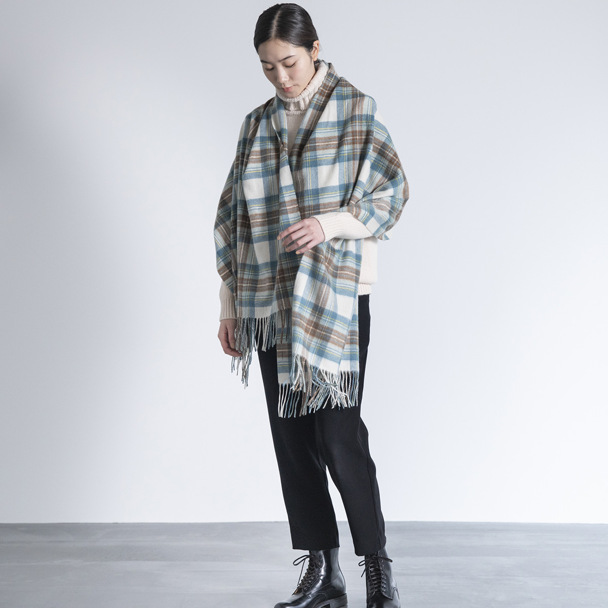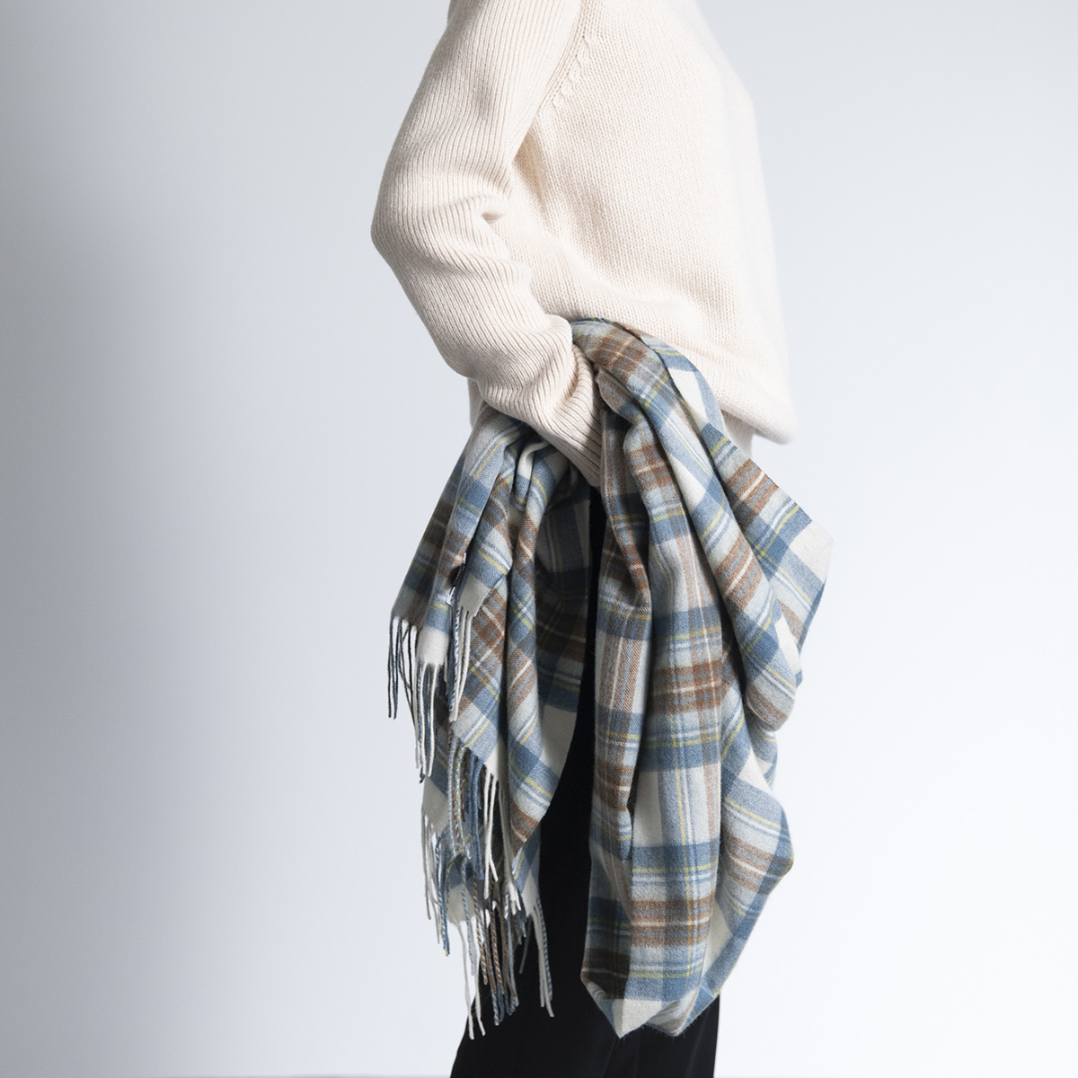 カシミヤストール(ブルーブラウンチェック)/RaPPELER