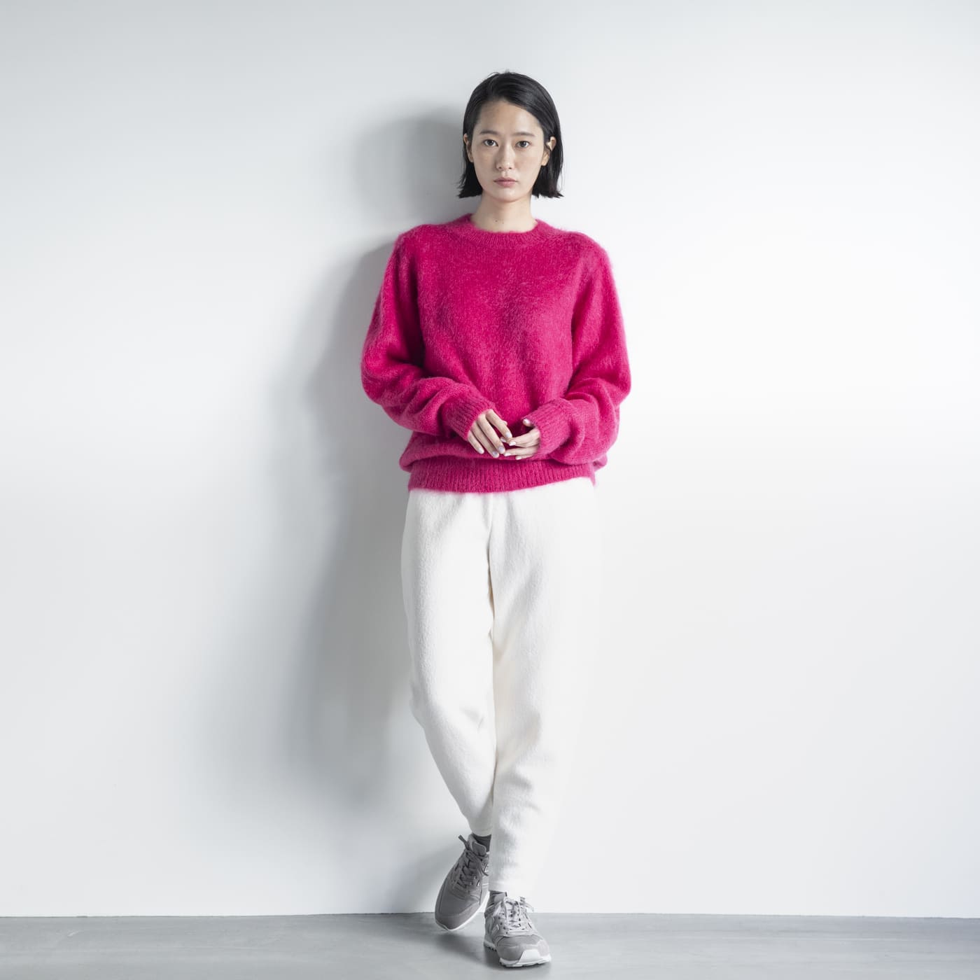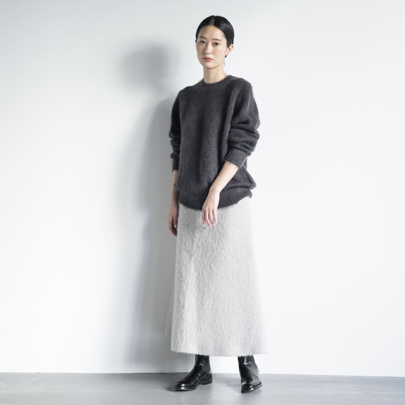 モヘアシャギーのニットを合わせると、